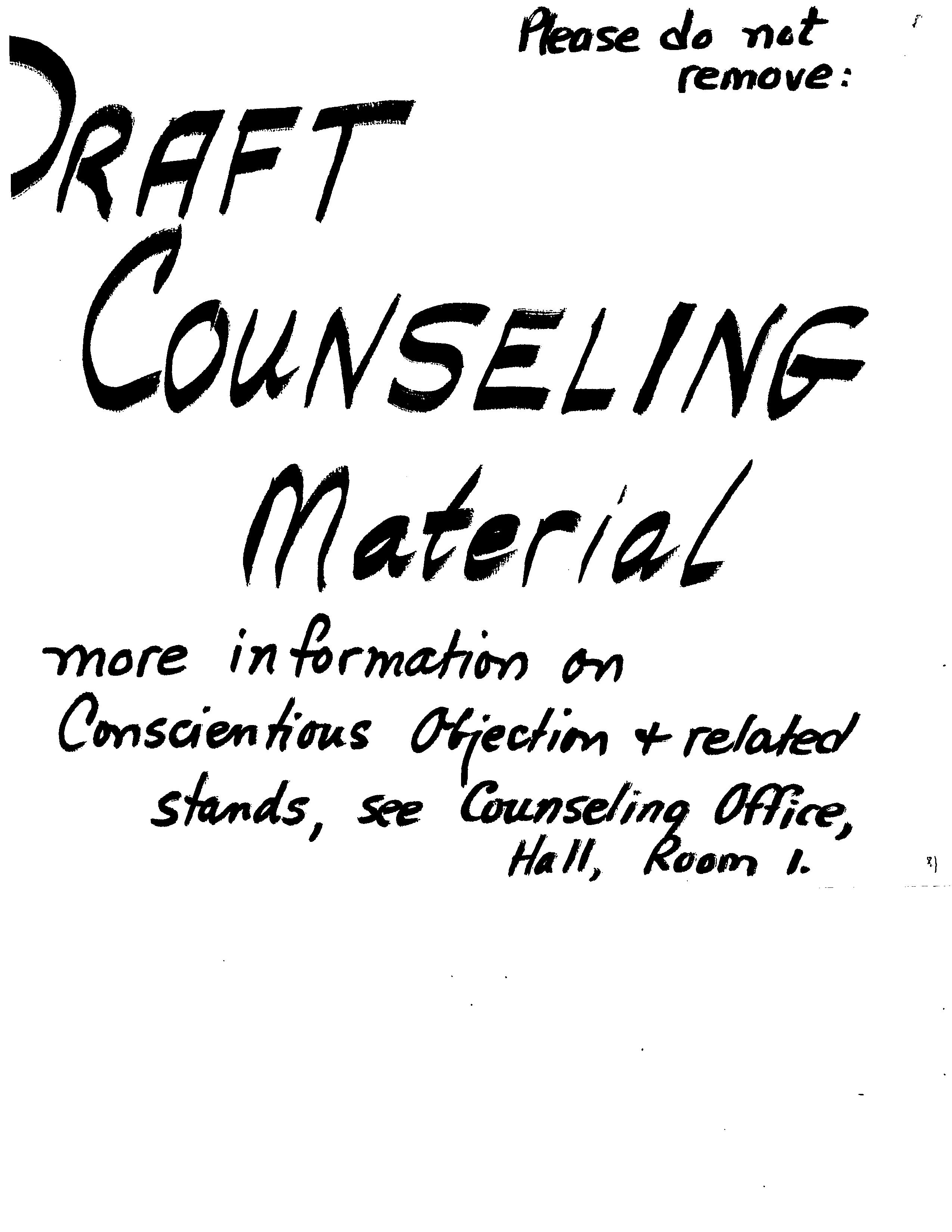 Flyer to Men for Counseling on how to be a Conscientious Objector for Military Drafting