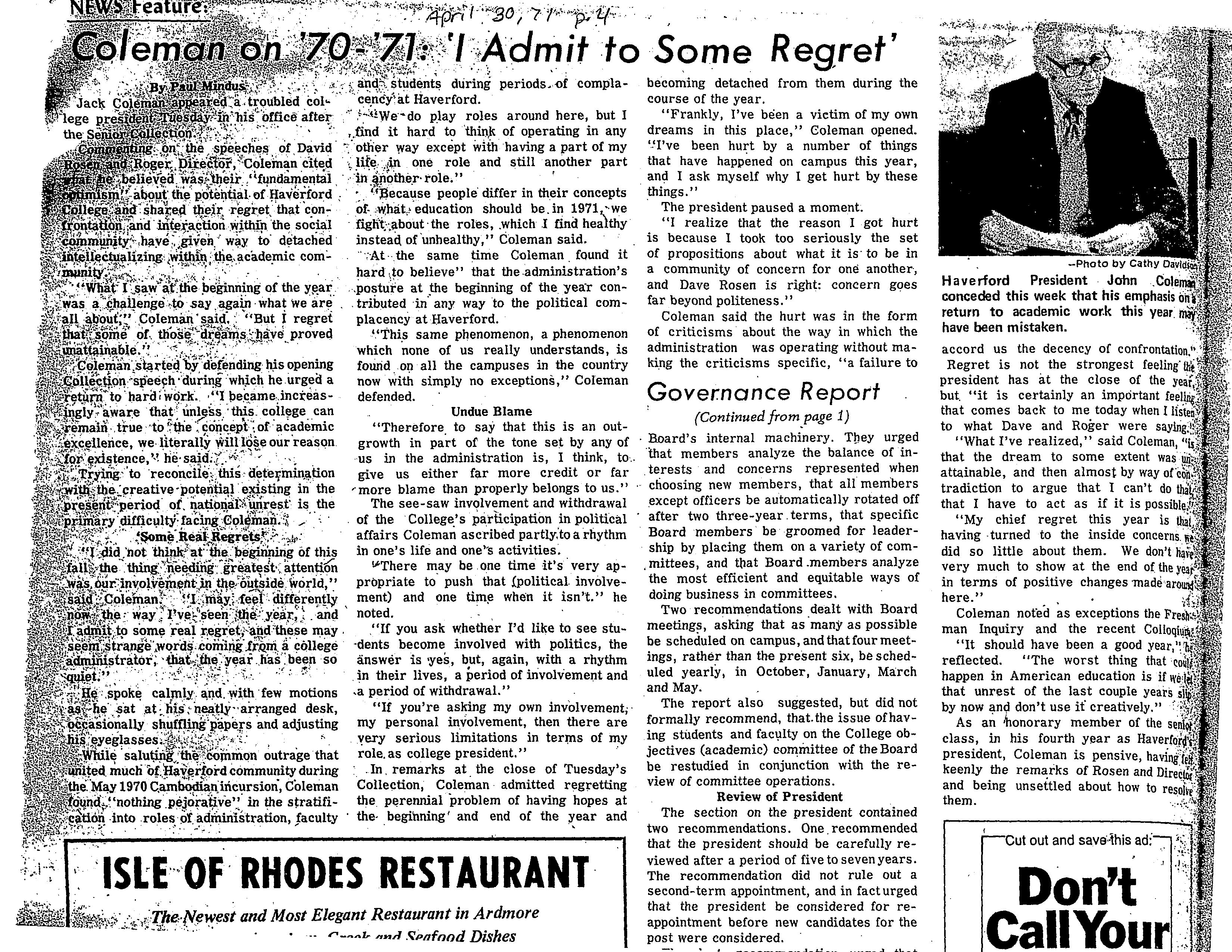Haverford Suffered Depoliticization Retreat Into 'Ivory Tower Seclusion'