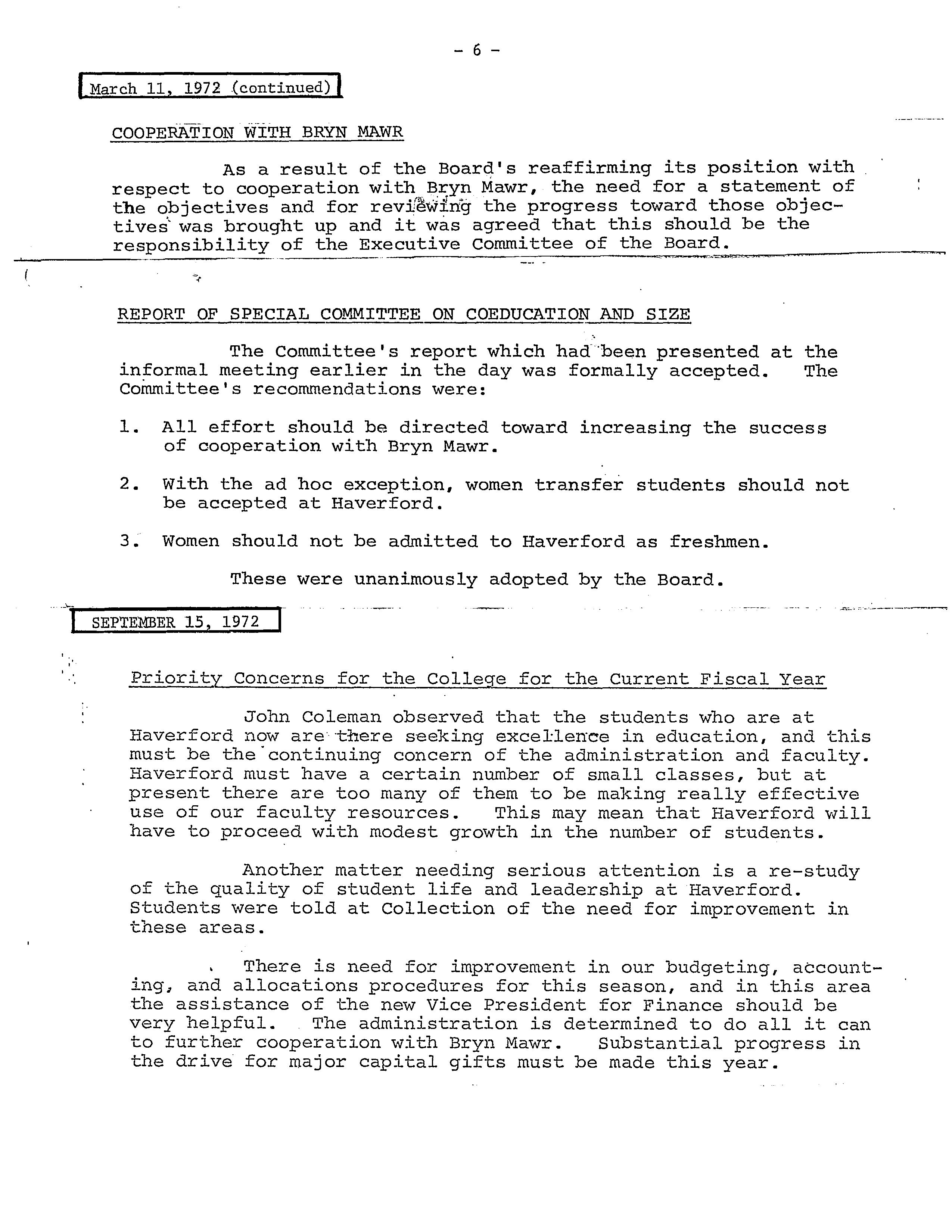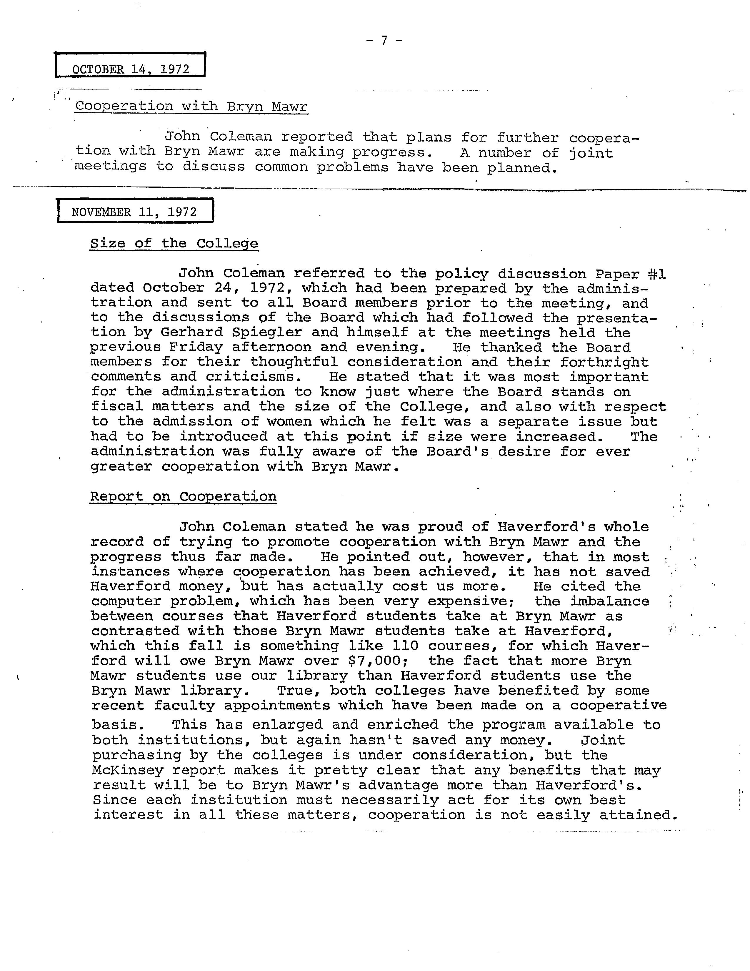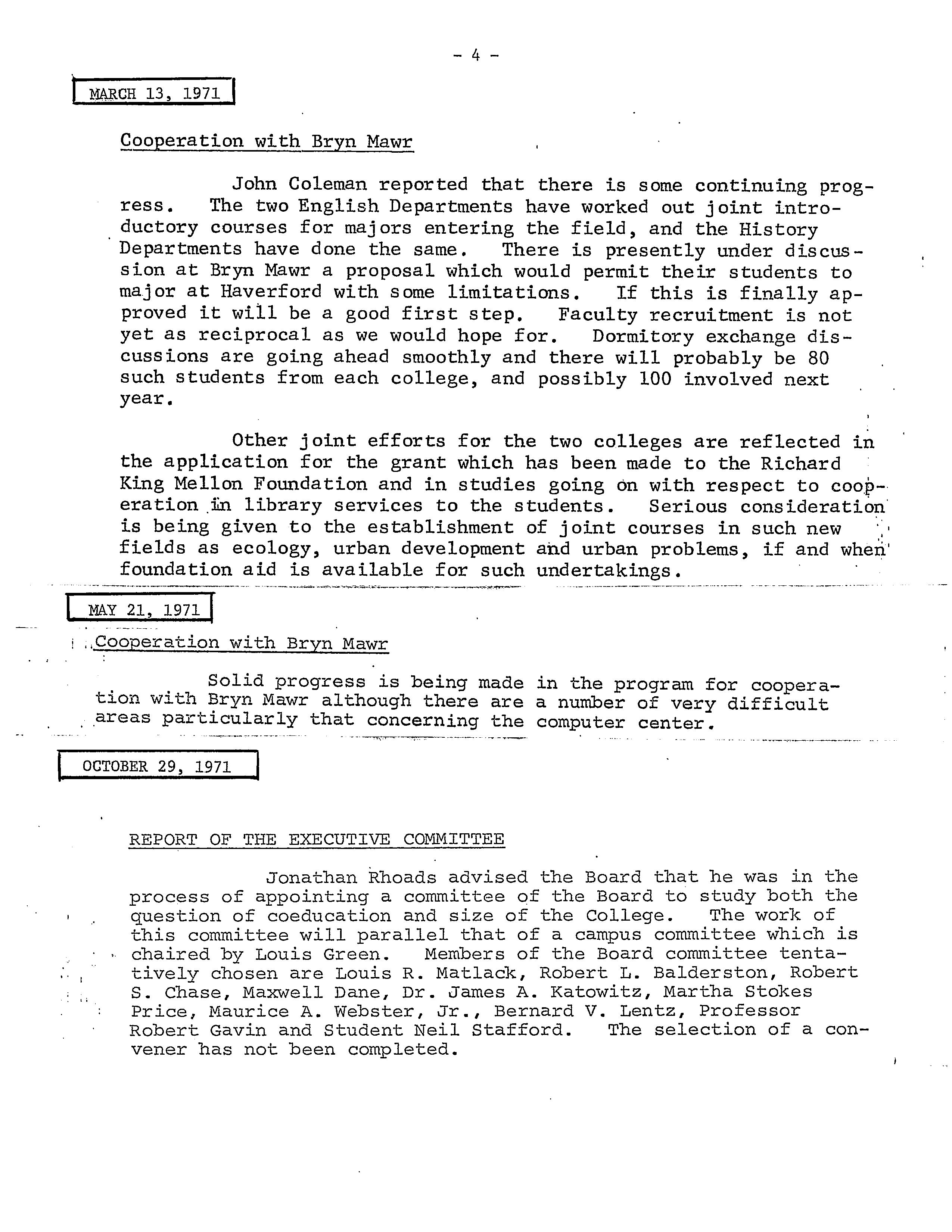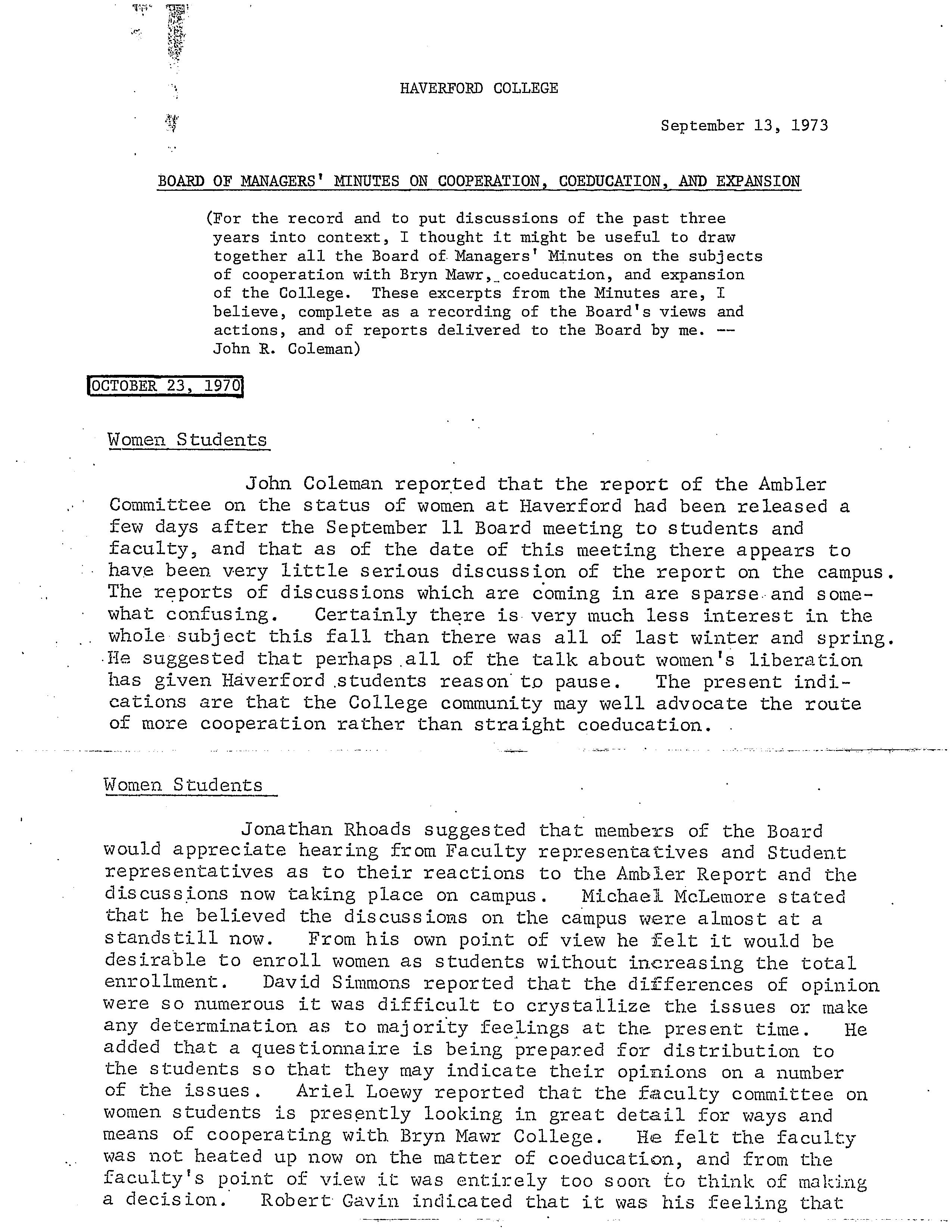 Haverford College Board of Managers, “Board of Managers' Meeting on Cooperation- Coeducation- and Expansion,” HIST H252 The History of Haverford College: Conflict, Consensus and the Liberal Arts, accessed December 21, 2025, https://ds-omeka.haverford.edu/annotations/items/show/142.