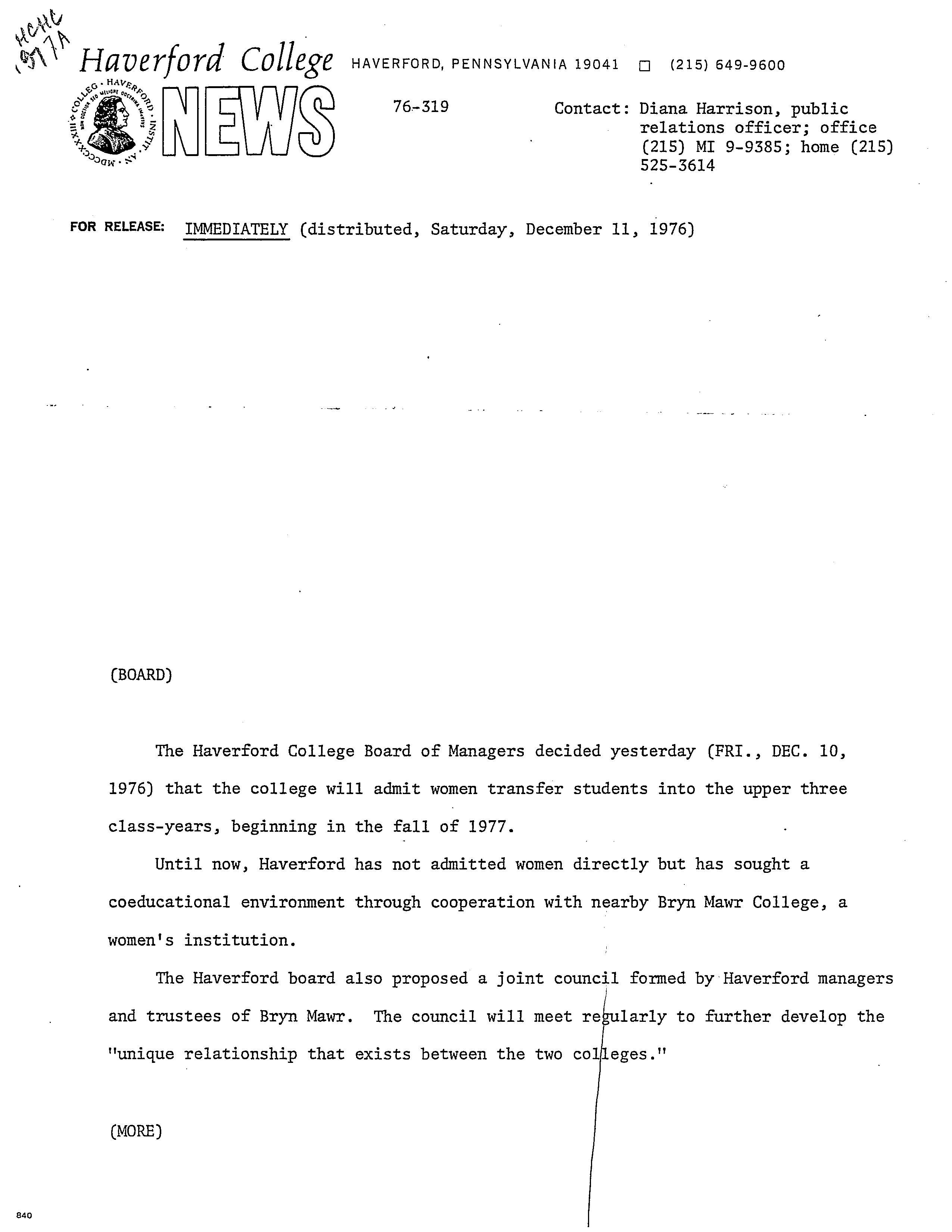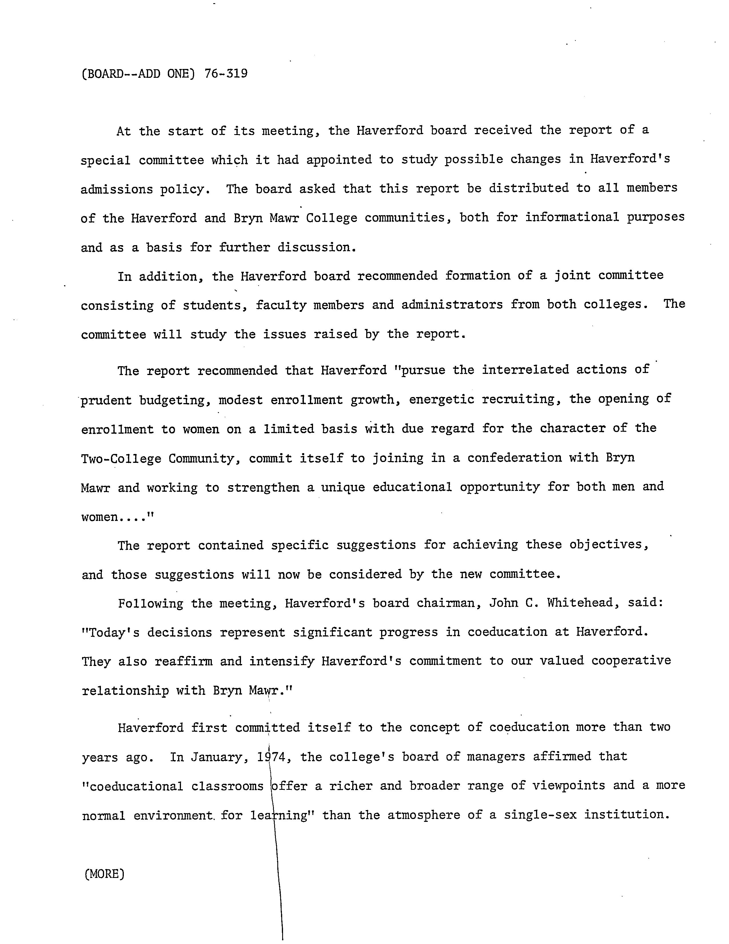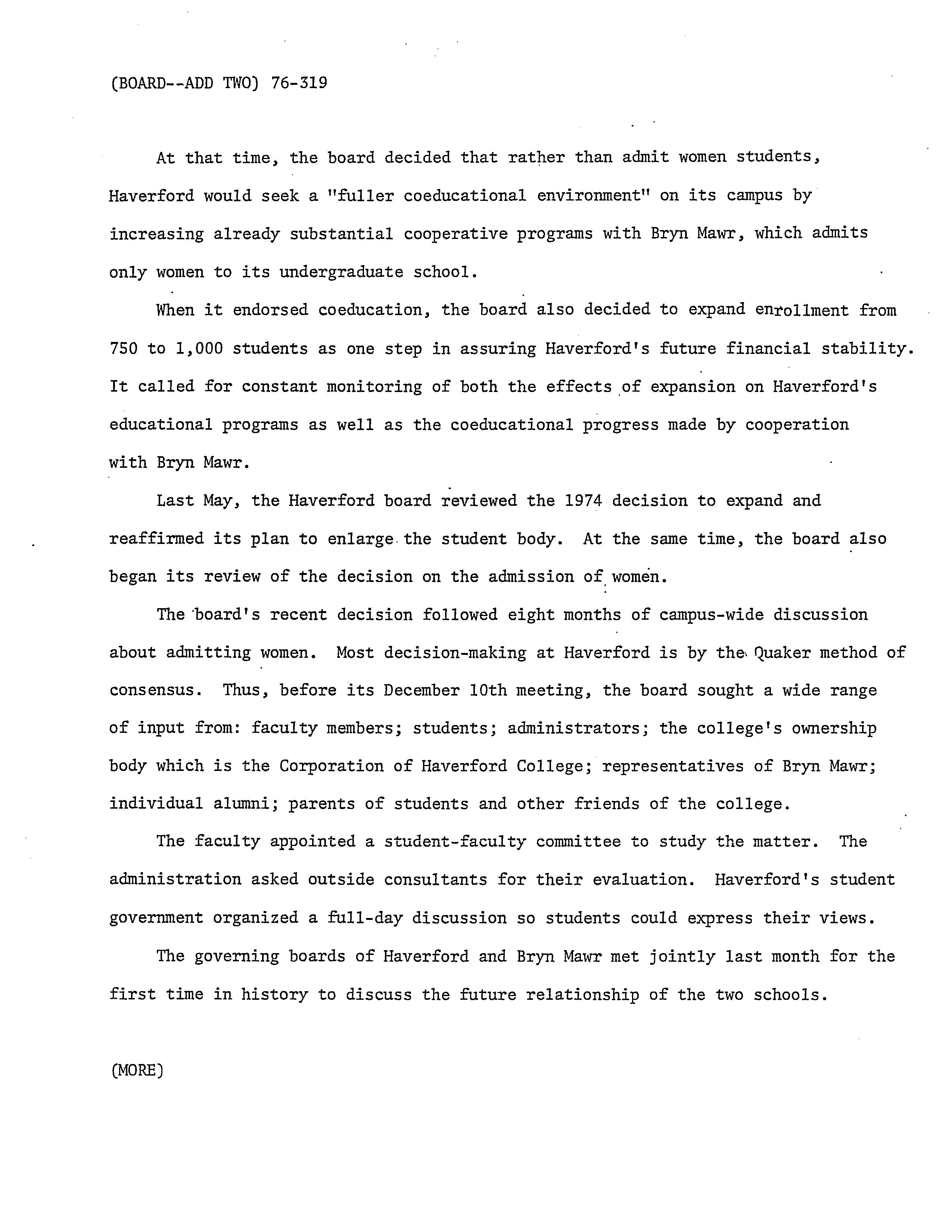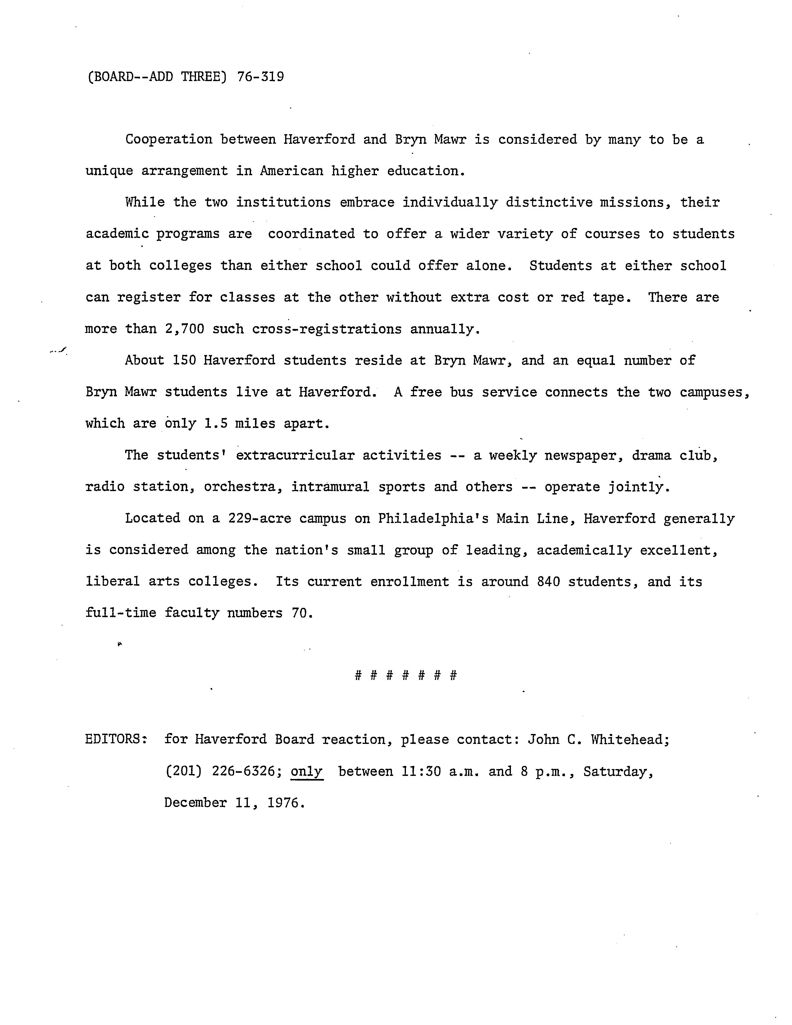 Haverford College News, “Board of Managers News Release,” HIST H252 The History of Haverford College: Conflict, Consensus and the Liberal Arts, accessed December 21, 2025, https://ds-omeka.haverford.edu/annotations/items/show/143.