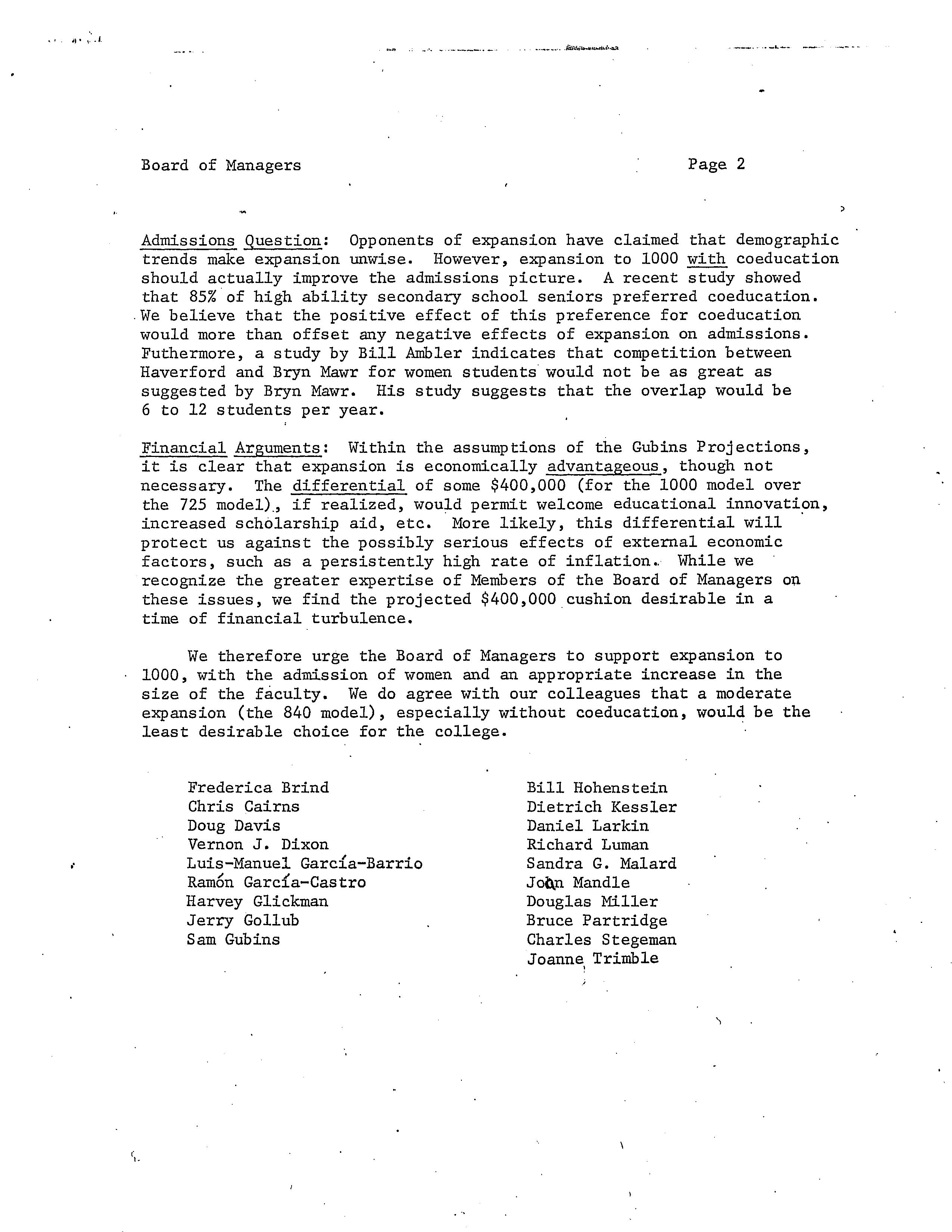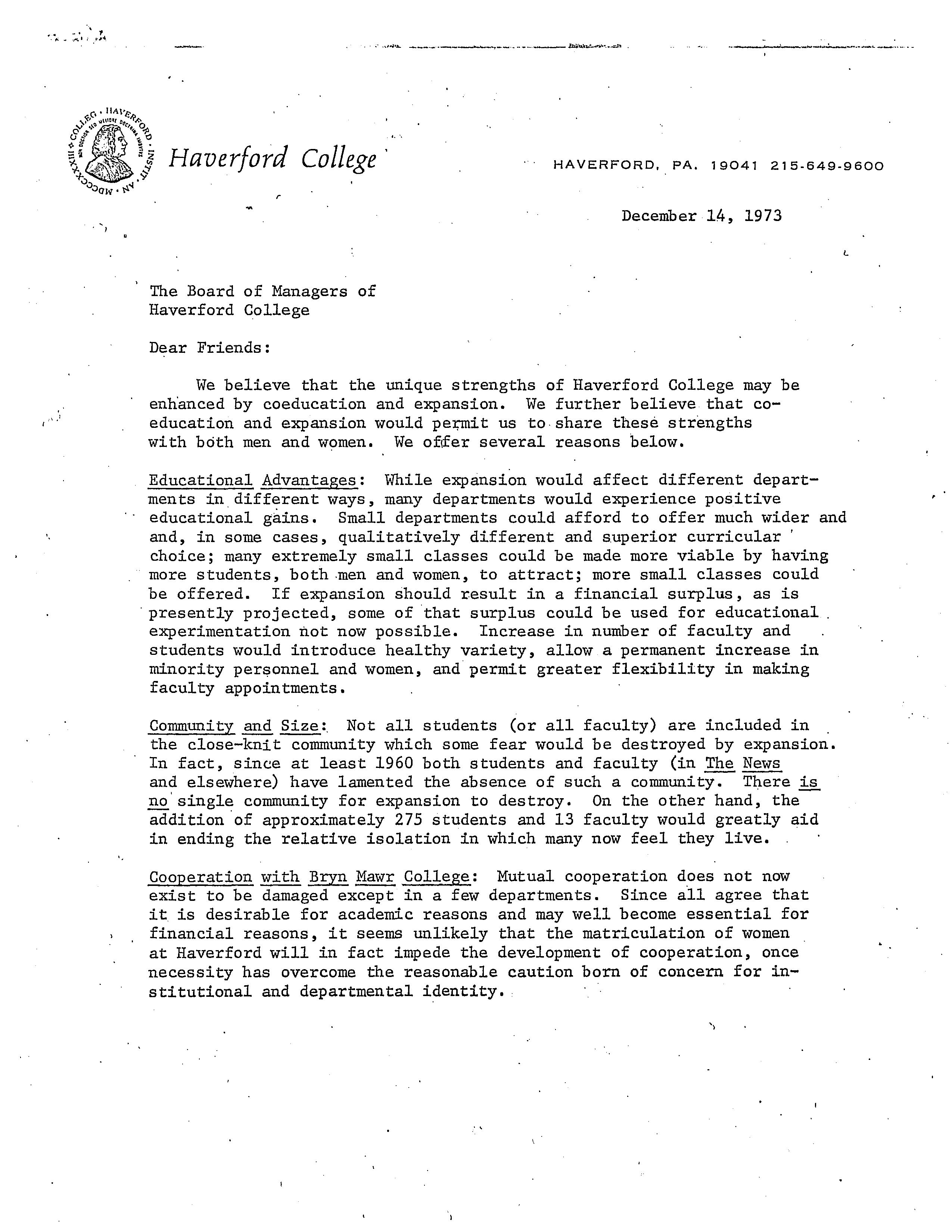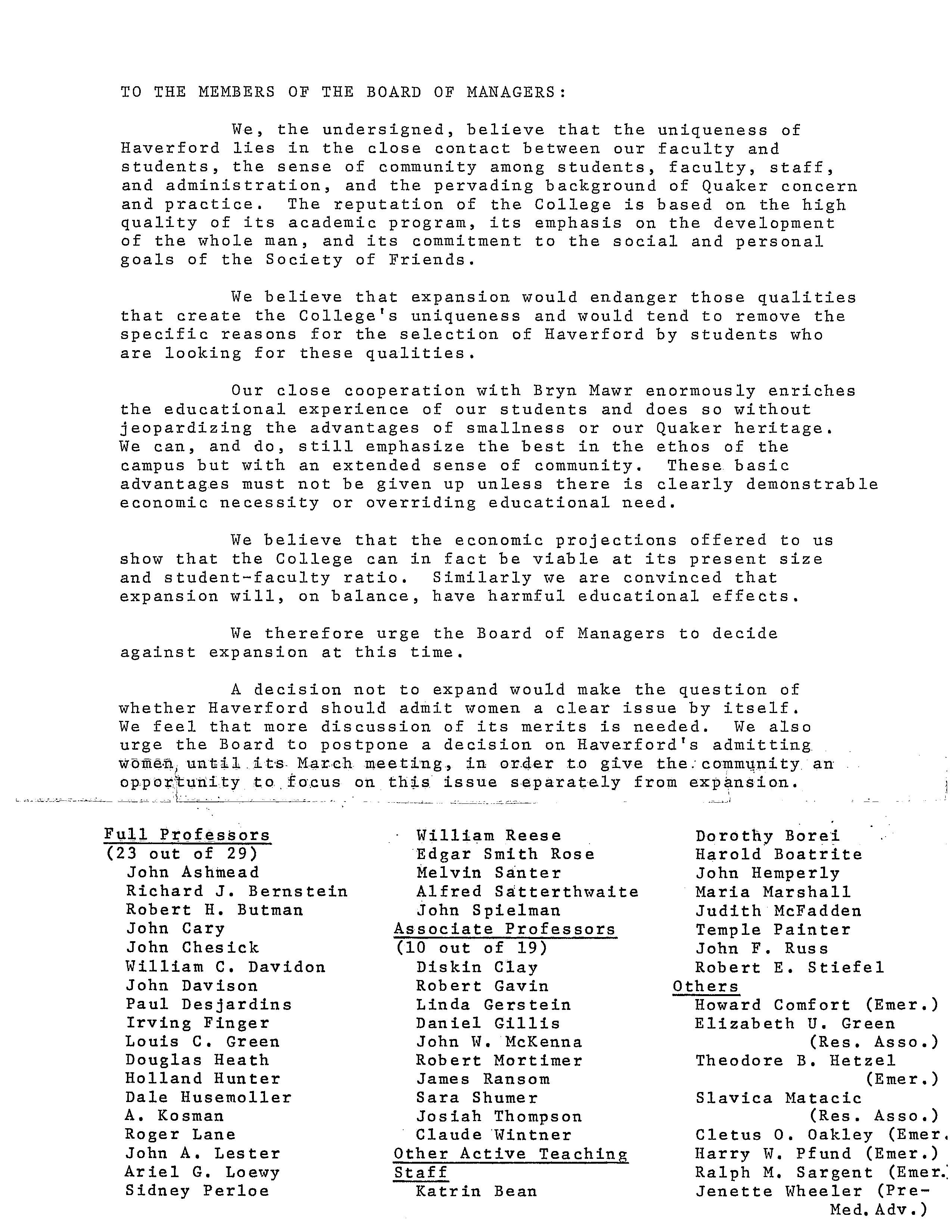 Professors from Haverford College, “Board of Managers Statement on Coeducation and Expansion,” HIST H252 The History of Haverford College: Conflict, Consensus and the Liberal Arts, accessed December 21, 2025, https://ds-omeka.haverford.edu/annotations/items/show/144.