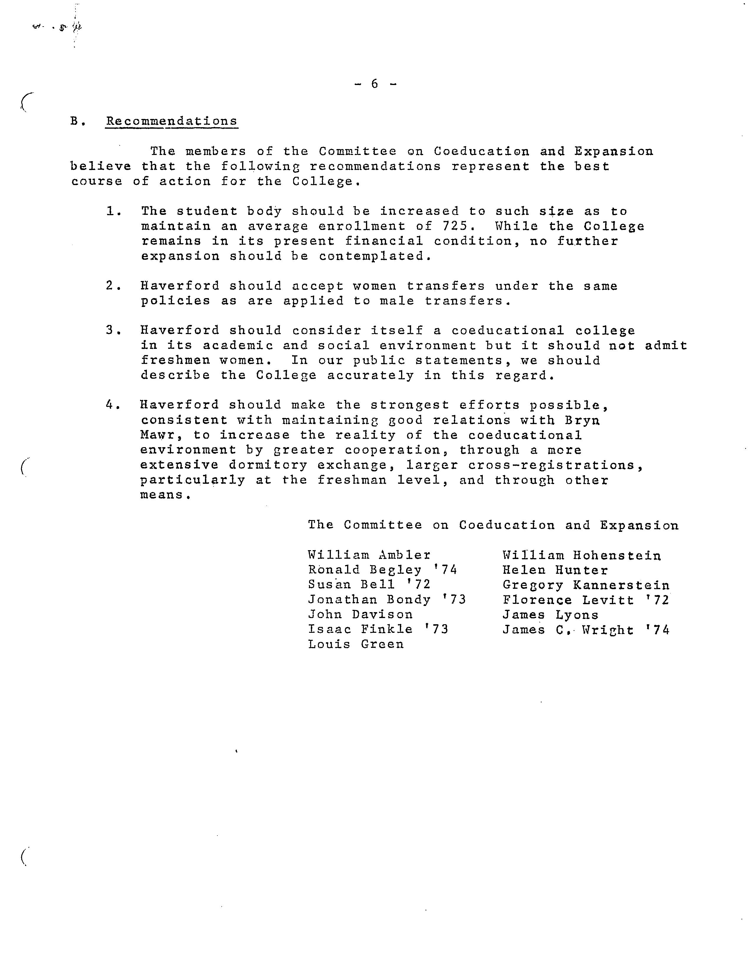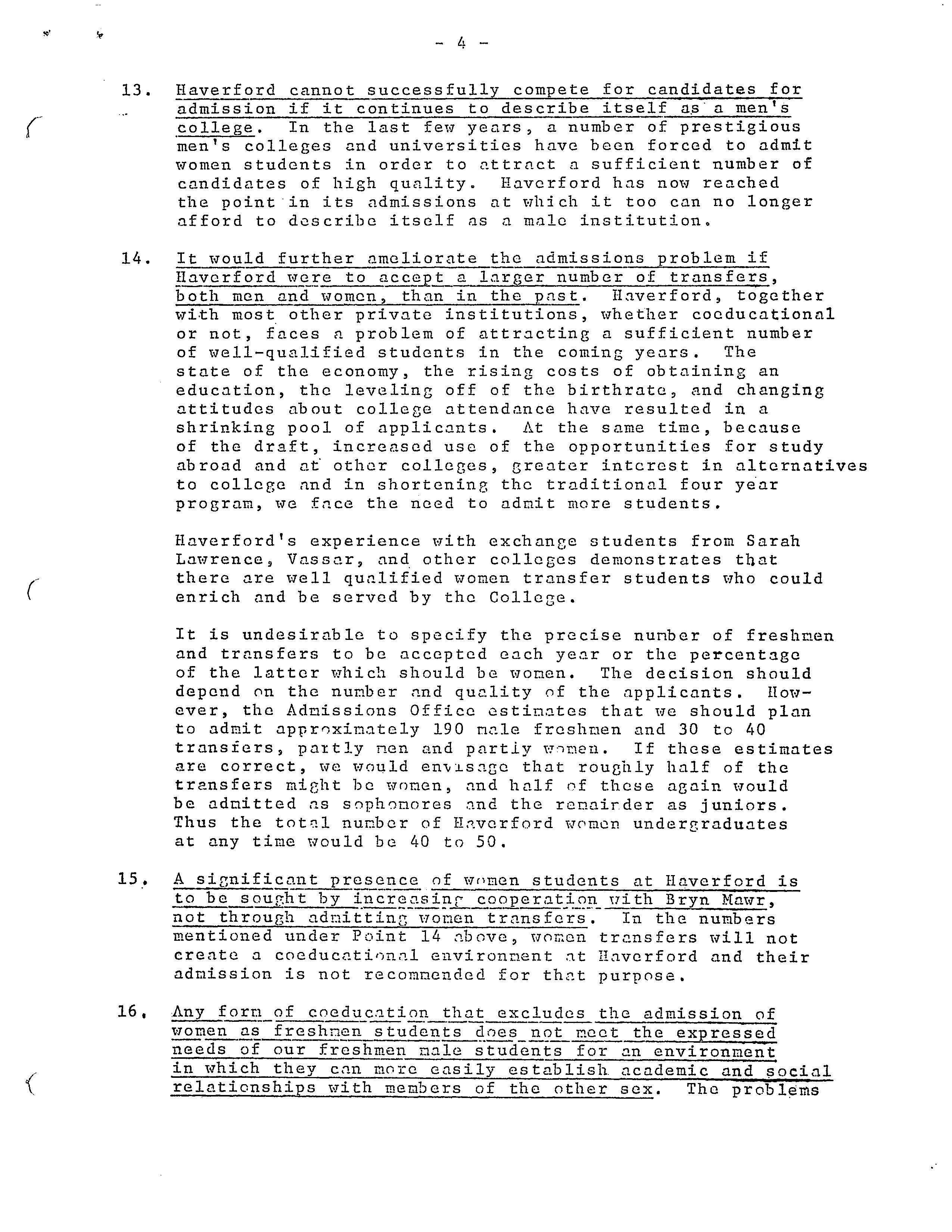 The Committee on Coeducation and Expansion, “Fourth Draft of Recommendations to President John R. Coleman from the Committee on Coeducation and Expansion,” HIST H252 The History of Haverford College: Conflict, Consensus and the Liberal Arts, accessed December 21, 2025, https://ds-omeka.haverford.edu/annotations/items/show/146.