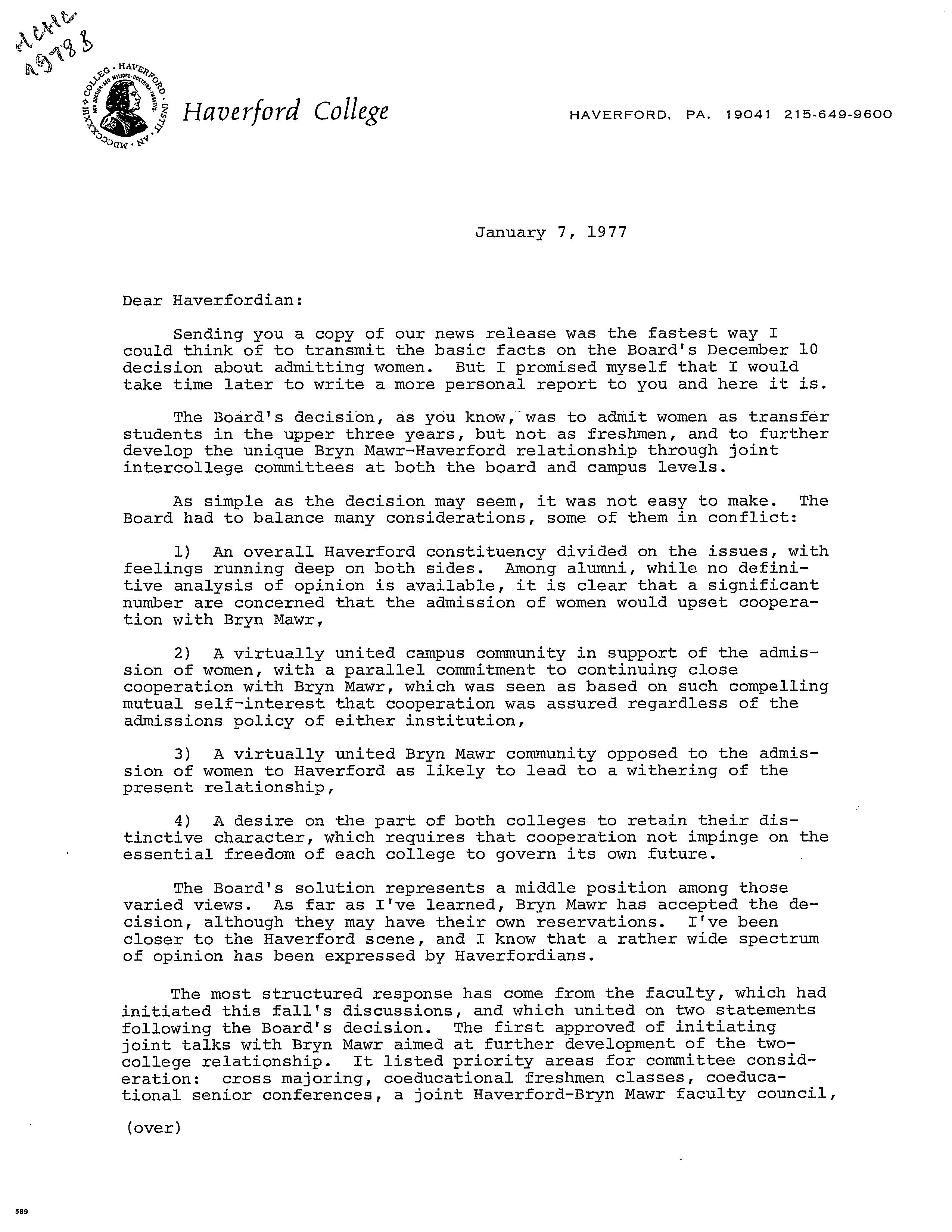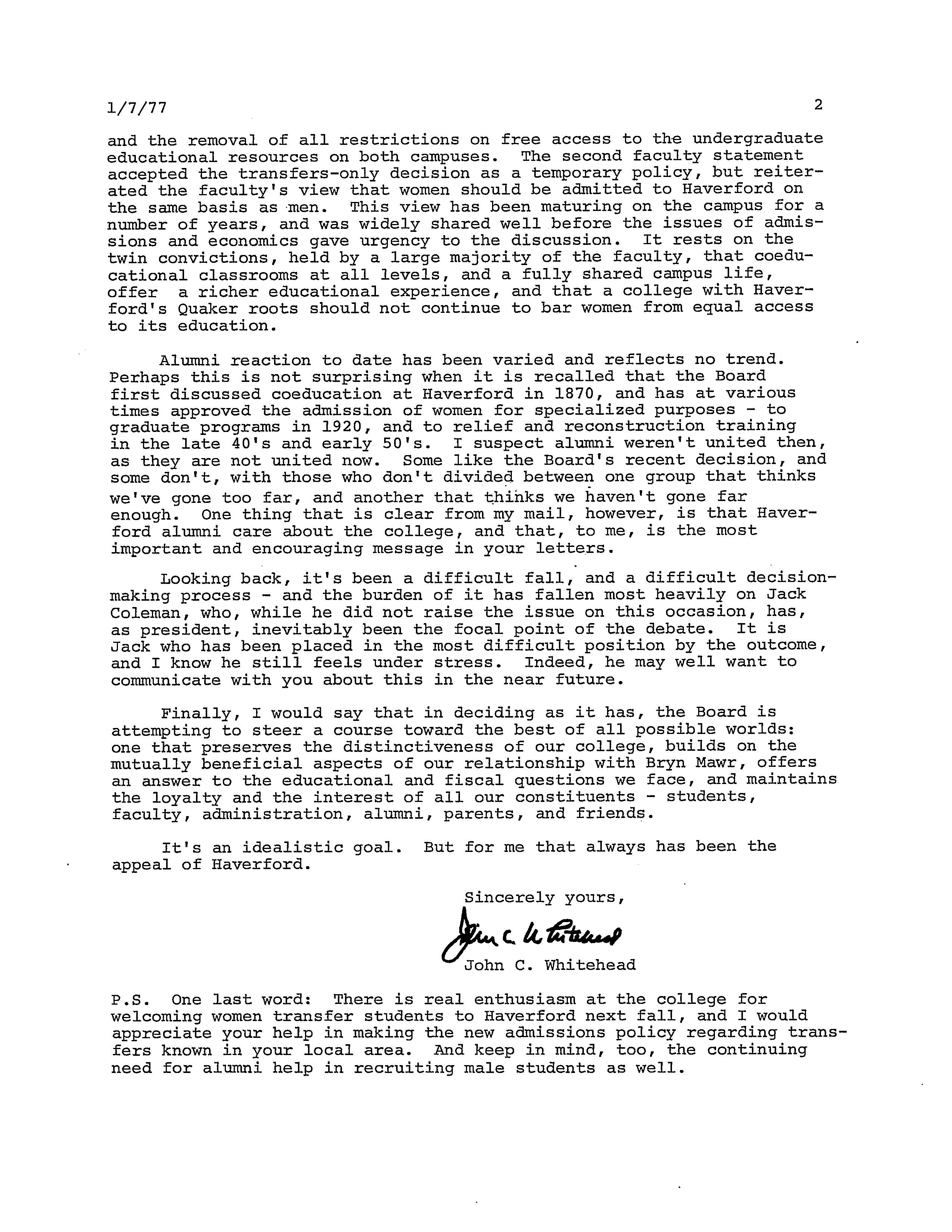 John C. Whitehead, “Letter to Haverfordians,” HIST H252 The History of Haverford College: Conflict, Consensus and the Liberal Arts, accessed December 21, 2025, https://ds-omeka.haverford.edu/annotations/items/show/148.