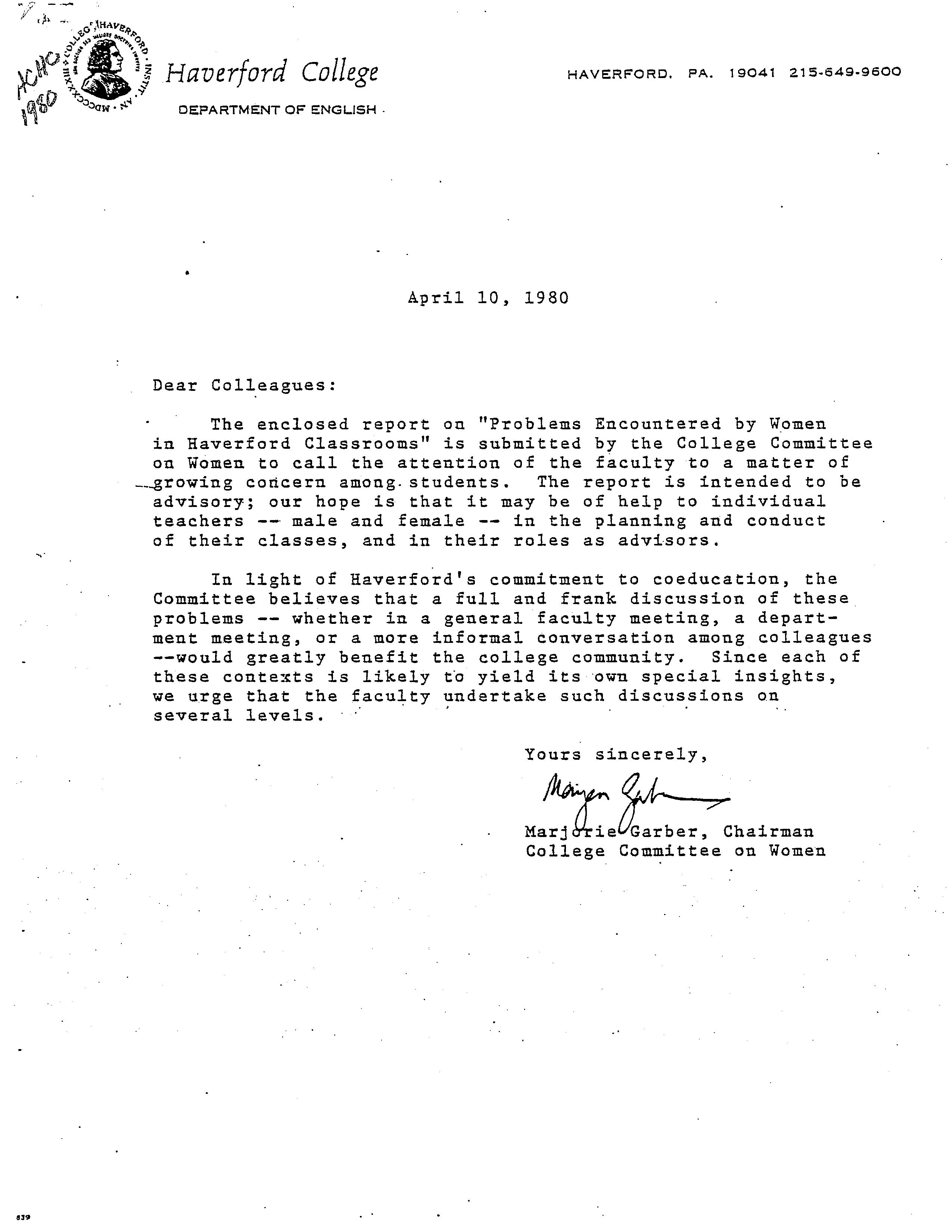 College Commitee on Women, “Problems Encountered by Women in Haverford Classrooms,” HIST H252 The History of Haverford College: Conflict, Consensus and the Liberal Arts, accessed December 21, 2025, https://ds-omeka.haverford.edu/annotations/items/show/150.