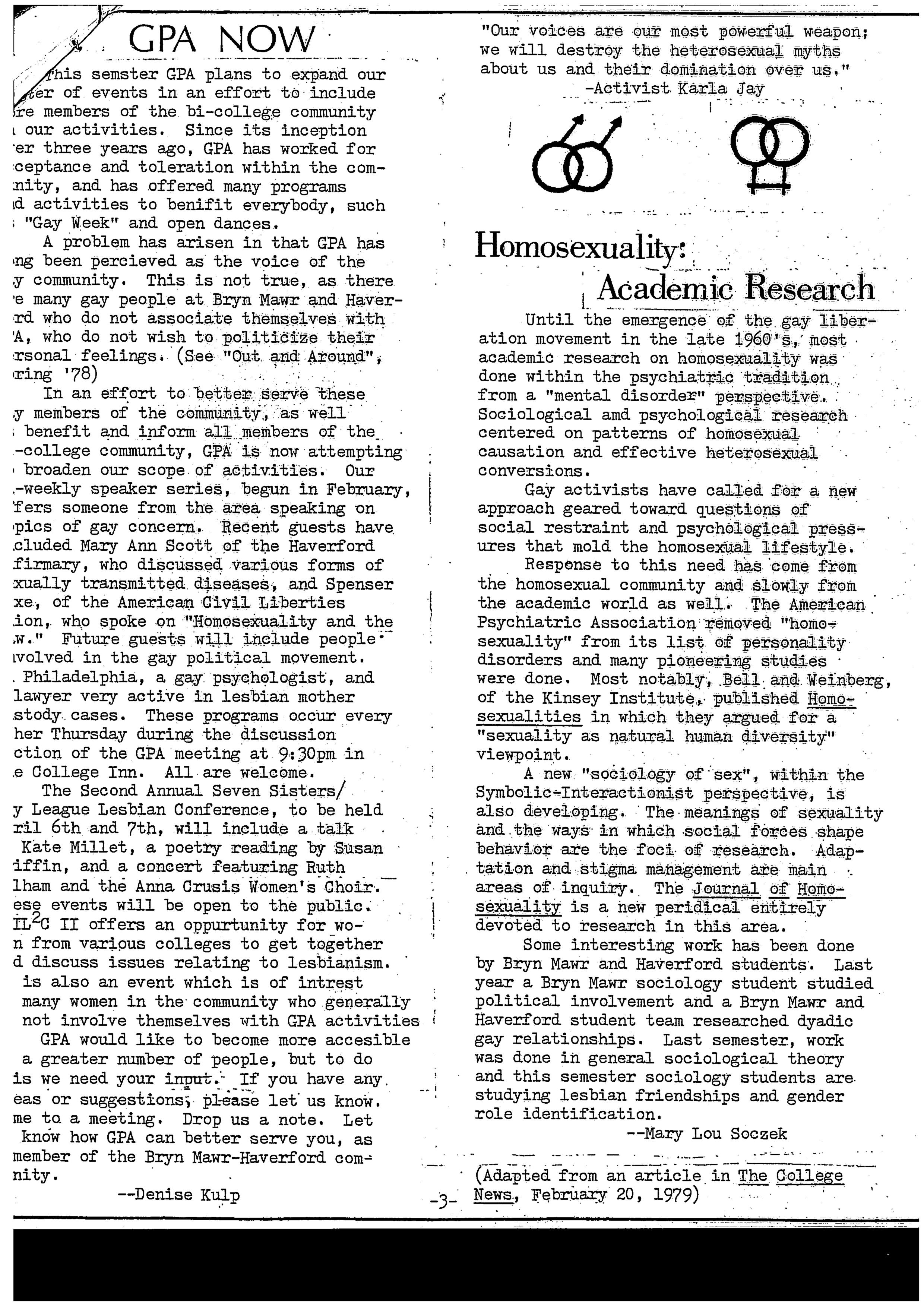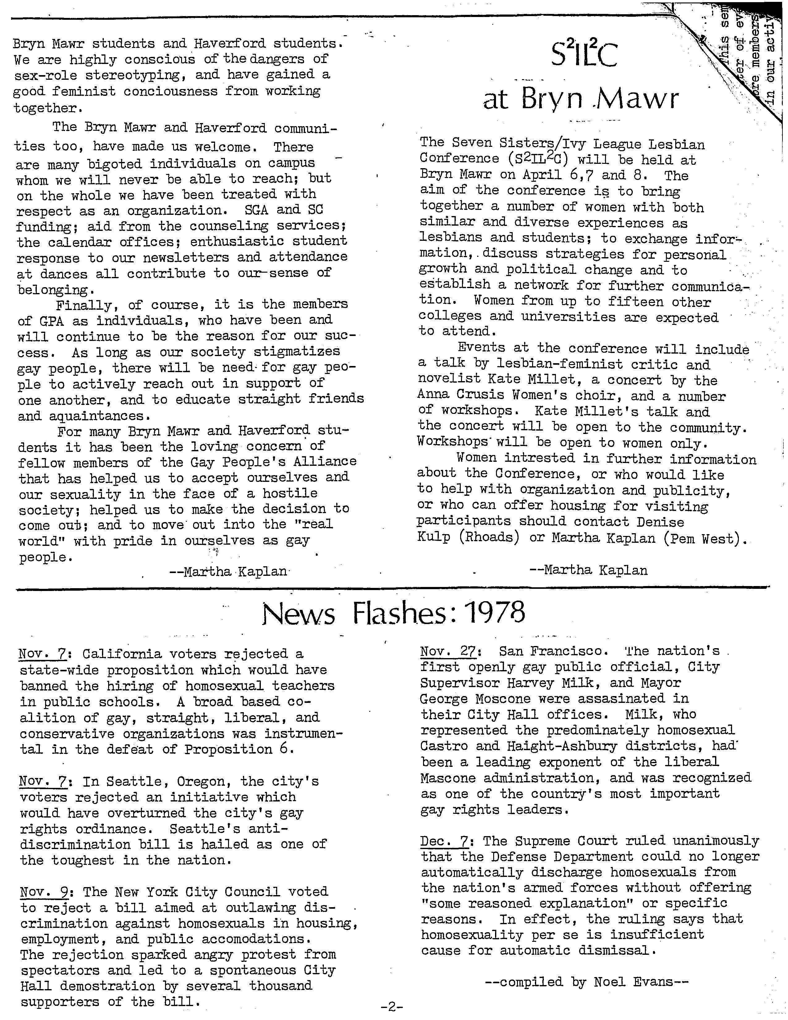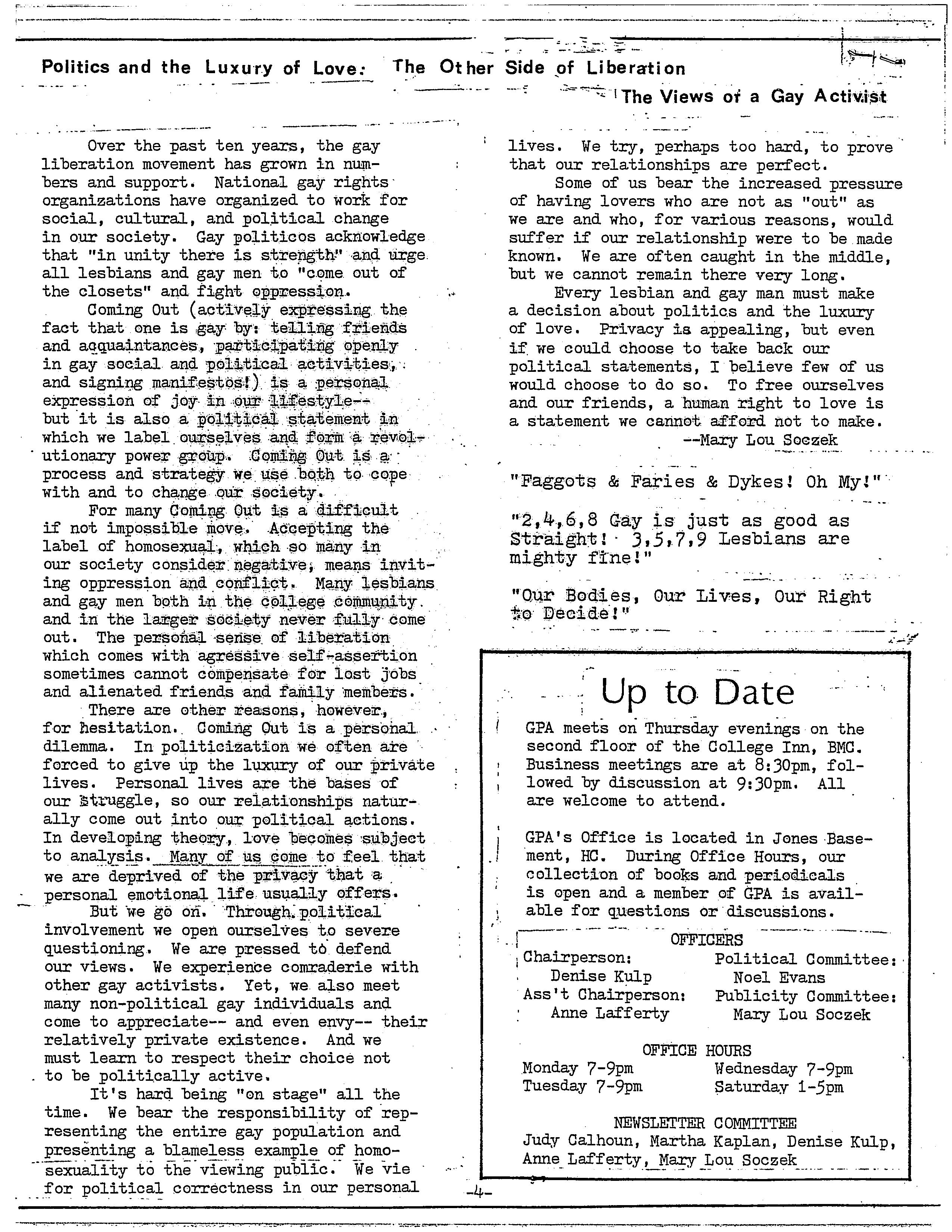 The HC-BMC Gay People's Alliance, “Out and Around ,” HIST H252 The History of Haverford College: Conflict, Consensus and the Liberal Arts, accessed December 21, 2025, https://ds-omeka.haverford.edu/annotations/items/show/155.
