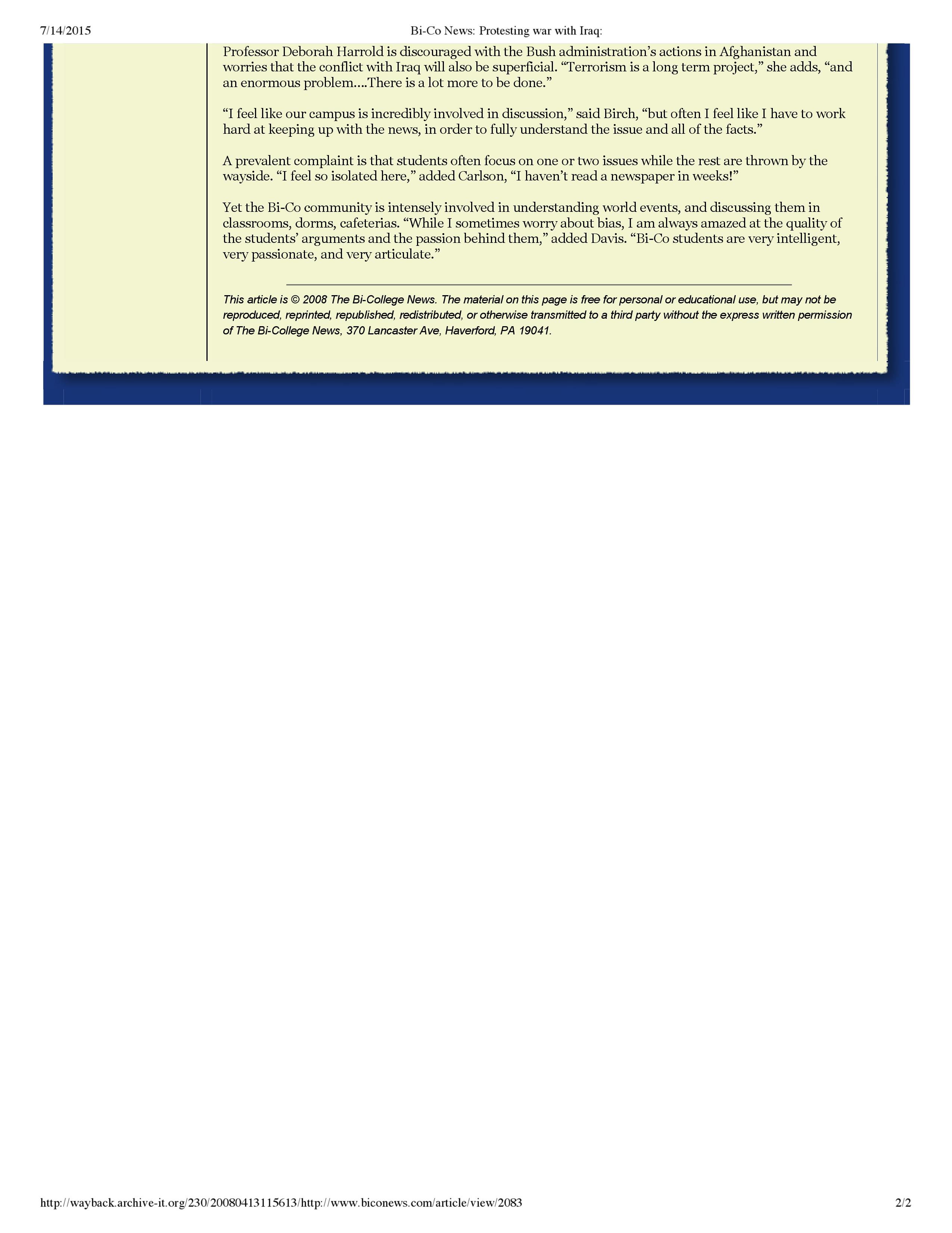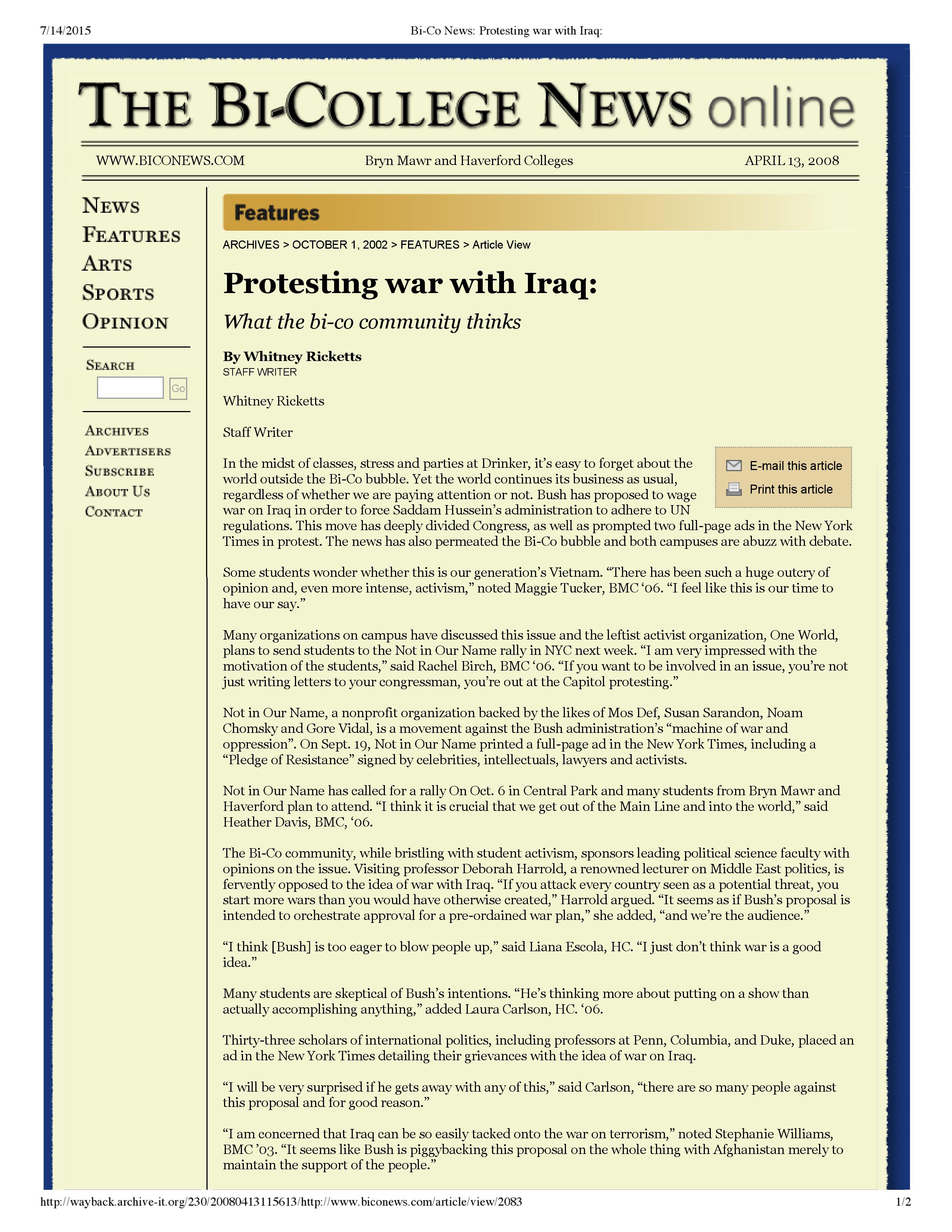 Whitney Ricketts, “Protesting War with Iraq,” HIST H252 The History of Haverford College: Conflict, Consensus and the Liberal Arts, accessed December 21, 2025, https://ds-omeka.haverford.edu/annotations/items/show/163.