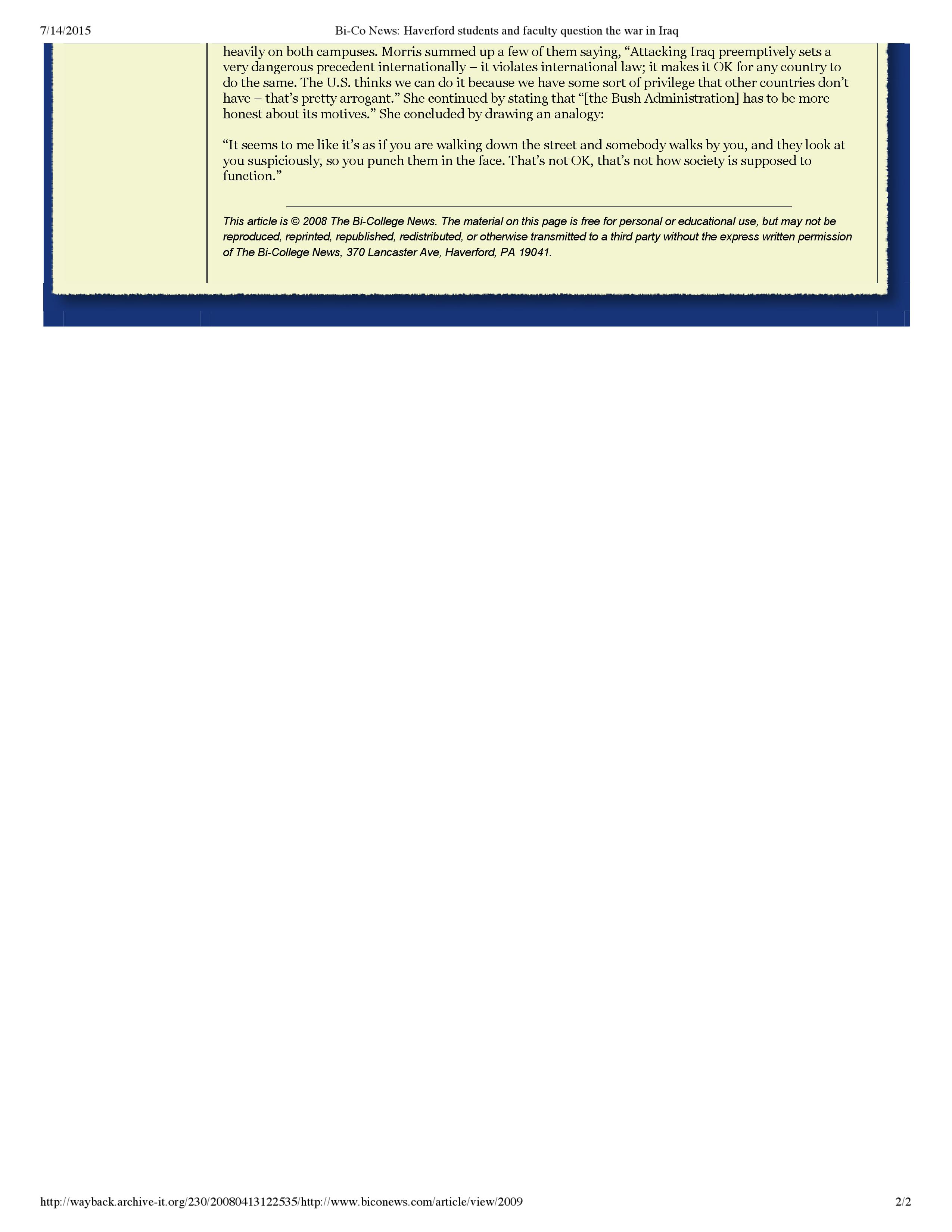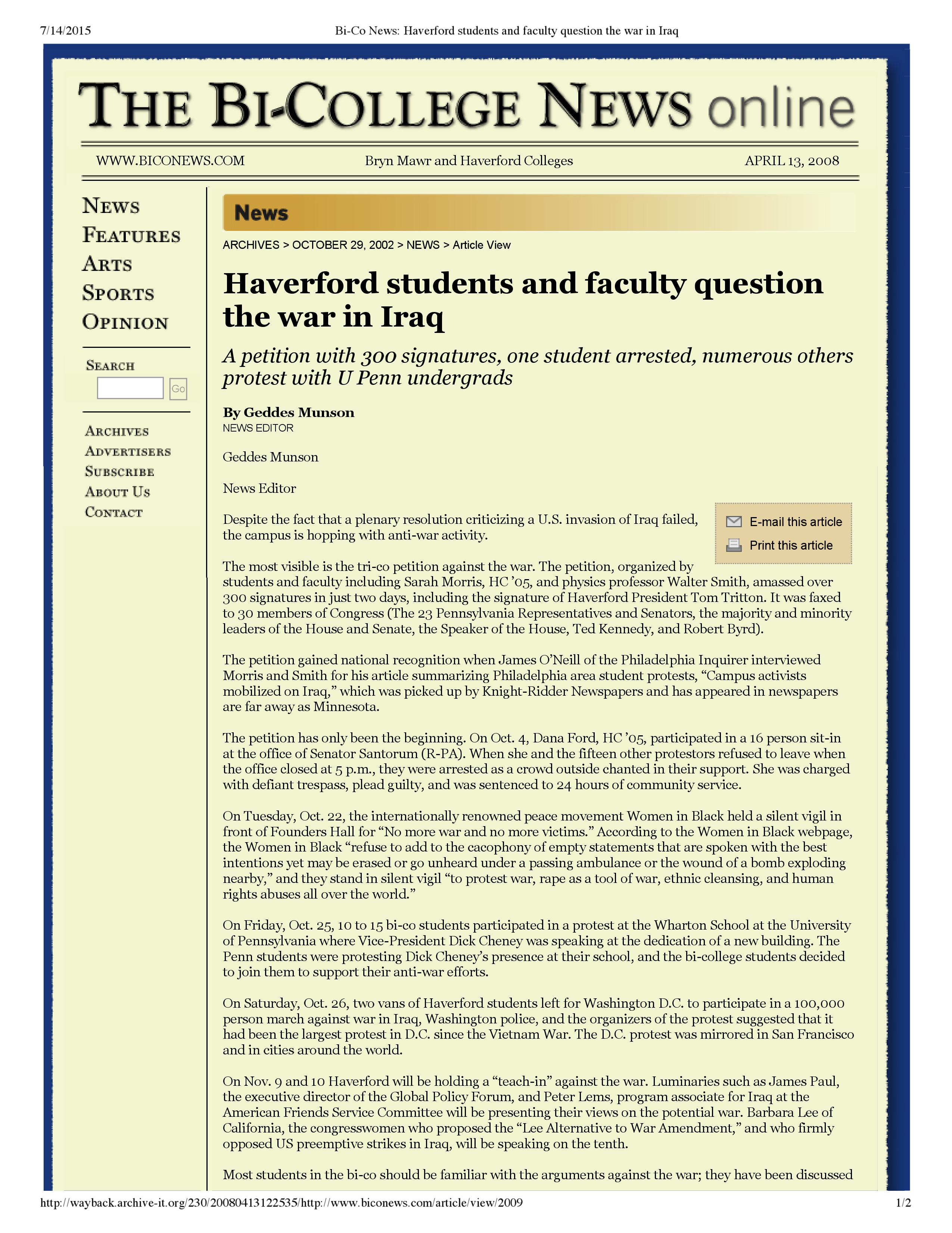 Geddes Munson, “Haverford Students and Faculty Question the War in Iraq,” HIST H252 The History of Haverford College: Conflict, Consensus and the Liberal Arts, accessed December 21, 2025, https://ds-omeka.haverford.edu/annotations/items/show/164.
