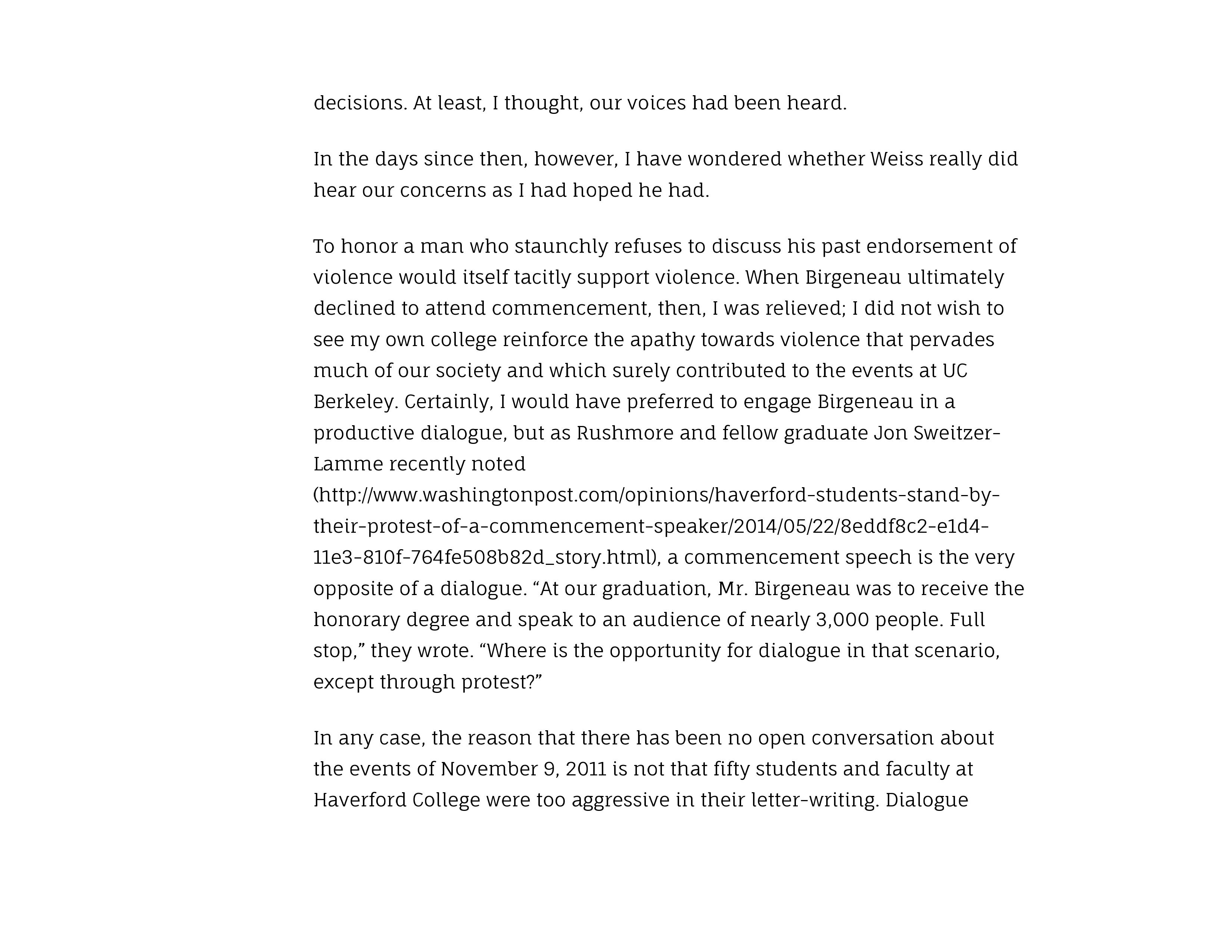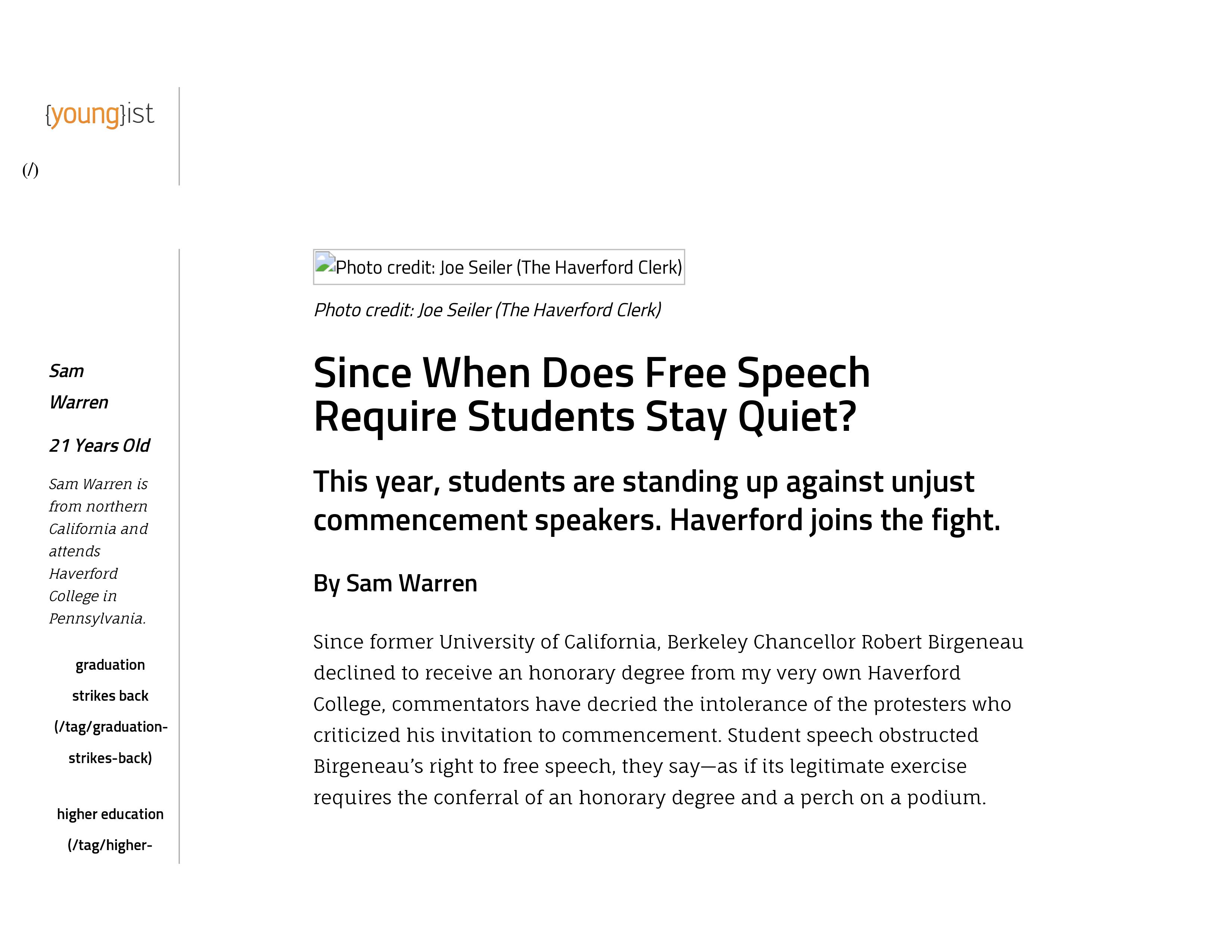 Sam Warren, “Since When Does Free Speech Require Students Stay Quiet?,” HIST H252 The History of Haverford College: Conflict, Consensus and the Liberal Arts, accessed December 21, 2025, https://ds-omeka.haverford.edu/annotations/items/show/183.