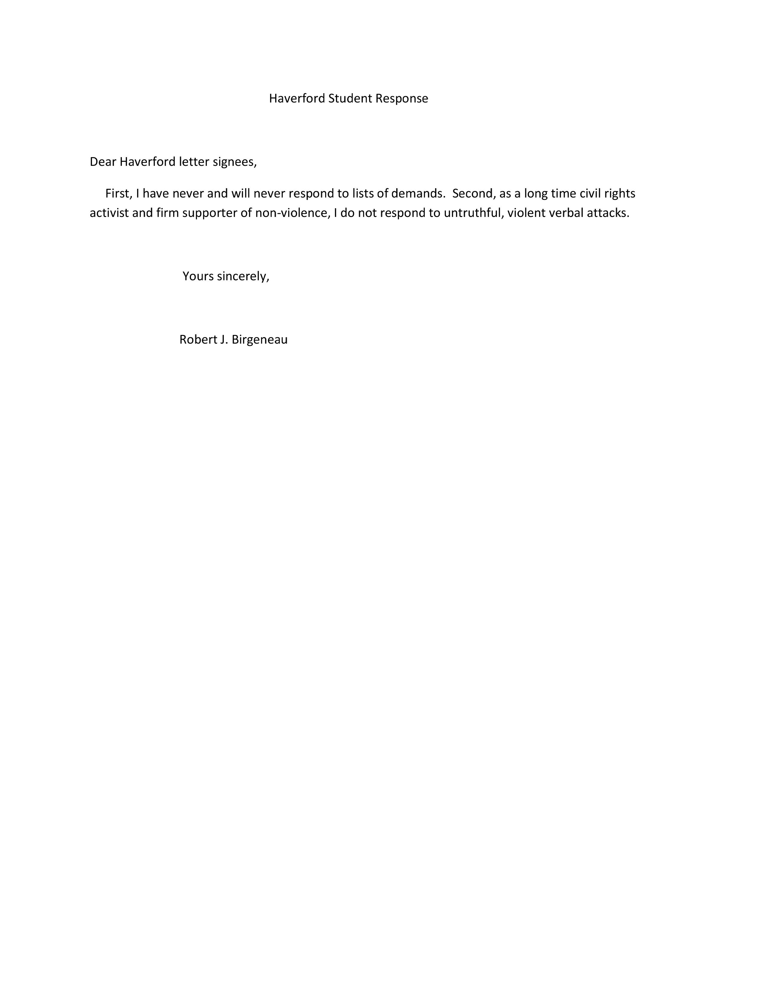 Robert J. Birgeneau, “Haverford Student Response,” HIST H252 The History of Haverford College: Conflict, Consensus and the Liberal Arts, accessed December 21, 2025, https://ds-omeka.haverford.edu/annotations/items/show/188.