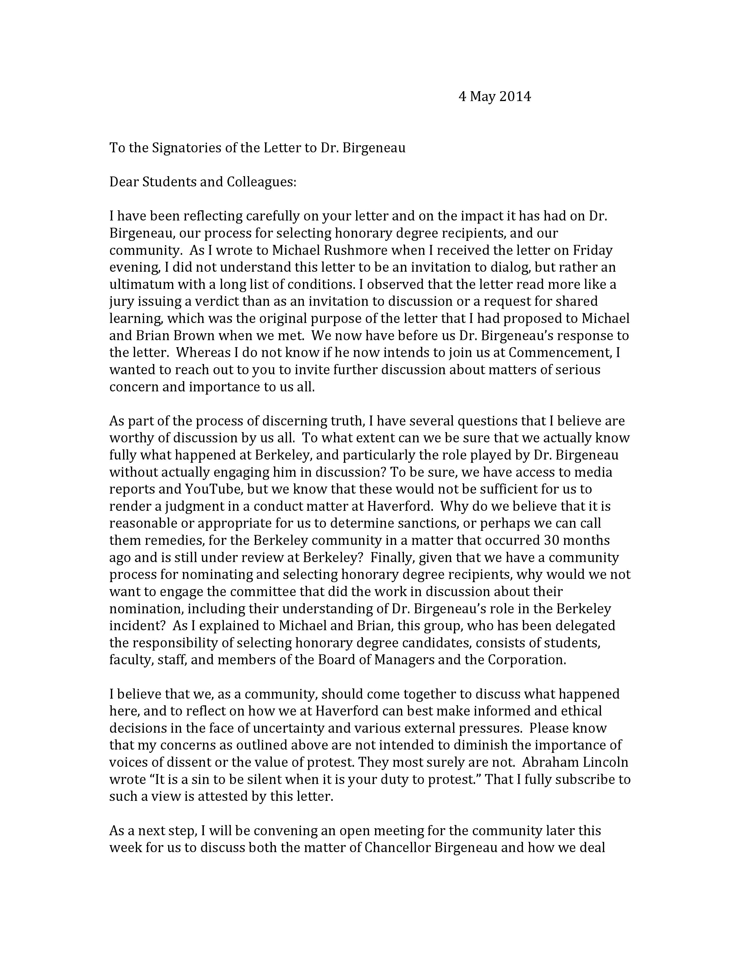 Daniel Weiss, “President Weiss Letter to Students,” HIST H252 The History of Haverford College: Conflict, Consensus and the Liberal Arts, accessed December 21, 2025, https://ds-omeka.haverford.edu/annotations/items/show/198.