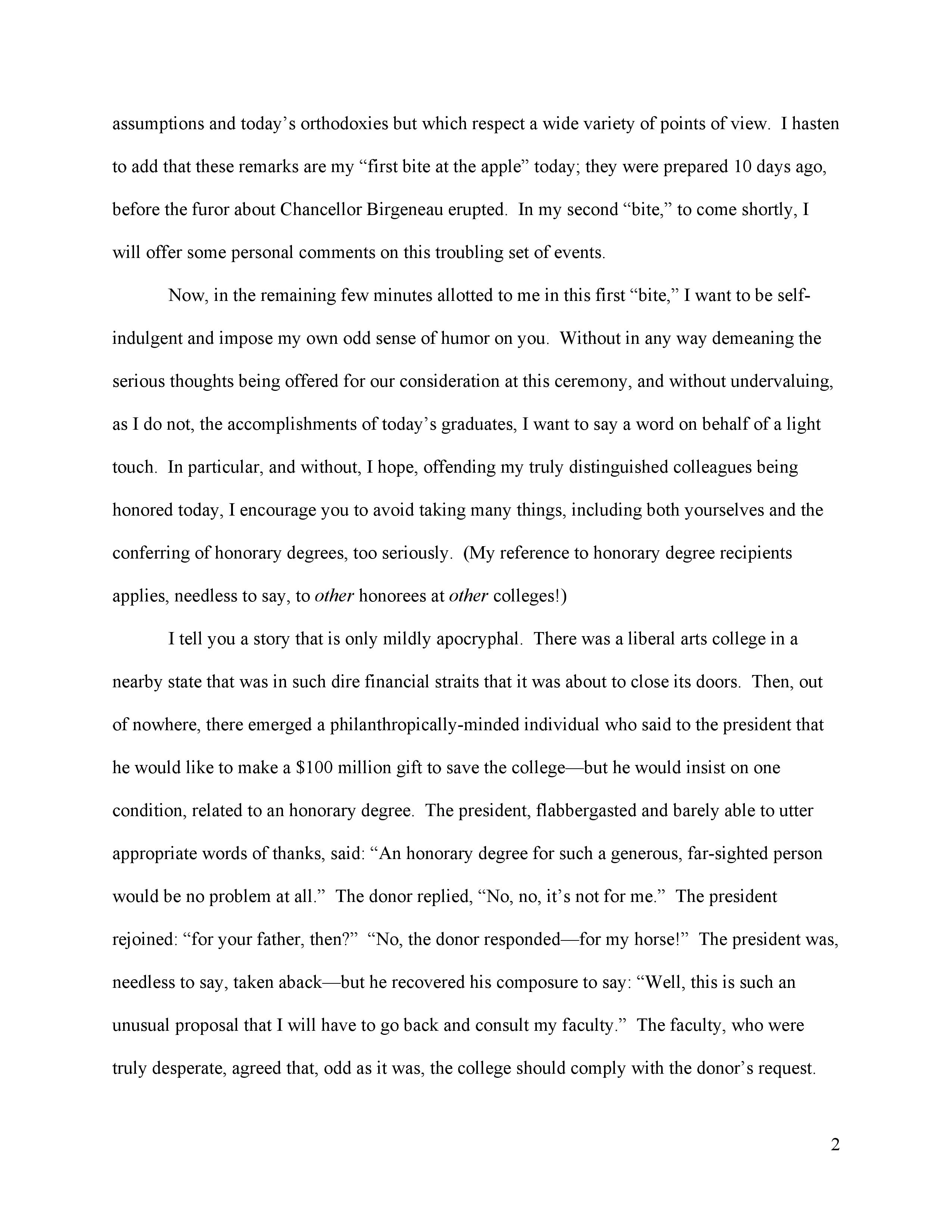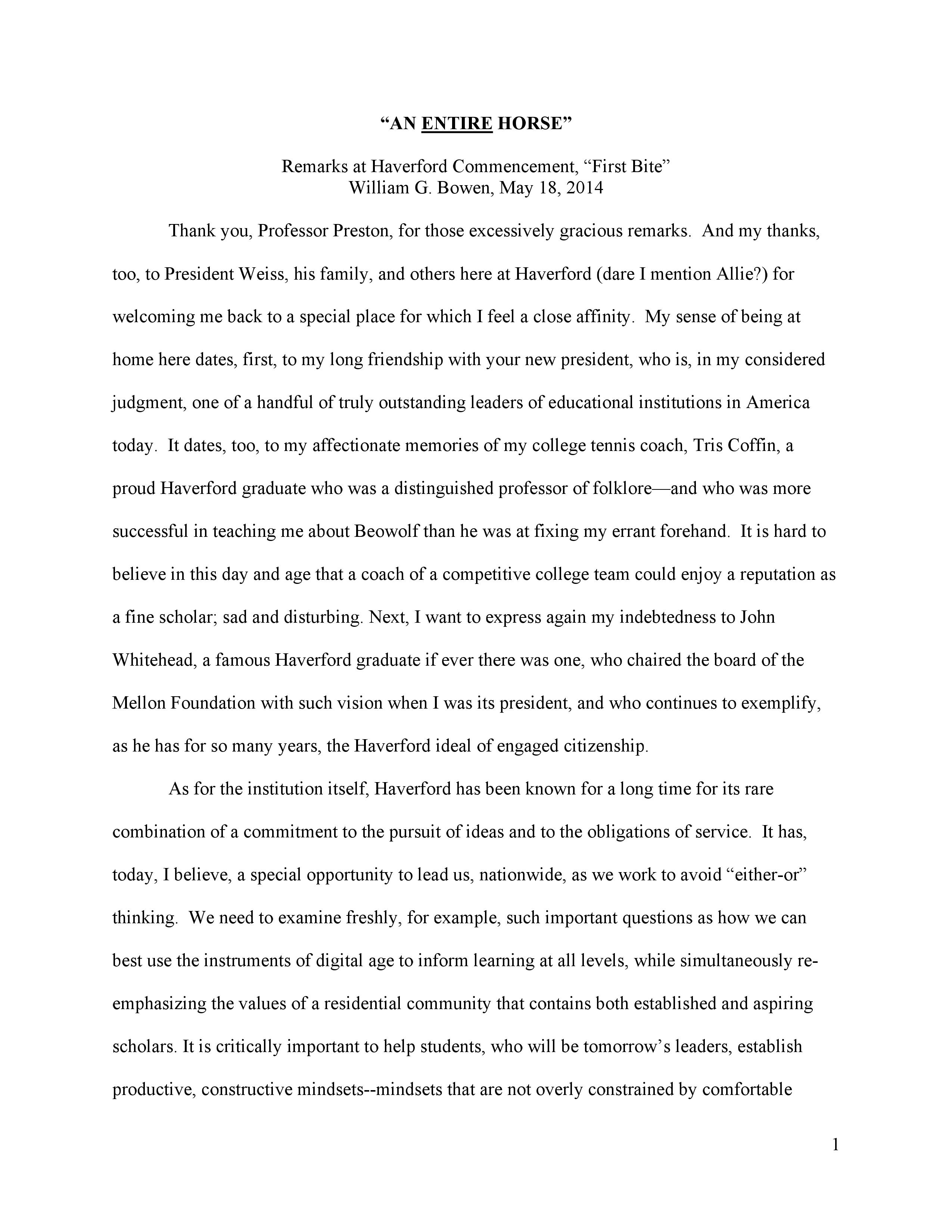 "An Entire Horse" Remarks at Haverford Commencement "First Bite"