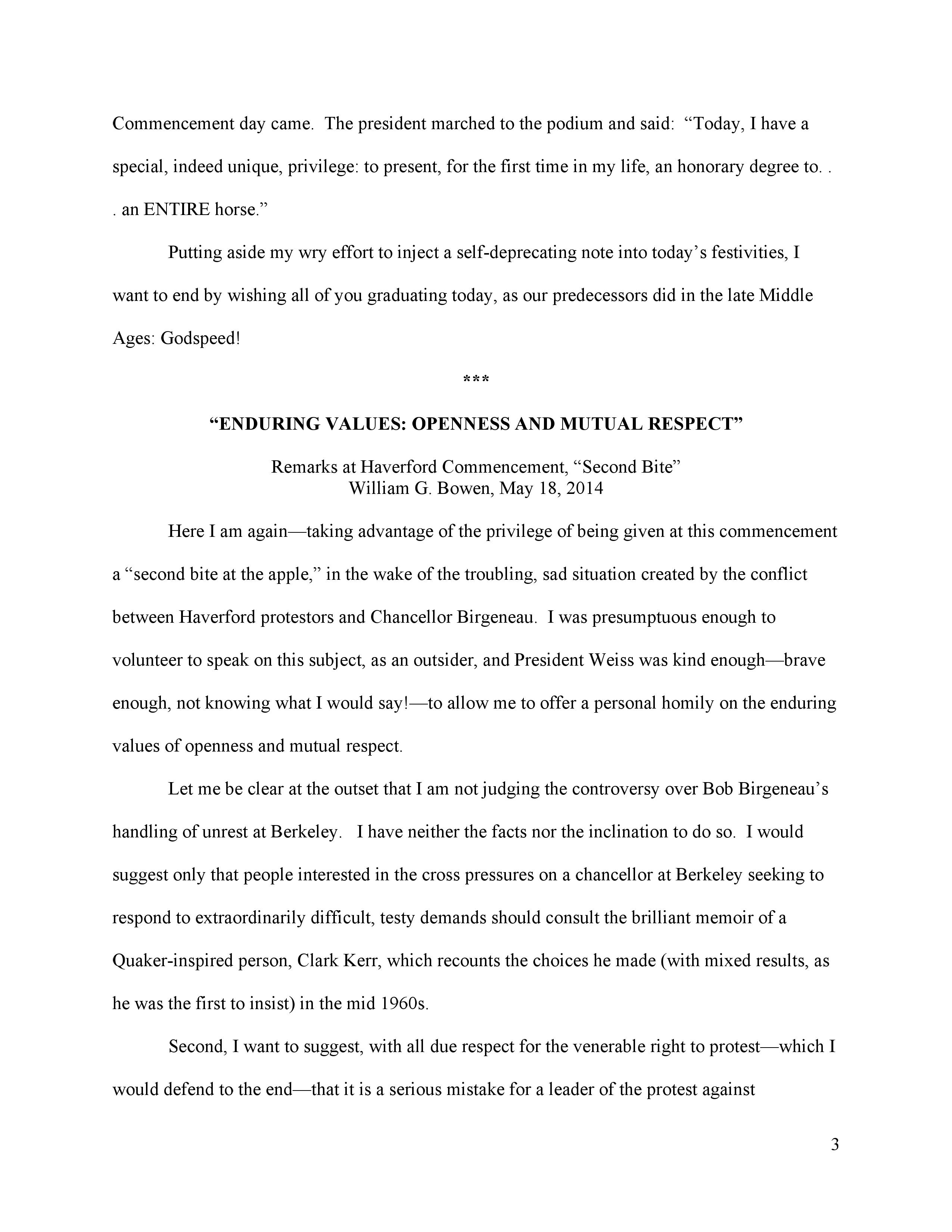 William G. Bowen, “"An Entire Horse" Remarks at Haverford Commencement "First Bite" ,” HIST H252 The History of Haverford College: Conflict, Consensus and the Liberal Arts, accessed December 21, 2025, https://ds-omeka.haverford.edu/annotations/items/show/200.