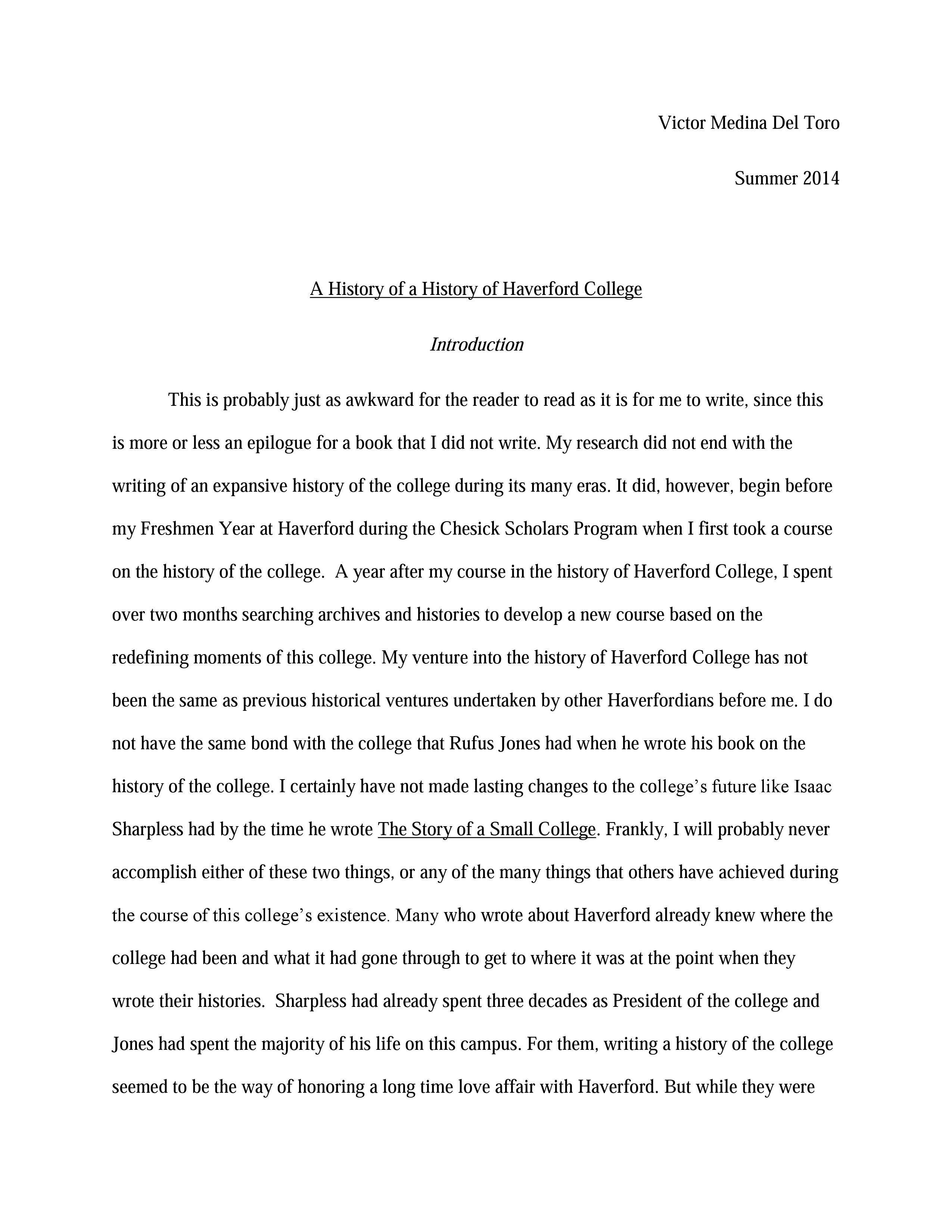 Victor Medina Del Toro, “A History of a History of Haverford College,” HIST H252 The History of Haverford College: Conflict, Consensus and the Liberal Arts, accessed December 21, 2025, https://ds-omeka.haverford.edu/annotations/items/show/202.