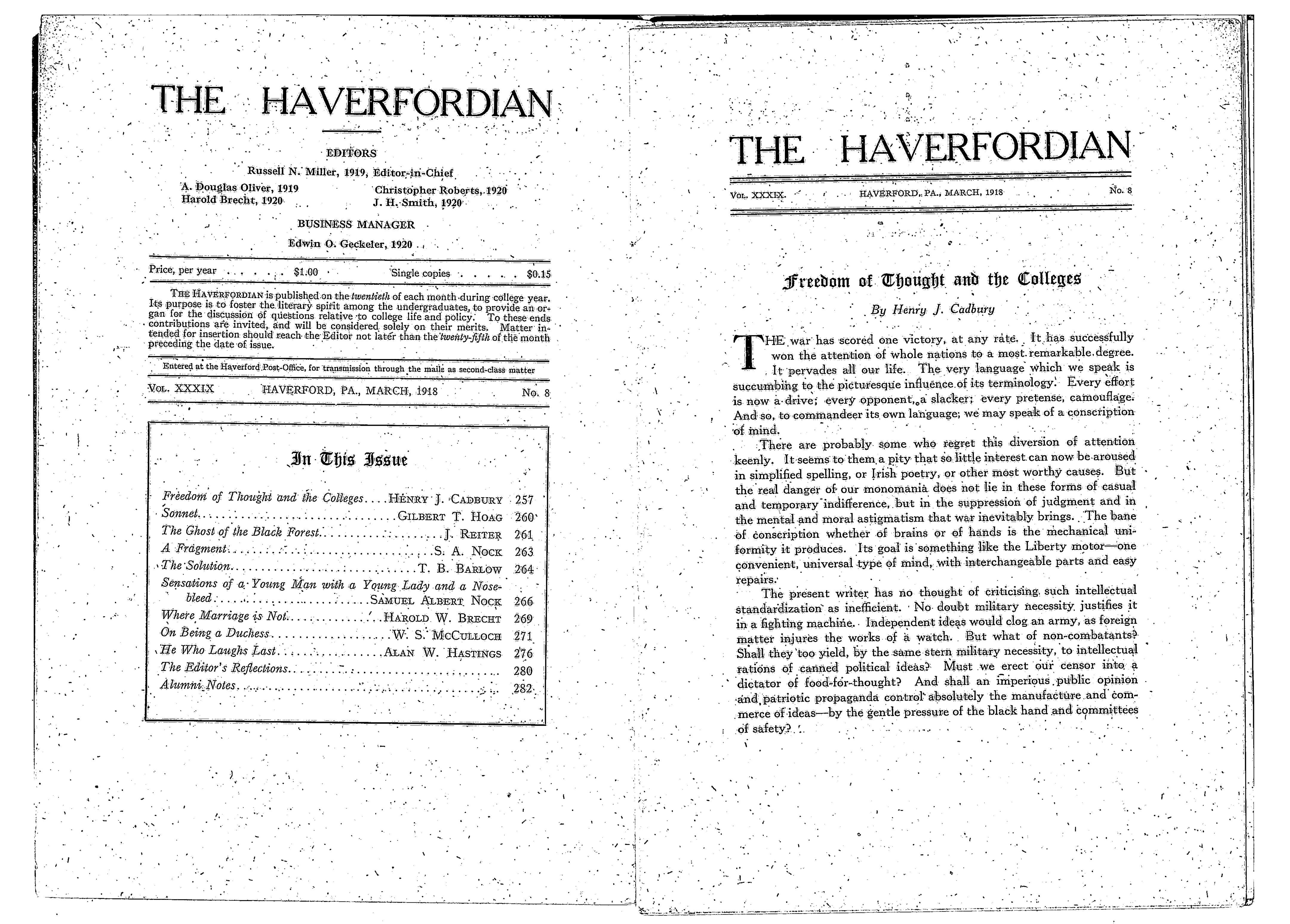 Hengry J. Cadbury, “Freedom of Thought and the Colleges,” HIST H252 The History of Haverford College: Conflict, Consensus and the Liberal Arts, accessed December 21, 2025, https://ds-omeka.haverford.edu/annotations/items/show/212.