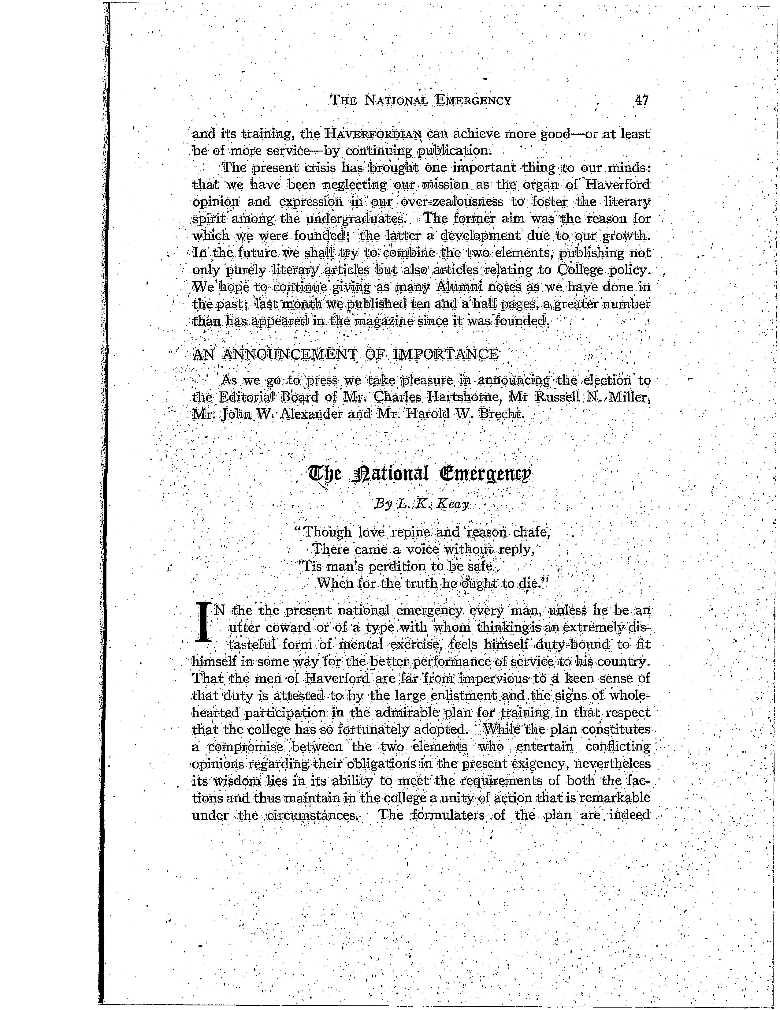 L.K. Keay, “The National Emergency,” HIST H252 The History of Haverford College: Conflict, Consensus and the Liberal Arts, accessed December 21, 2025, https://ds-omeka.haverford.edu/annotations/items/show/217.