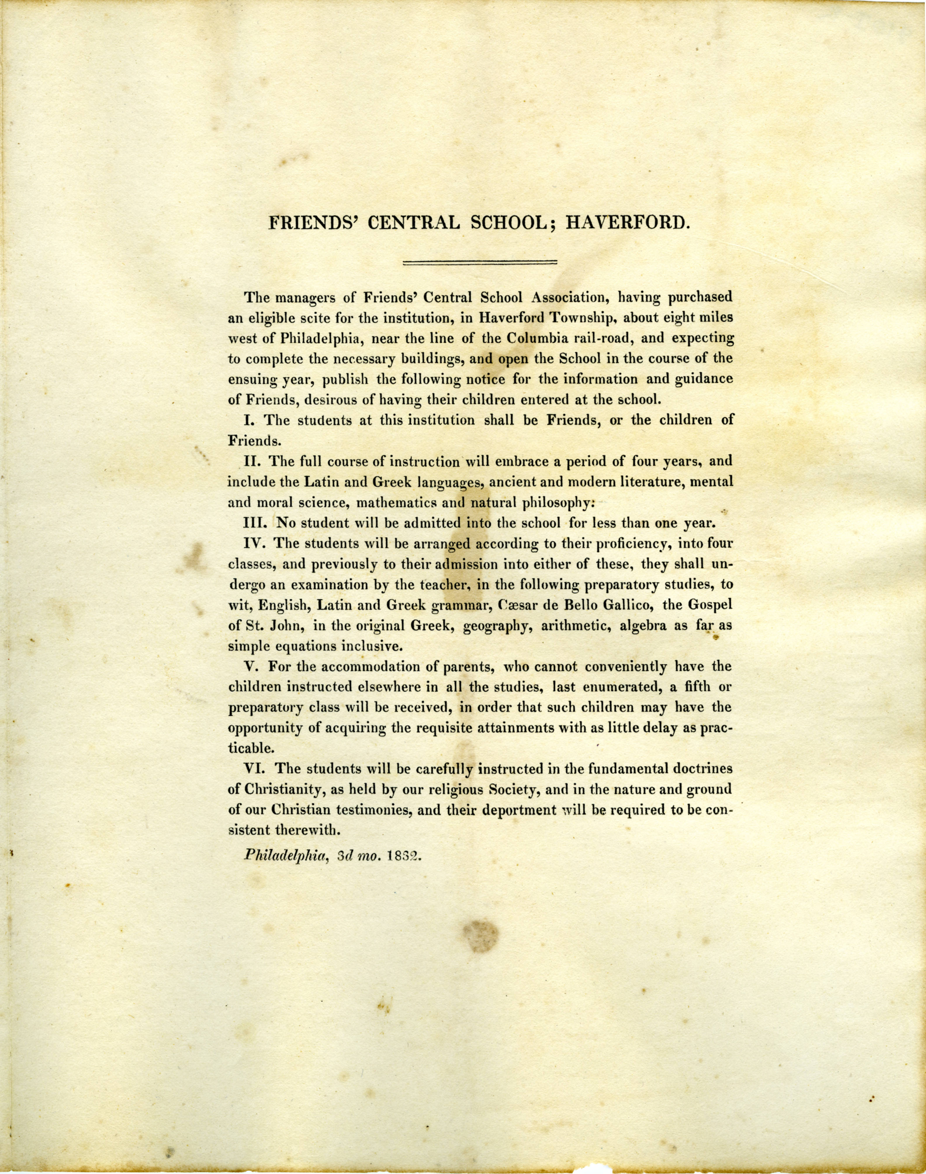 Haverford College. Board of Managers, “Friends' Central School- Haverford,” HIST H252 The History of Haverford College: Conflict, Consensus and the Liberal Arts, accessed December 21, 2025, https://ds-omeka.haverford.edu/annotations/items/show/240.