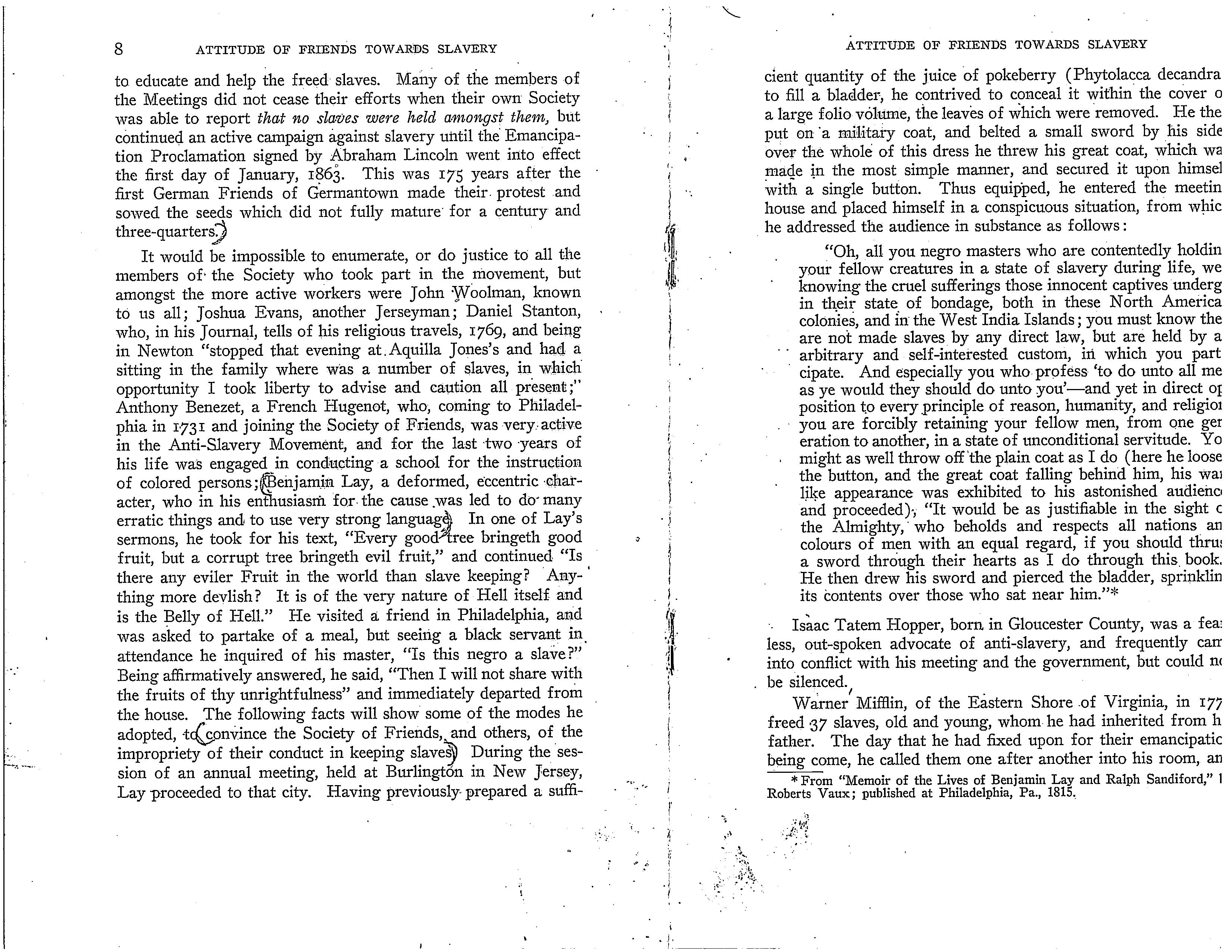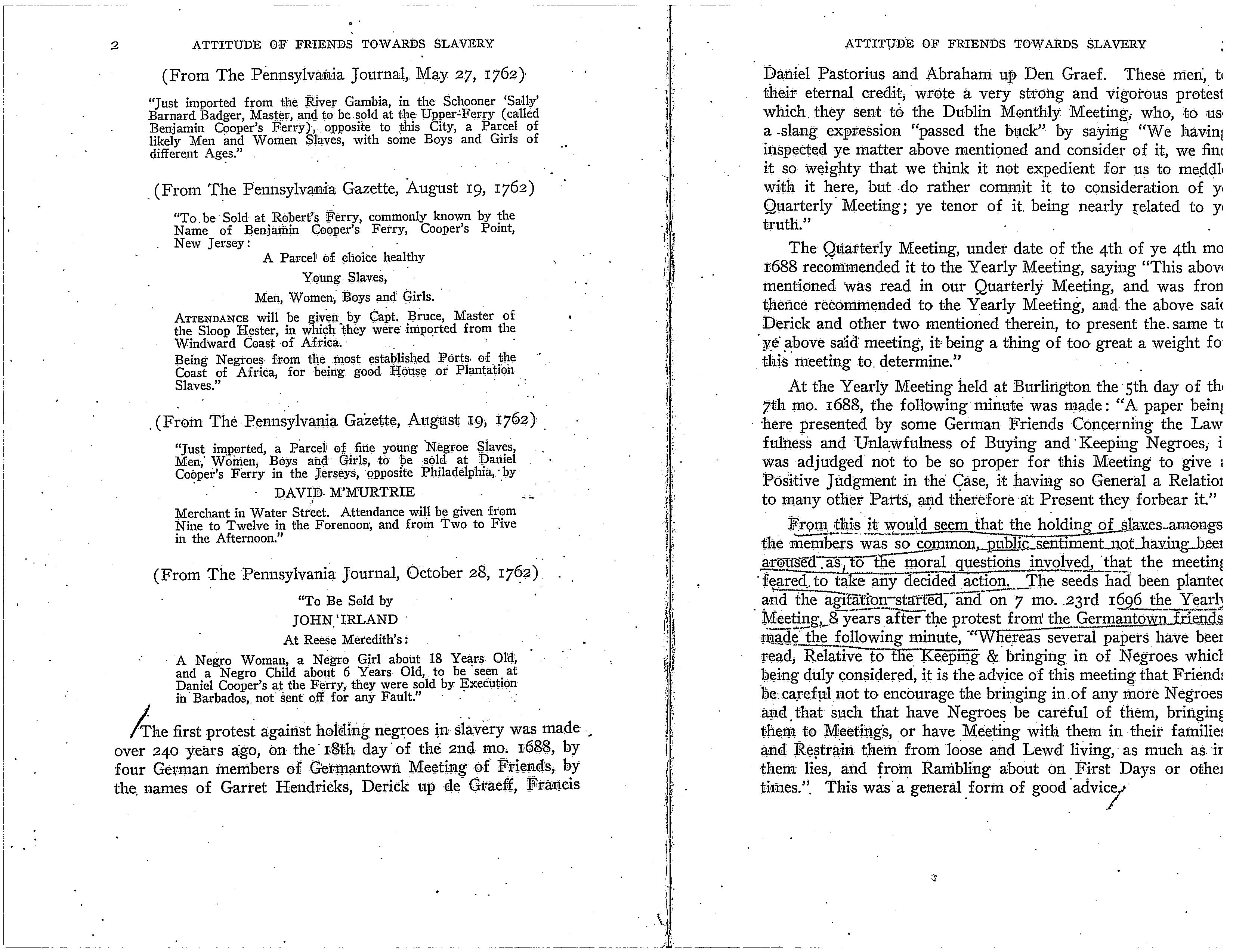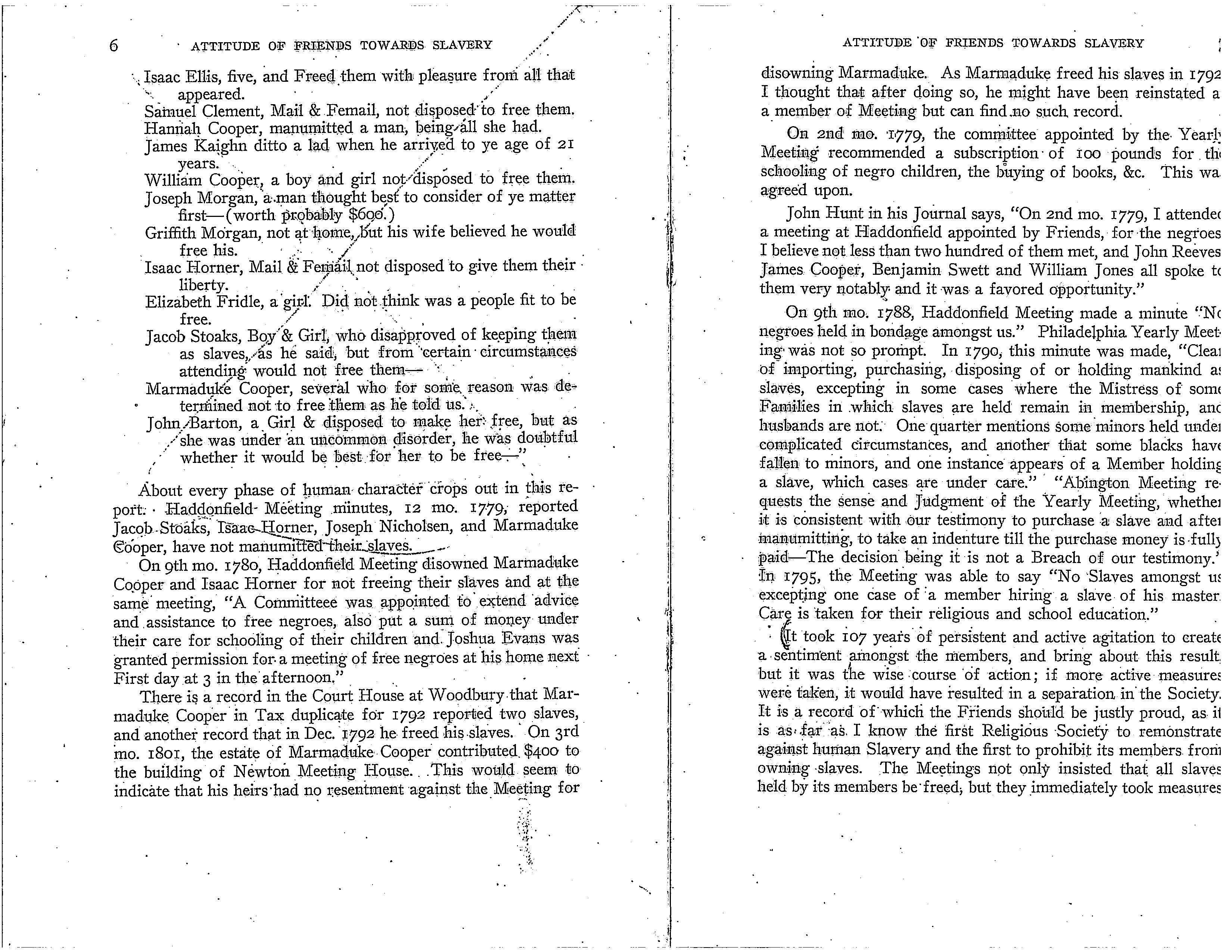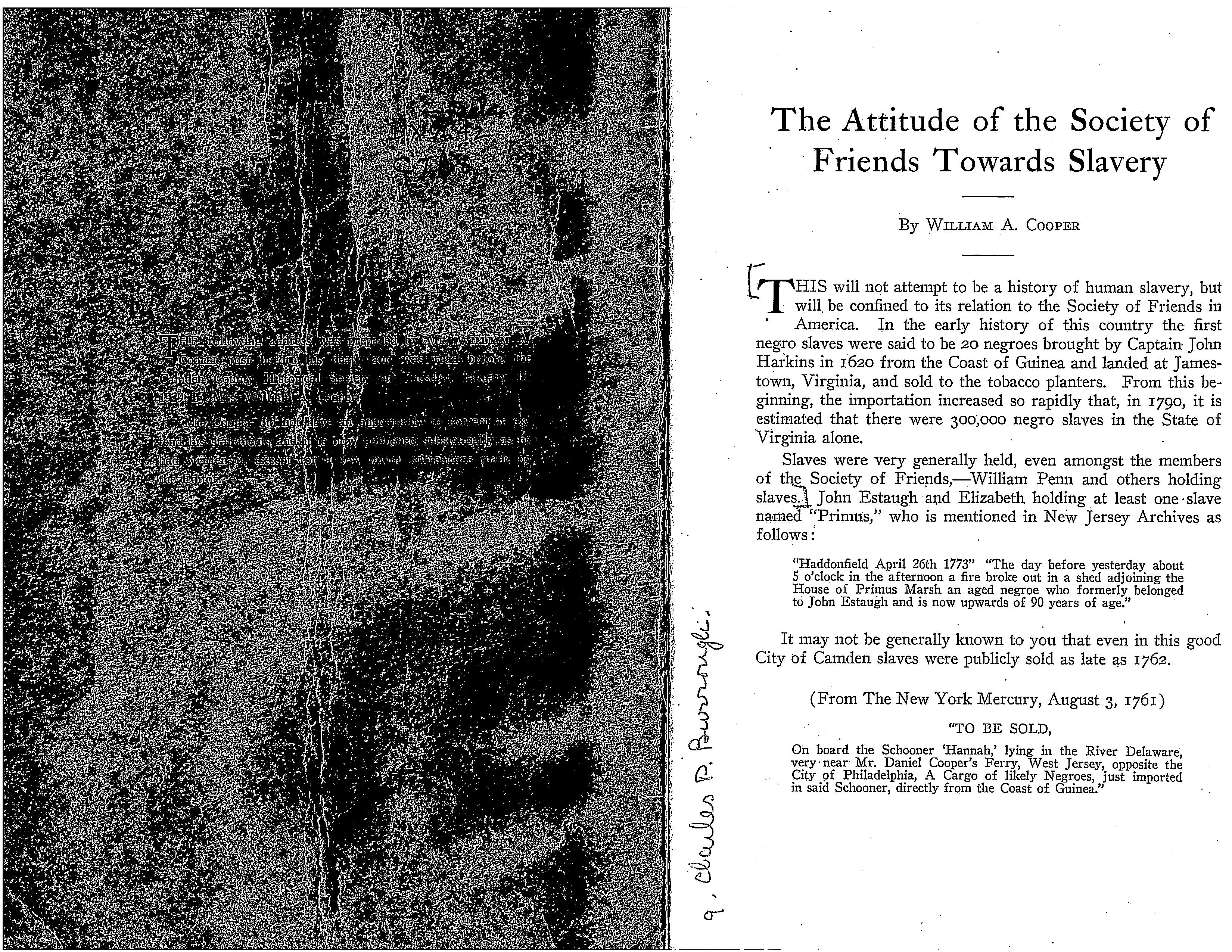 William A. Cooper, “The Attitude of the Society of Friends Towards Slavery,” HIST H252 The History of Haverford College: Conflict, Consensus and the Liberal Arts, accessed December 21, 2025, https://ds-omeka.haverford.edu/annotations/items/show/256.