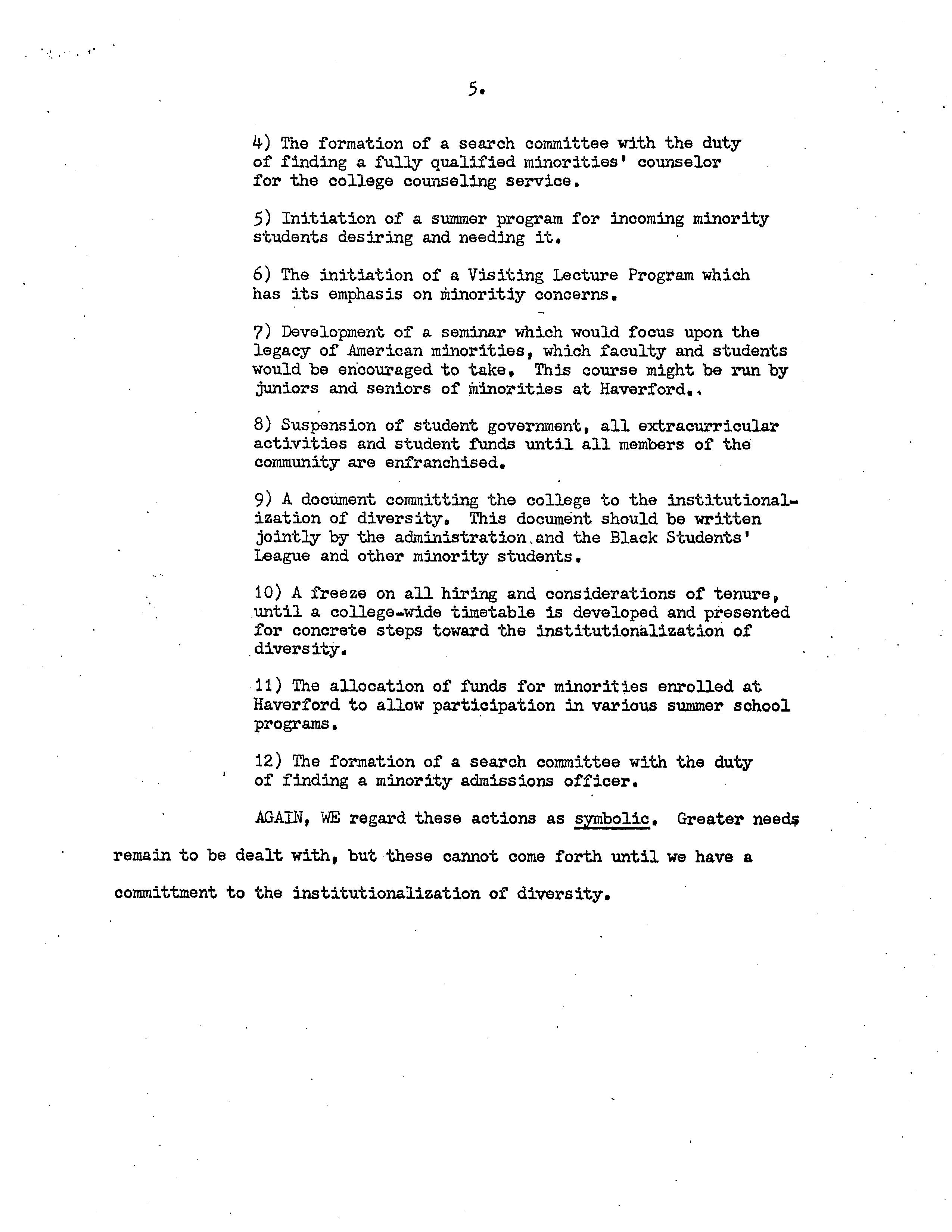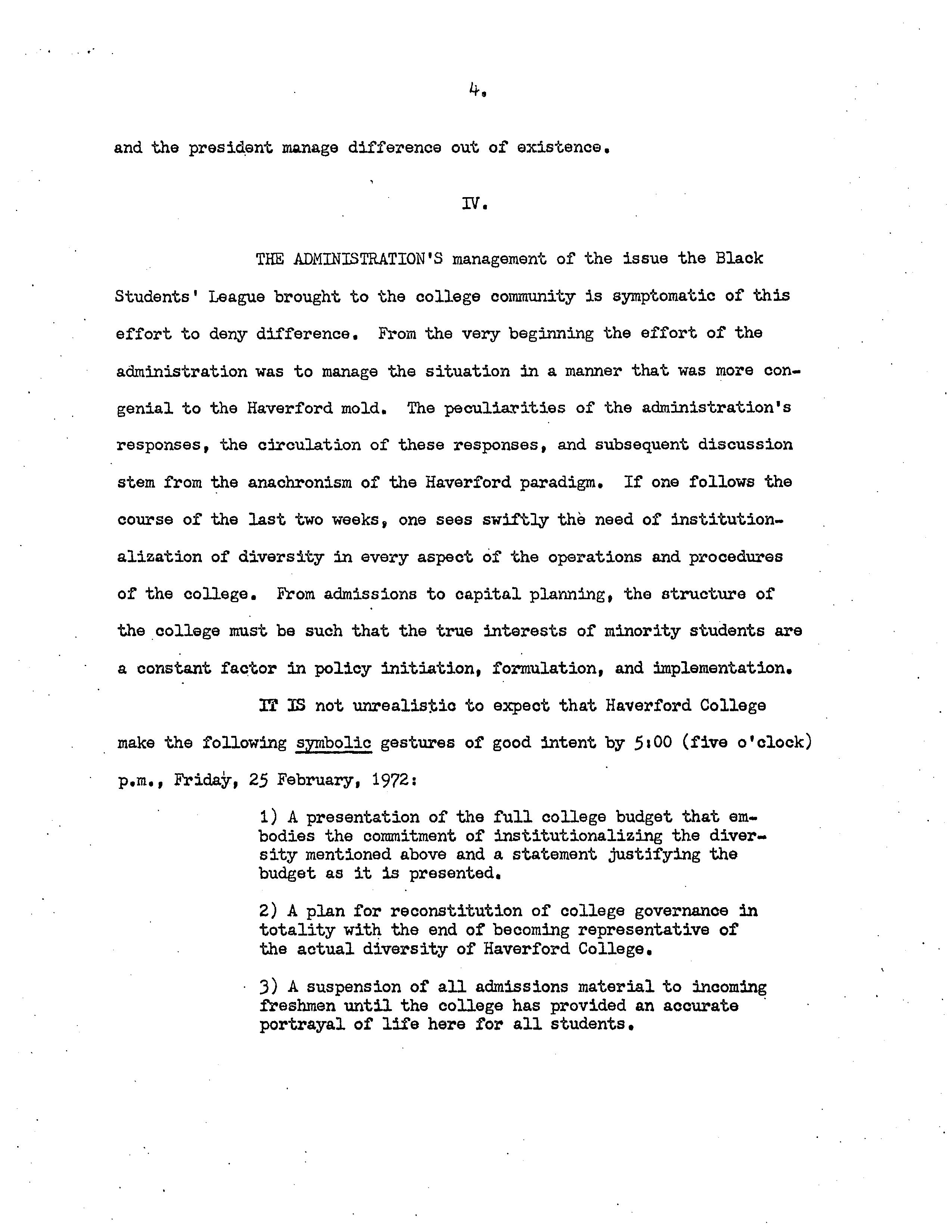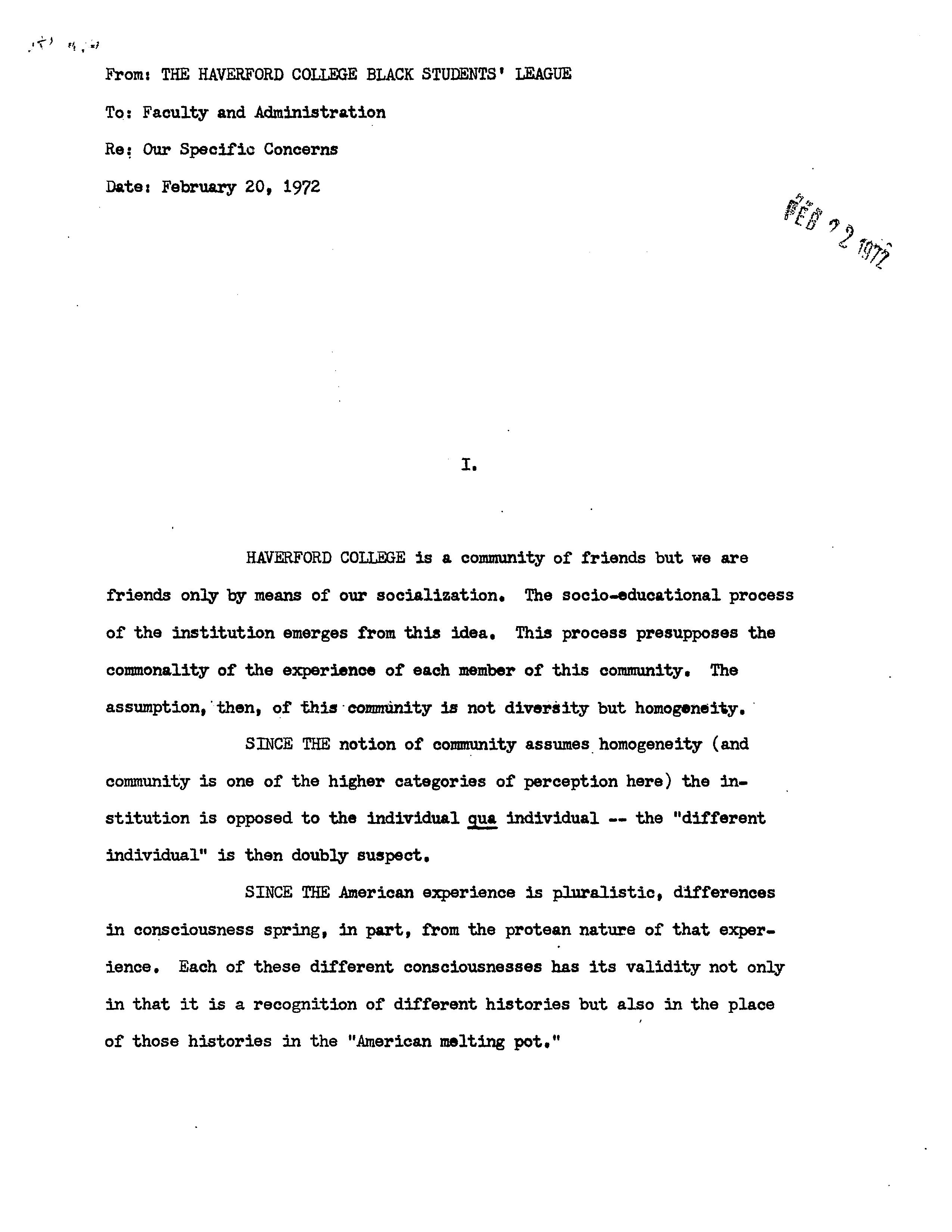 Black Students' League, “Our Specific Concerns,” HIST H252 The History of Haverford College: Conflict, Consensus and the Liberal Arts, accessed December 21, 2025, https://ds-omeka.haverford.edu/annotations/items/show/56.