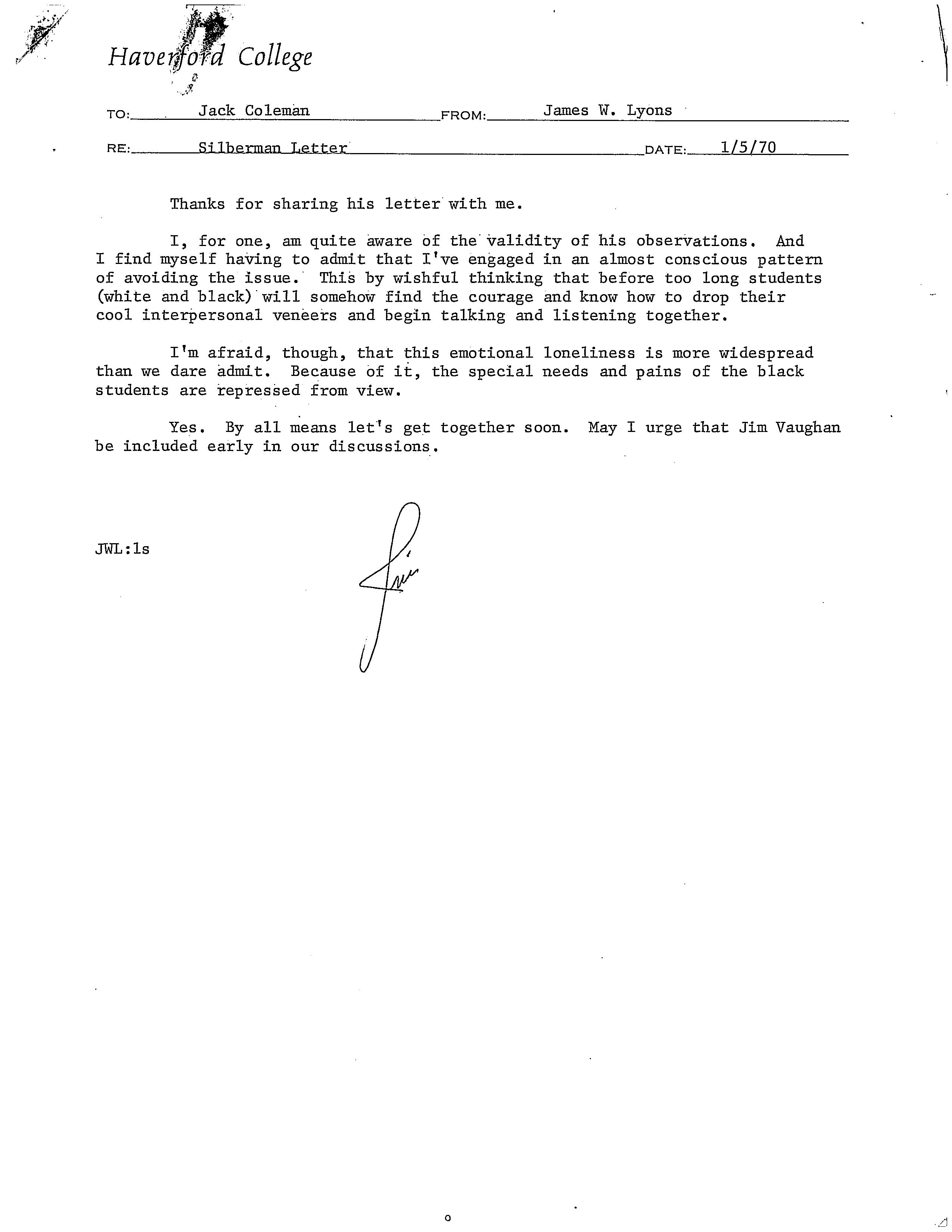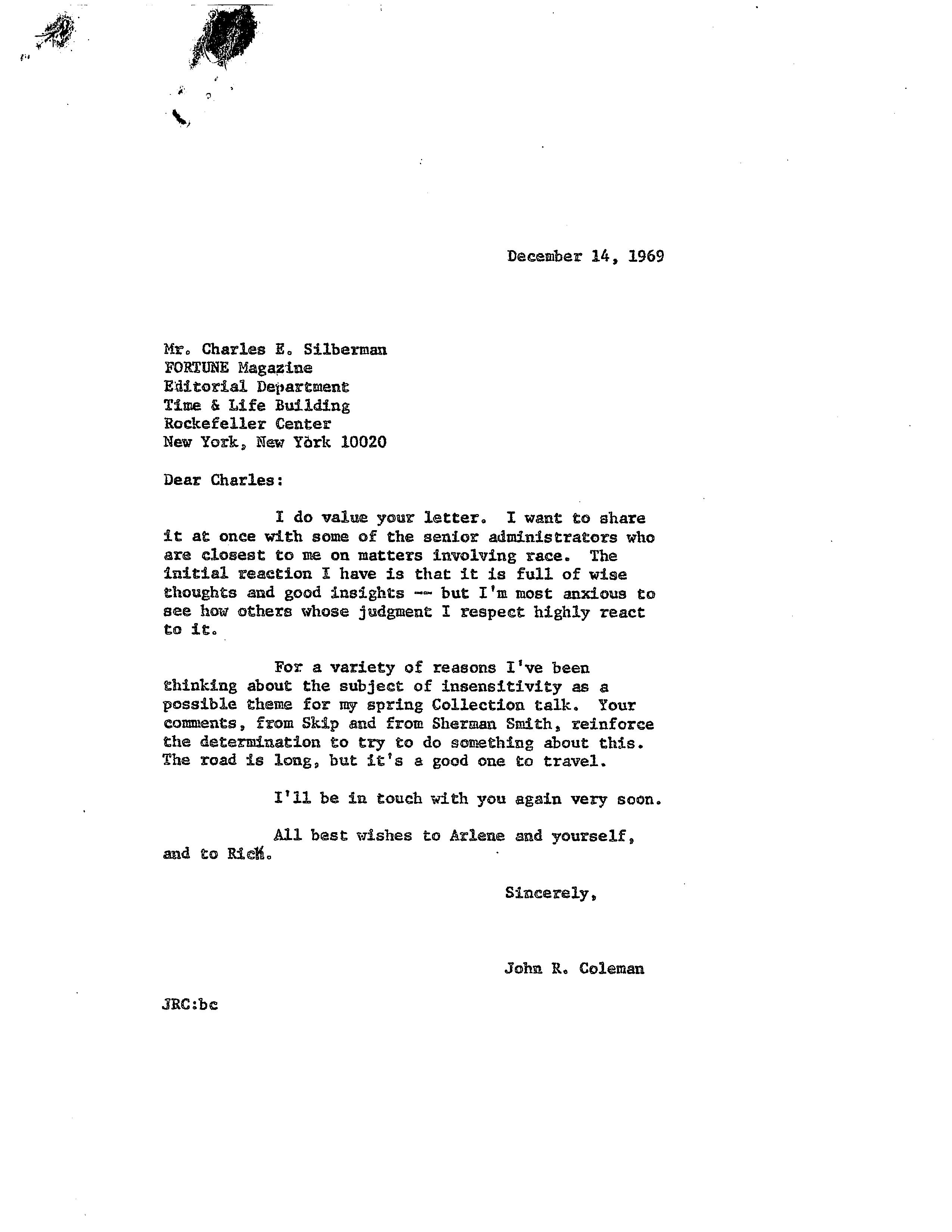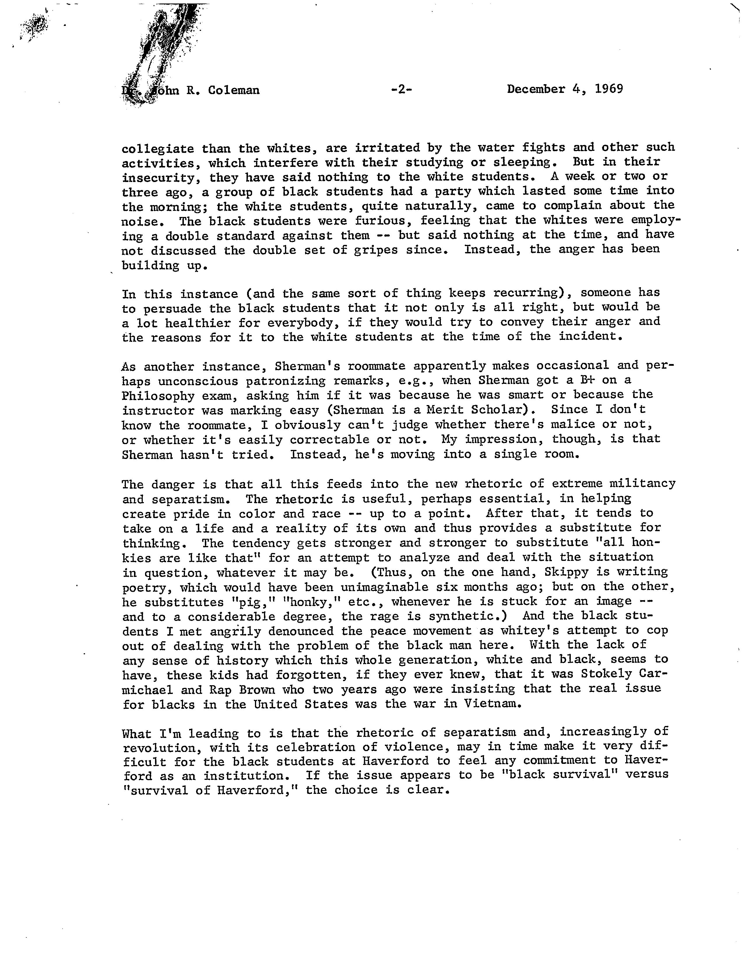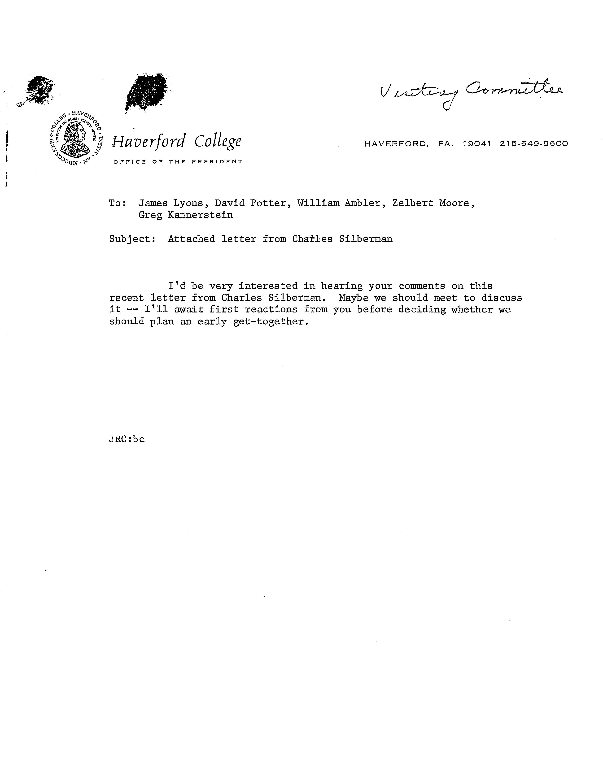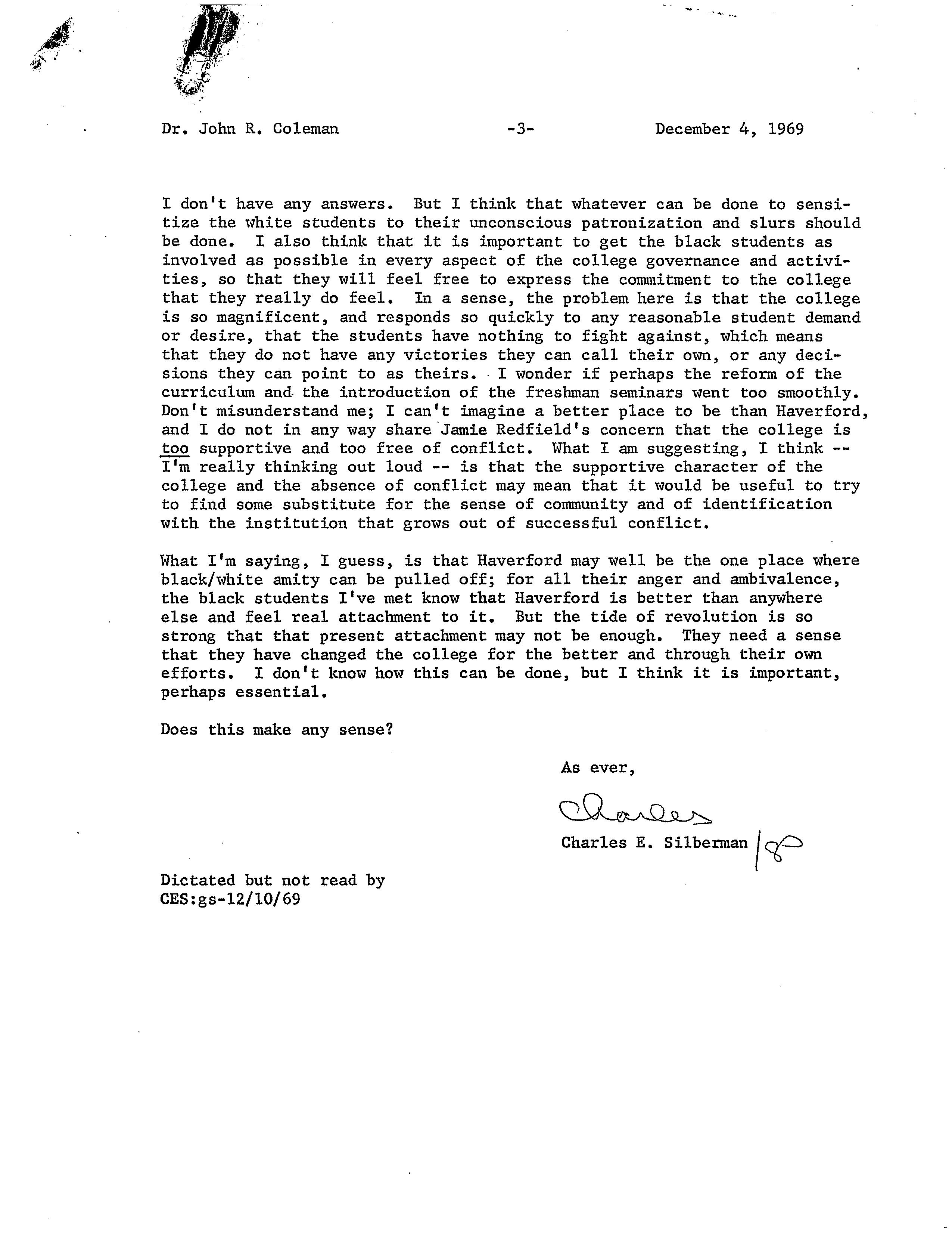 Charles E. Silberman, “Letter to President Coleman,” HIST H252 The History of Haverford College: Conflict, Consensus and the Liberal Arts, accessed December 21, 2025, https://ds-omeka.haverford.edu/annotations/items/show/58.