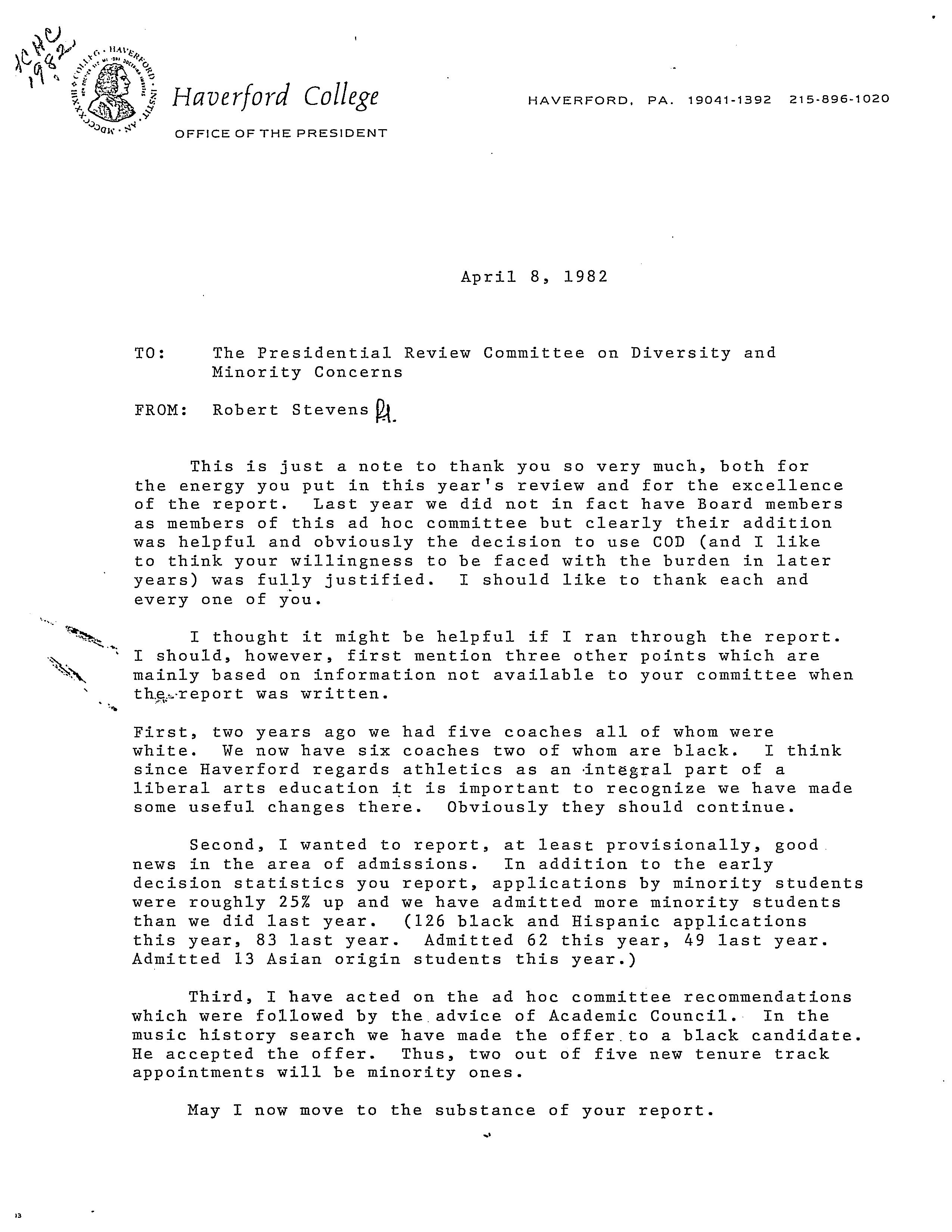 Robert Stevens, “President Stevens-Review Committee,” HIST H252 The History of Haverford College: Conflict, Consensus and the Liberal Arts, accessed December 21, 2025, https://ds-omeka.haverford.edu/annotations/items/show/61.