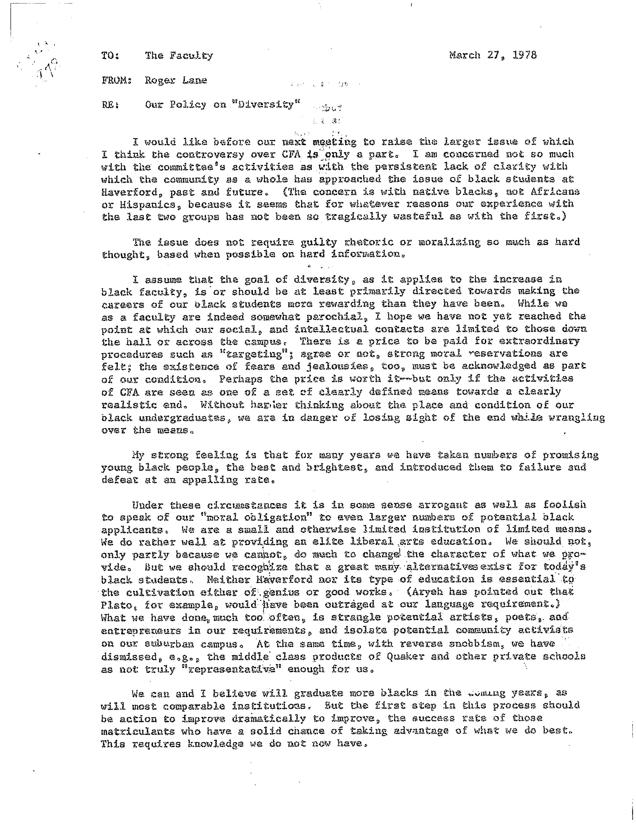 Roger Lane, “Our Policy on "Diversity",” HIST H252 The History of Haverford College: Conflict, Consensus and the Liberal Arts, accessed December 21, 2025, https://ds-omeka.haverford.edu/annotations/items/show/64.
