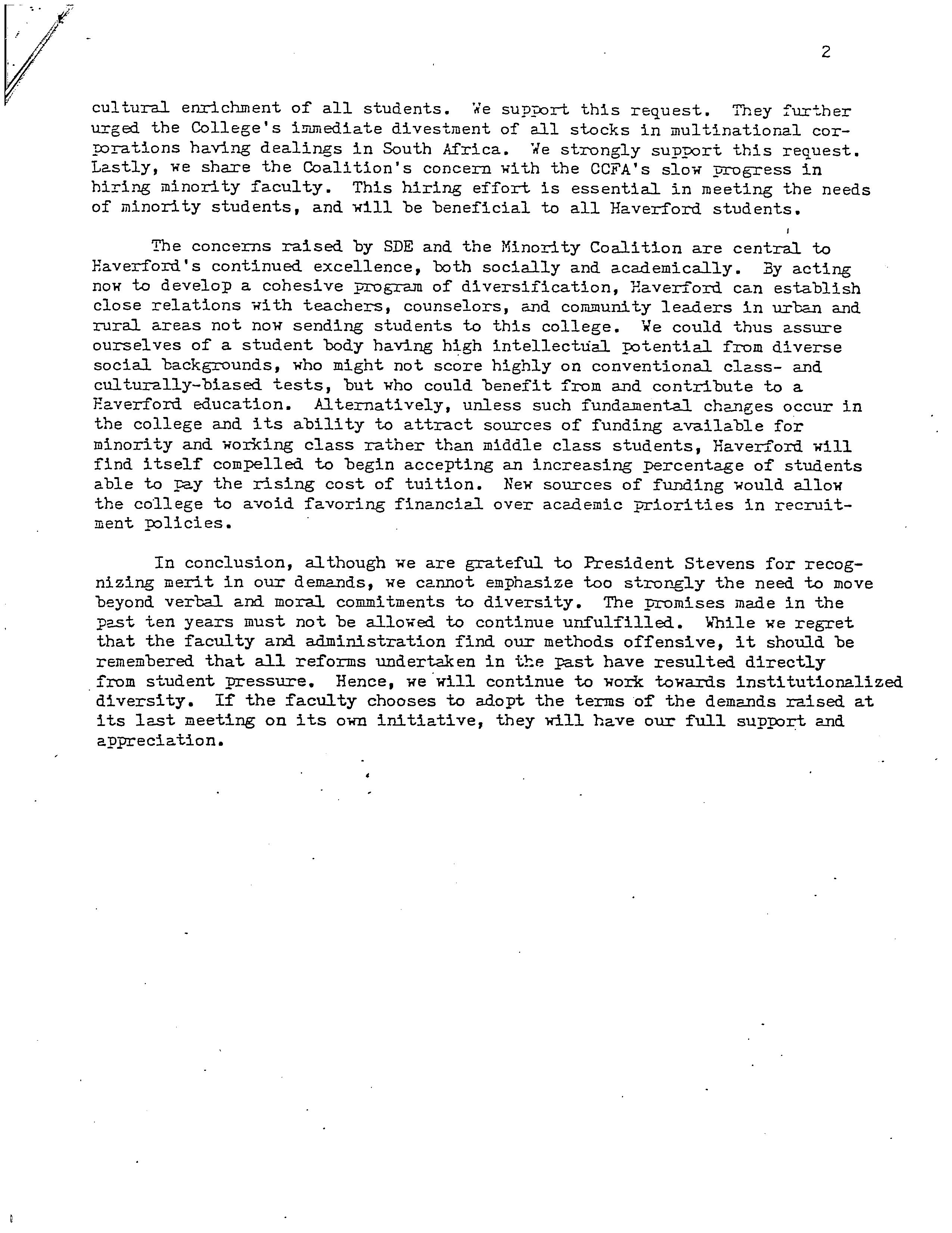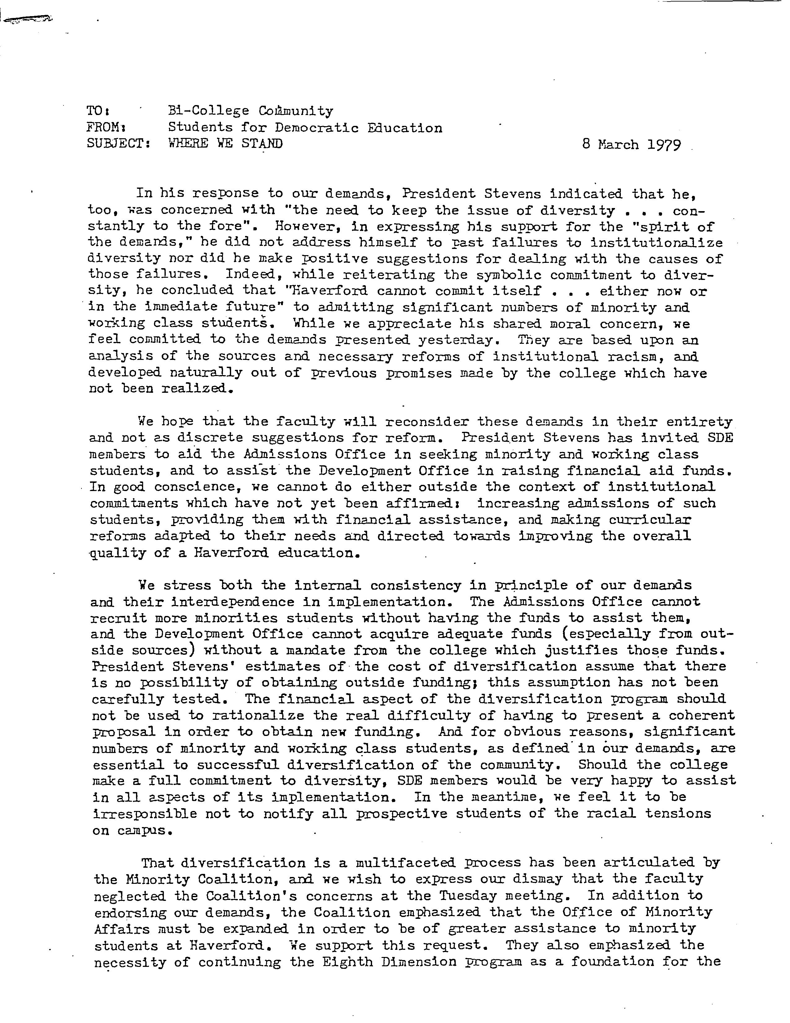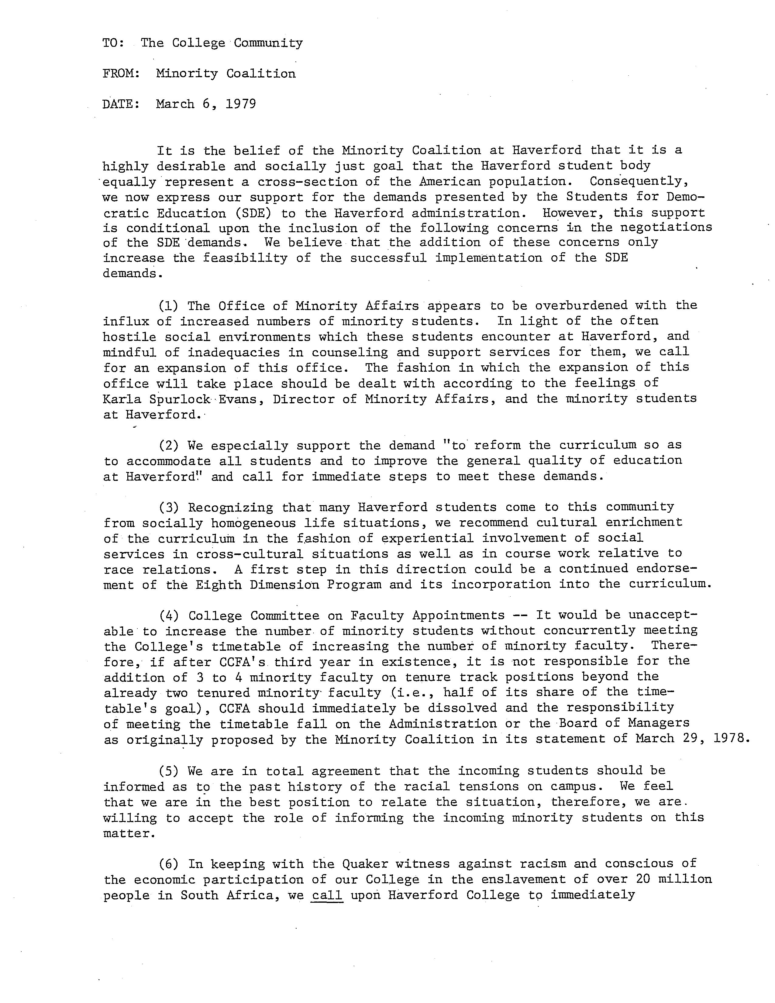 Students for Democratic Education, “Students for Democratic Education,” HIST H252 The History of Haverford College: Conflict, Consensus and the Liberal Arts, accessed December 21, 2025, https://ds-omeka.haverford.edu/annotations/items/show/67.