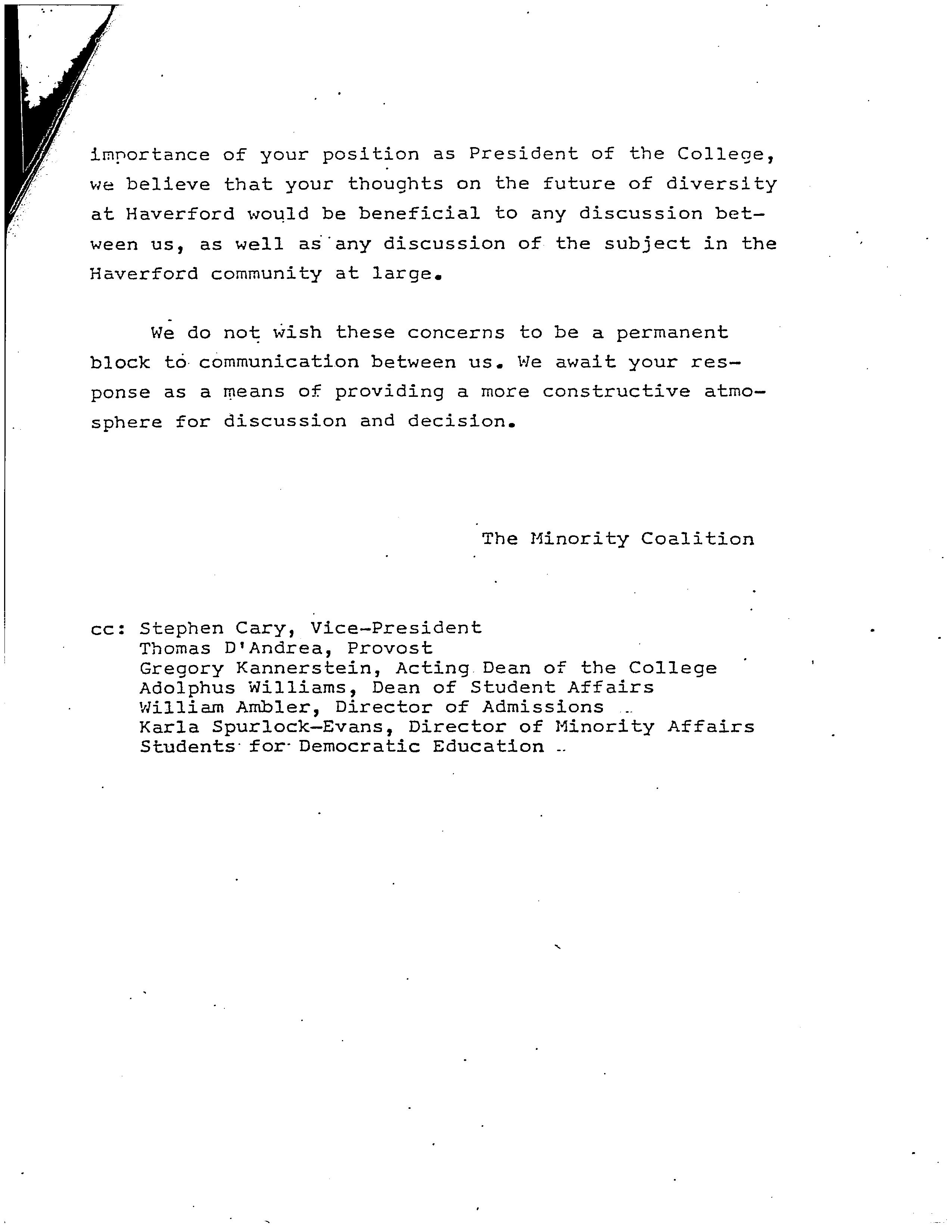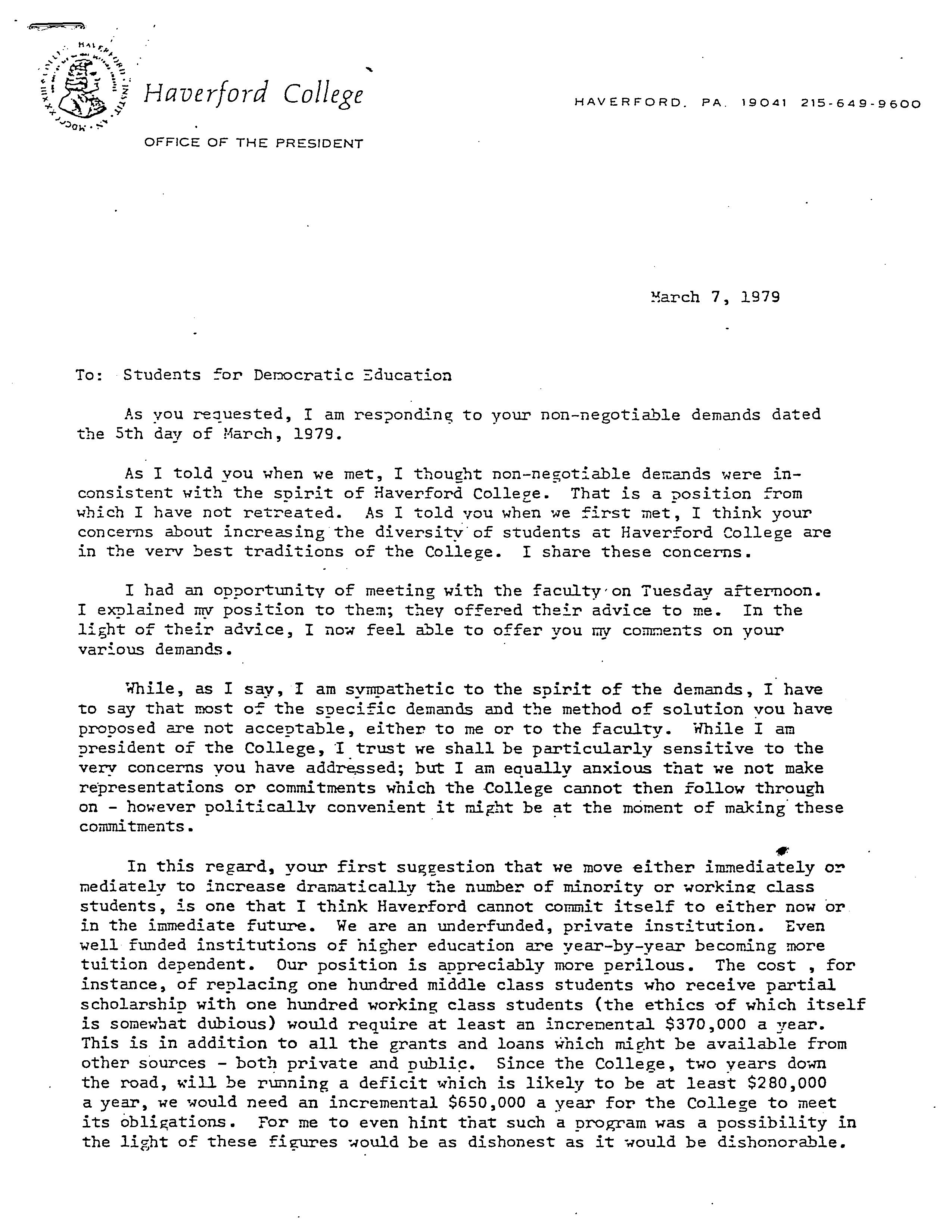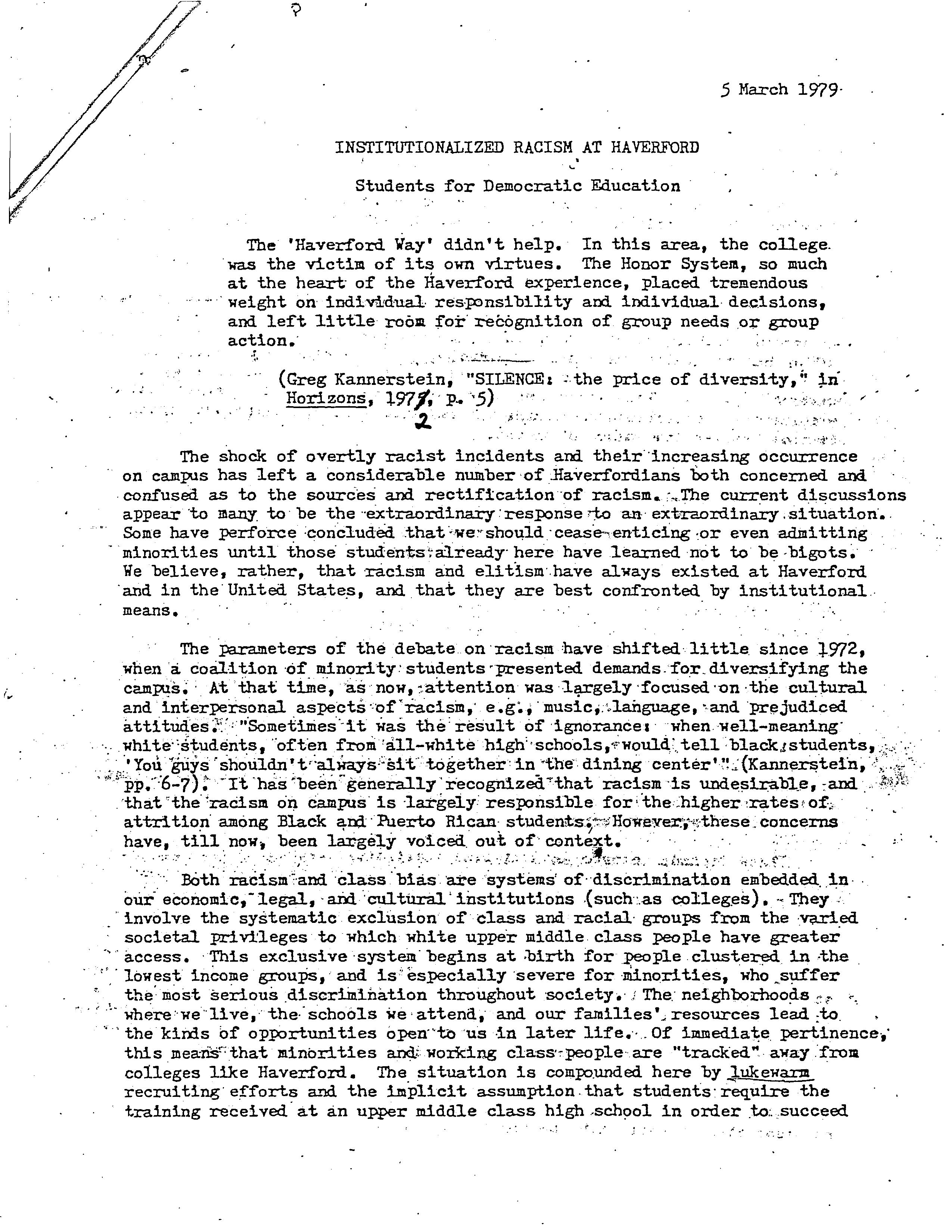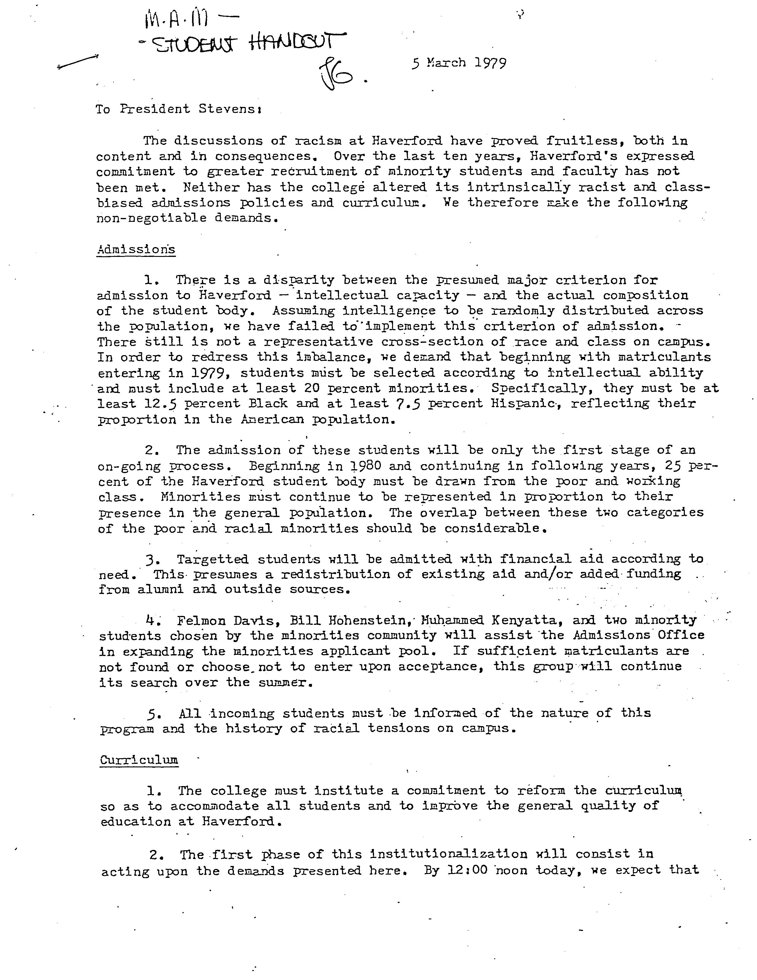 Students for Democratic Education, “Students for Democratic Education,” HIST H252 The History of Haverford College: Conflict, Consensus and the Liberal Arts, accessed December 21, 2025, https://ds-omeka.haverford.edu/annotations/items/show/67.