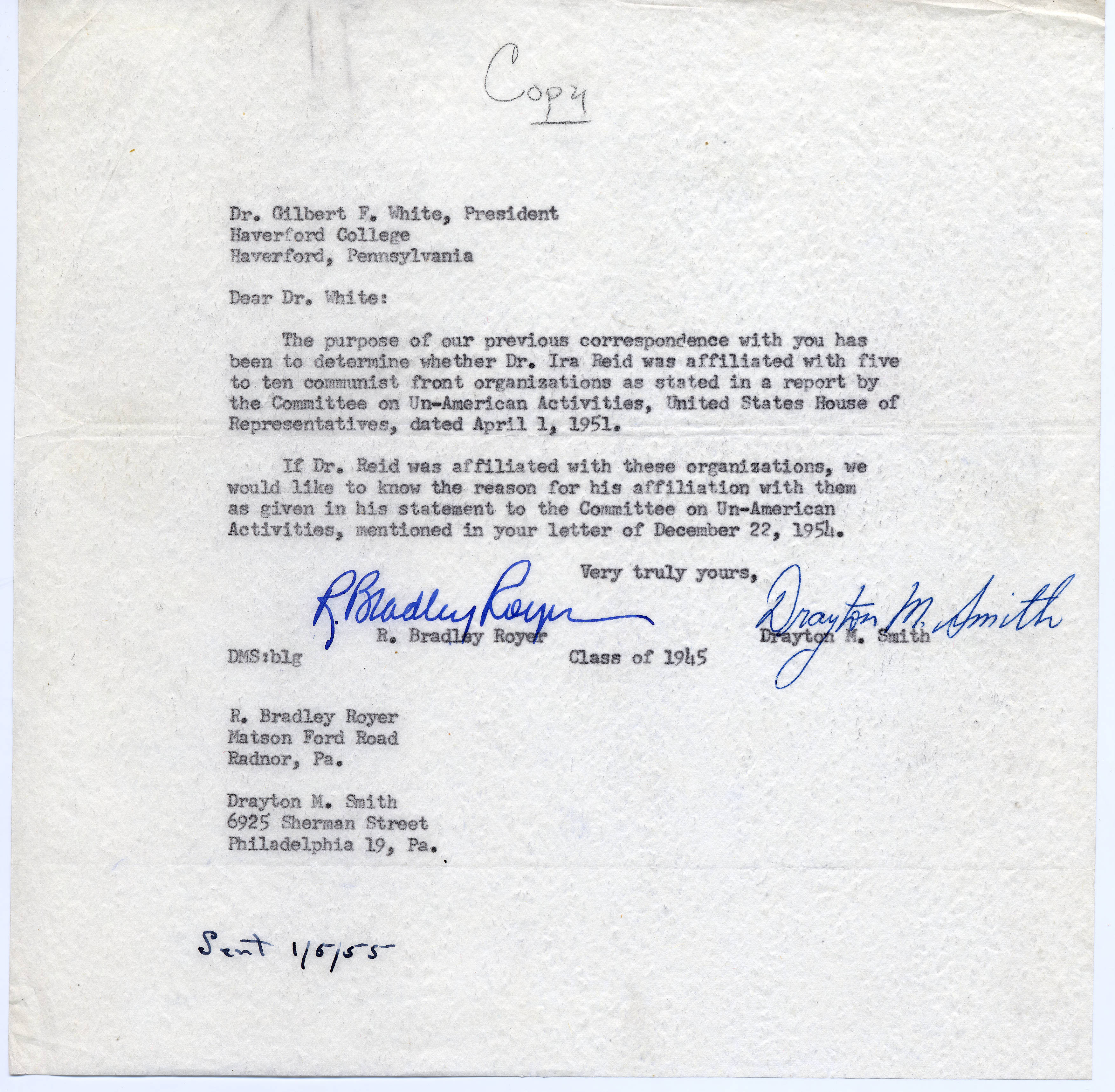 “Copy of Letter to Gilbert White- January 5- 1955,” HIST H252 The History of Haverford College: Conflict, Consensus and the Liberal Arts, accessed December 21, 2025, https://ds-omeka.haverford.edu/annotations/items/show/76.
