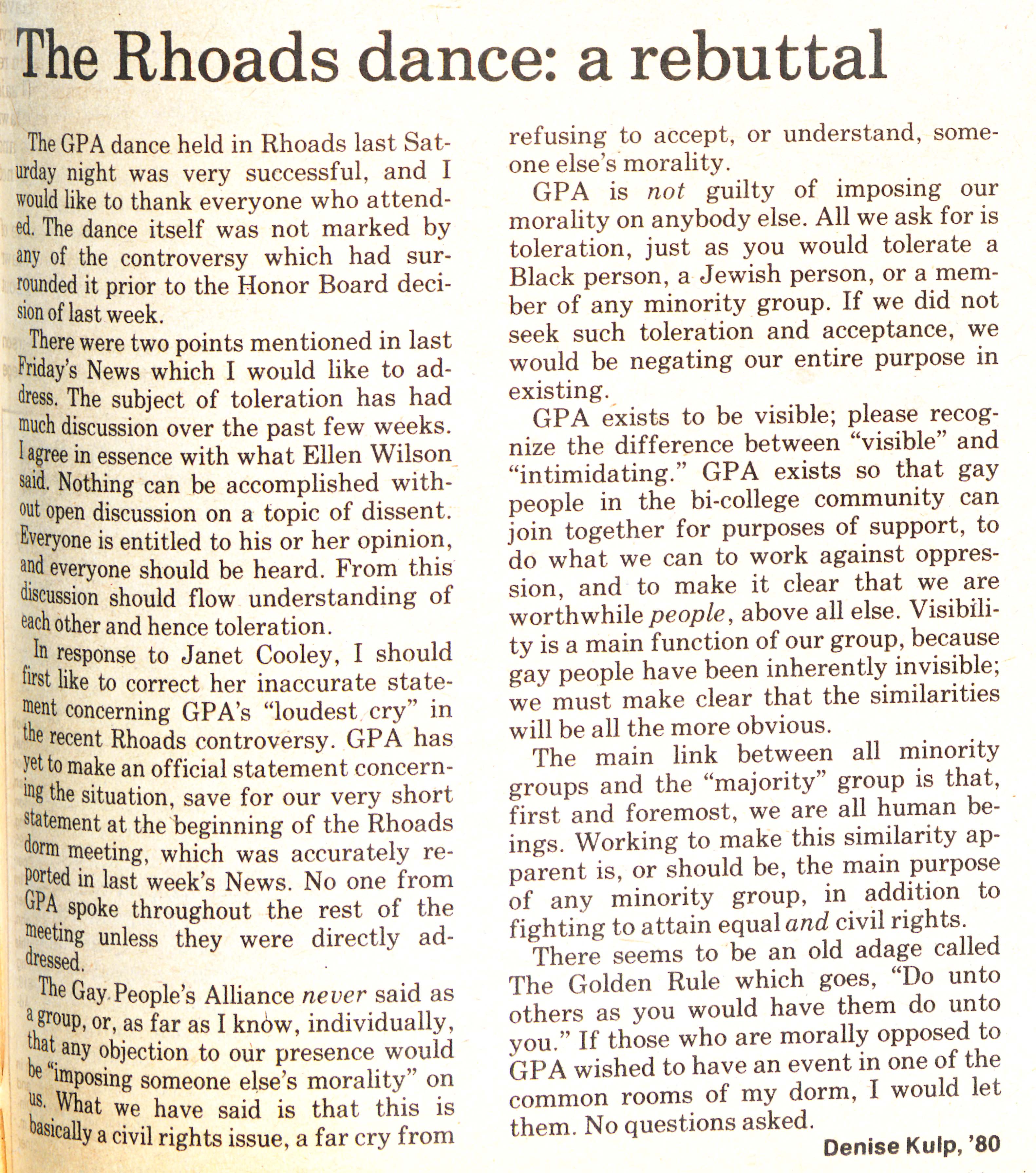 Article defending the GPA in the Rhoades dance debate.