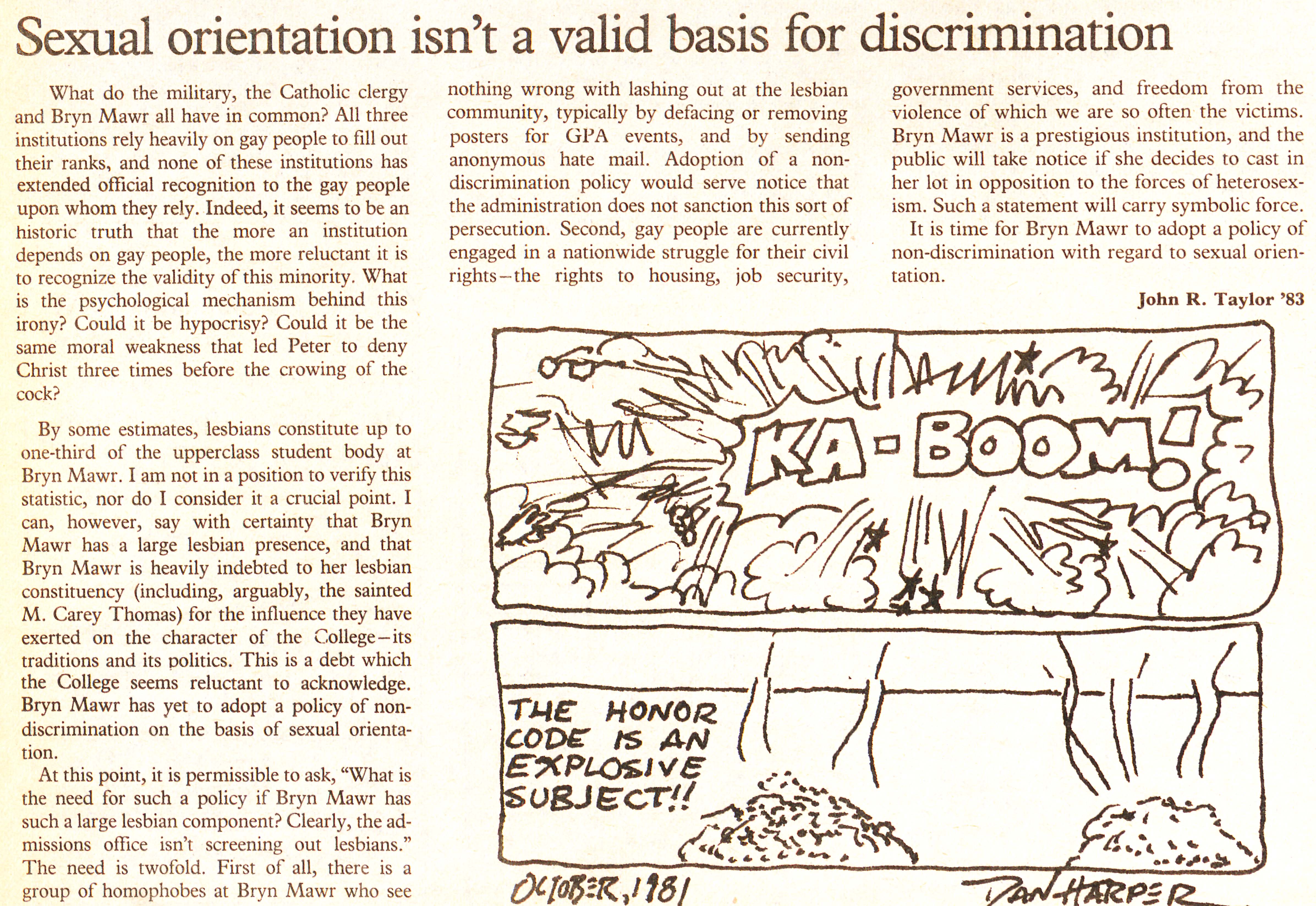 Article suggesting the adoption of a non-discrimination policy for homosexuality at Bryn Mawr.