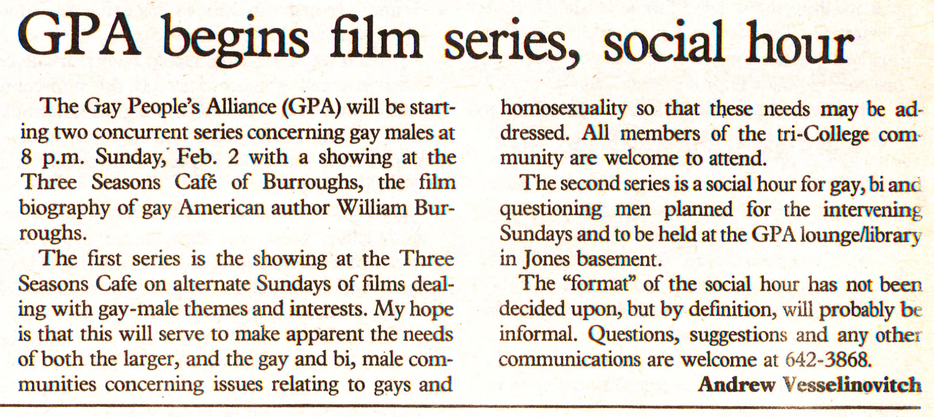 “GPA beings film series,” That Which is Renamed, but Always Remains: An Archival Representation of Queer History at Haverford College, accessed December 14, 2025, https://ds-omeka.haverford.edu/bechen/items/show/1253.