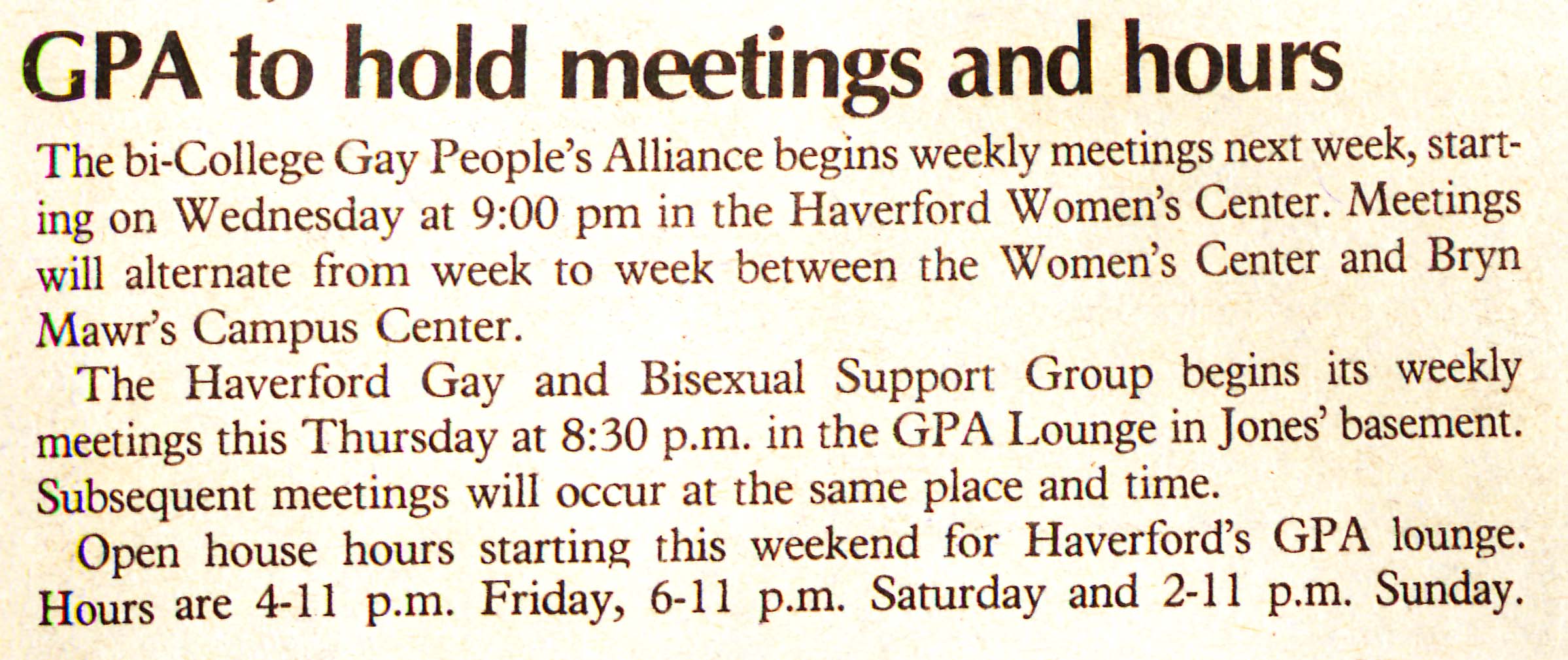 “GPA to hold meetings and hours ,” That Which is Renamed, but Always Remains: An Archival Representation of Queer History at Haverford College, accessed December 14, 2025, https://ds-omeka.haverford.edu/bechen/items/show/1263.