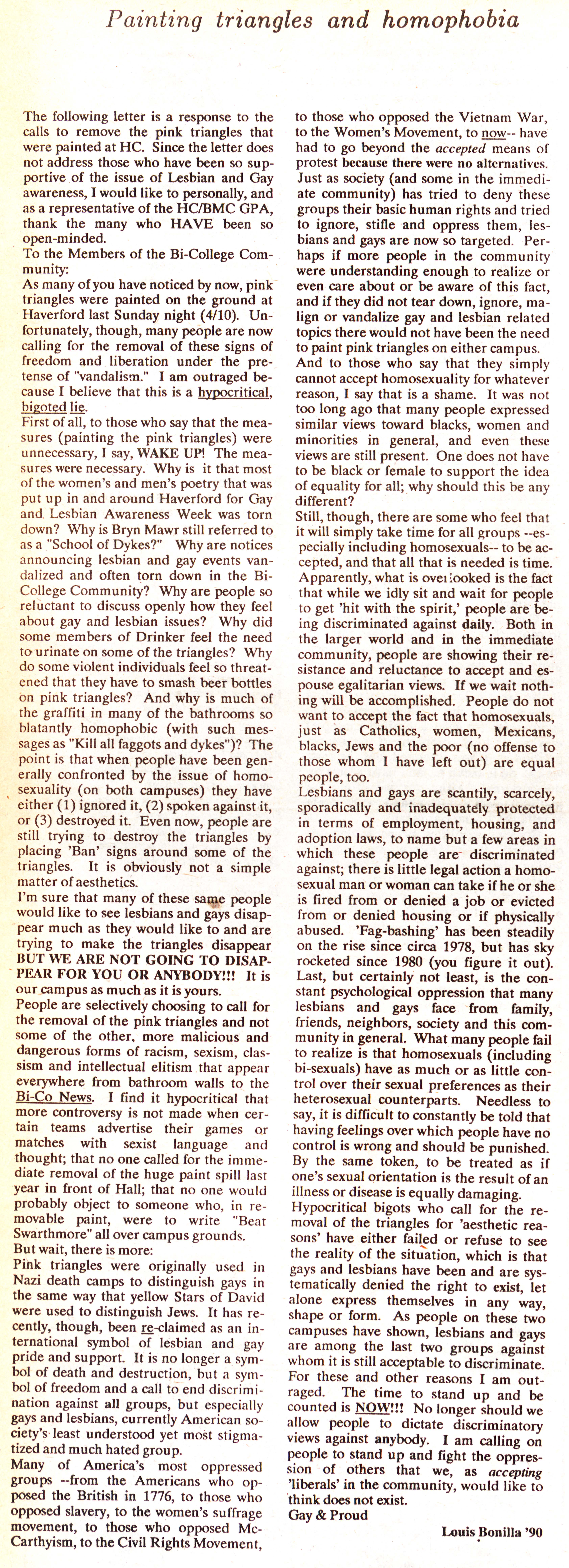 “Painting triangles and homophobia ,” That Which is Renamed, but Always Remains: An Archival Representation of Queer History at Haverford College, accessed December 14, 2025, https://ds-omeka.haverford.edu/bechen/items/show/1276.