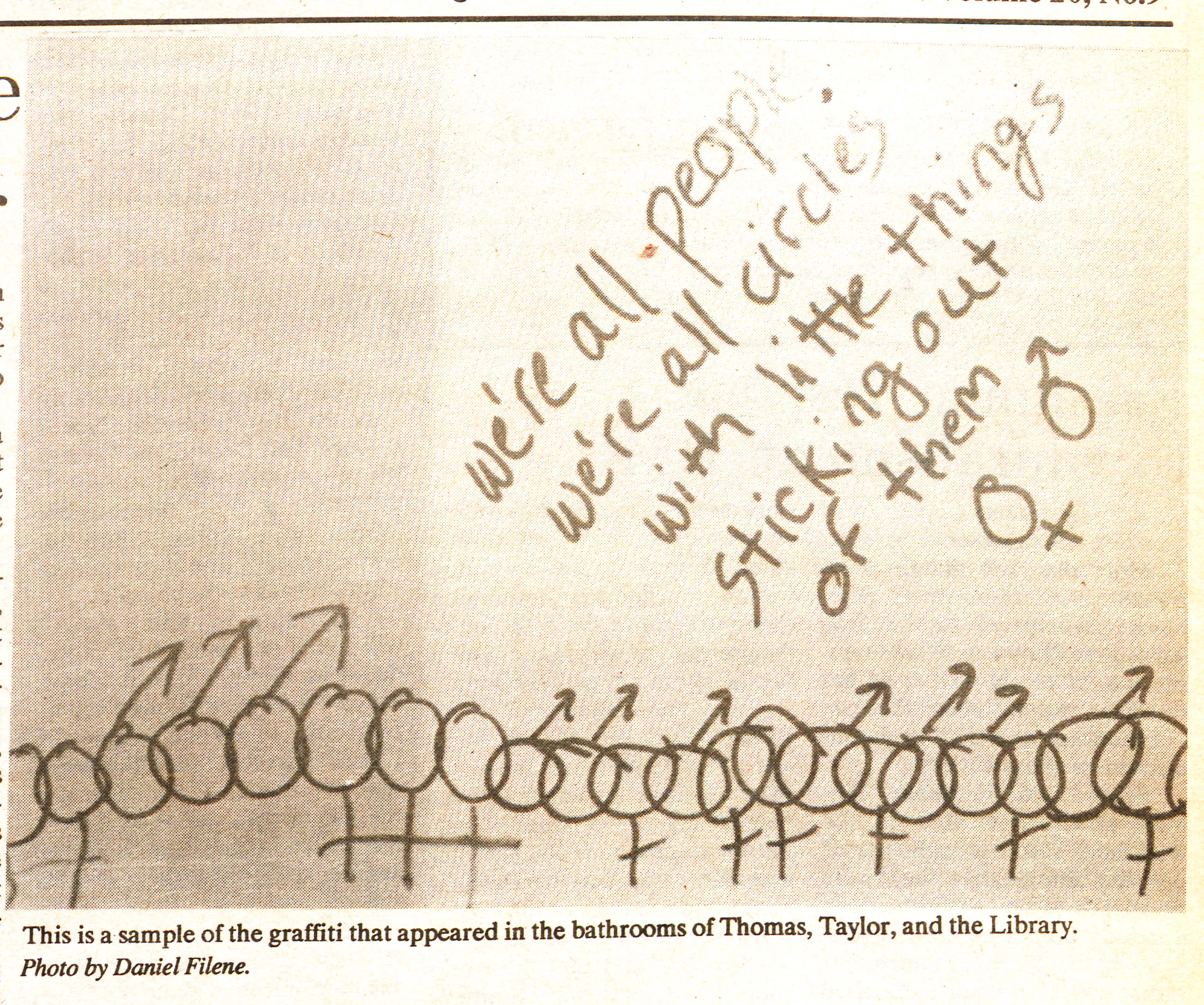 Graffiti that appeared in Bryn Mawr's bathrooms.