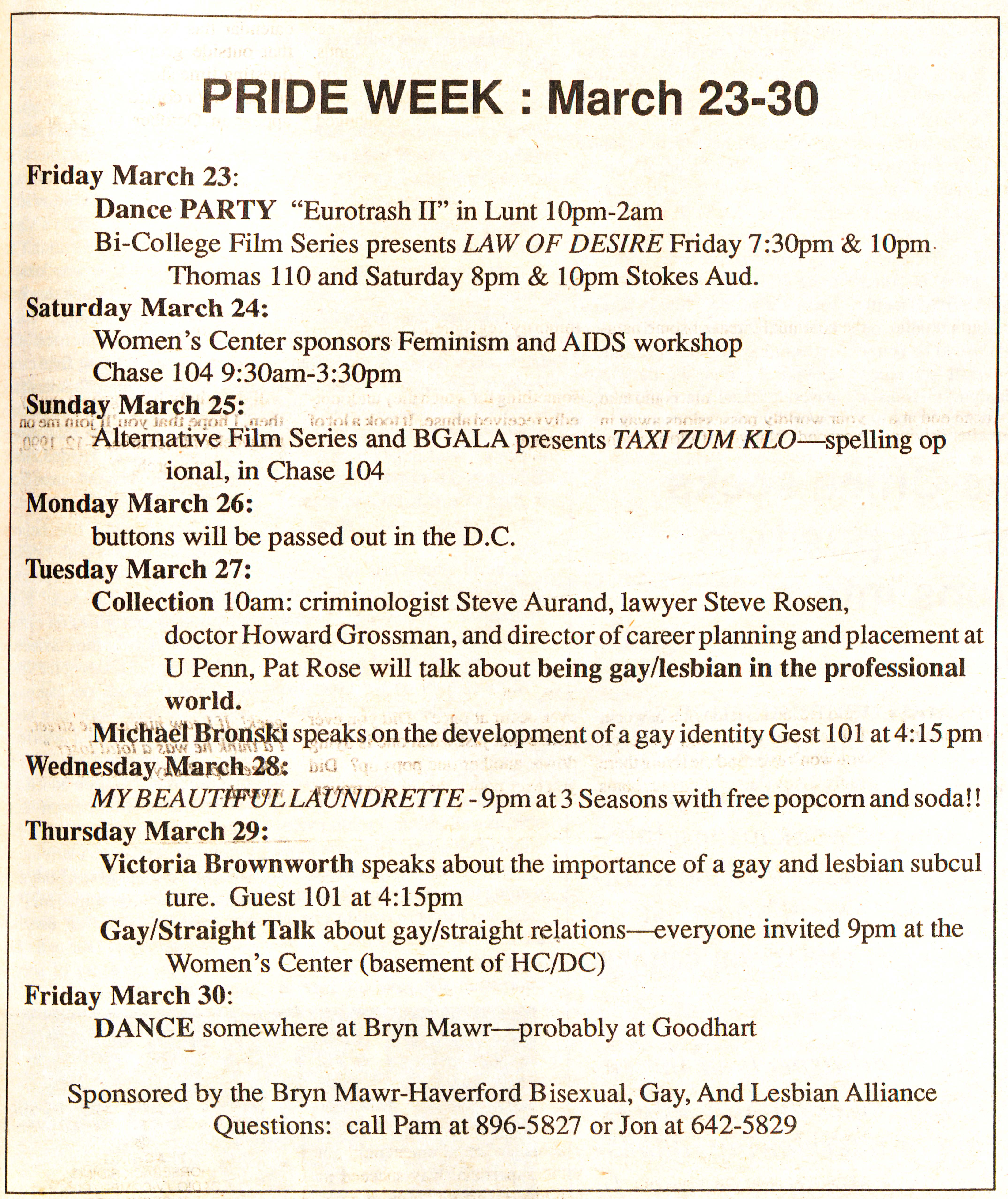 “PRIDE WEEK: March 23-30,” That Which is Renamed, but Always Remains: An Archival Representation of Queer History at Haverford College, accessed December 13, 2025, https://ds-omeka.haverford.edu/bechen/items/show/1291.