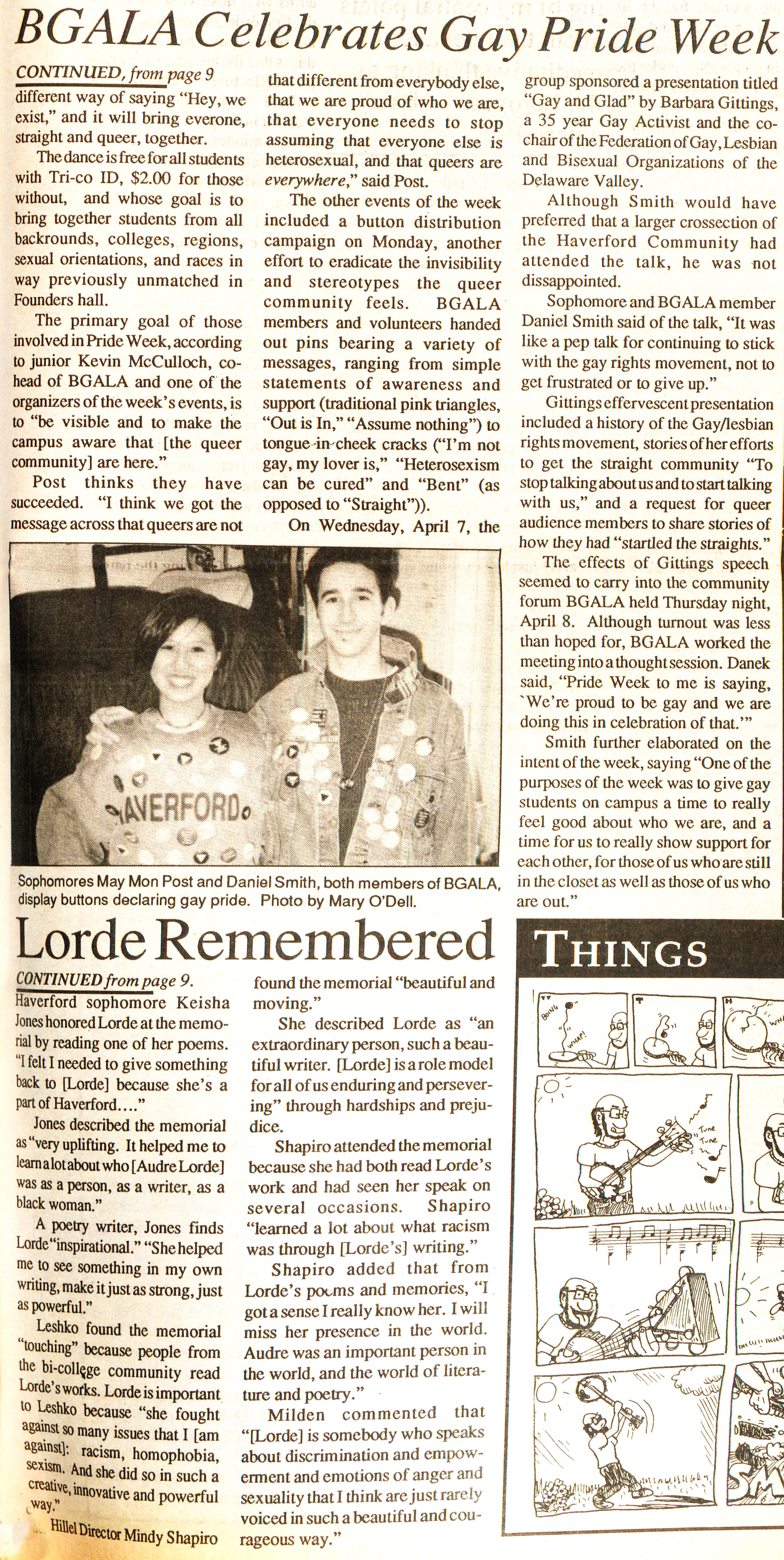 “Audre Lorde Memorial Held; Gay Pride Week Capped Off With Dance Tonight ,” That Which is Renamed, but Always Remains: An Archival Representation of Queer History at Haverford College, accessed December 14, 2025, https://ds-omeka.haverford.edu/bechen/items/show/1313.