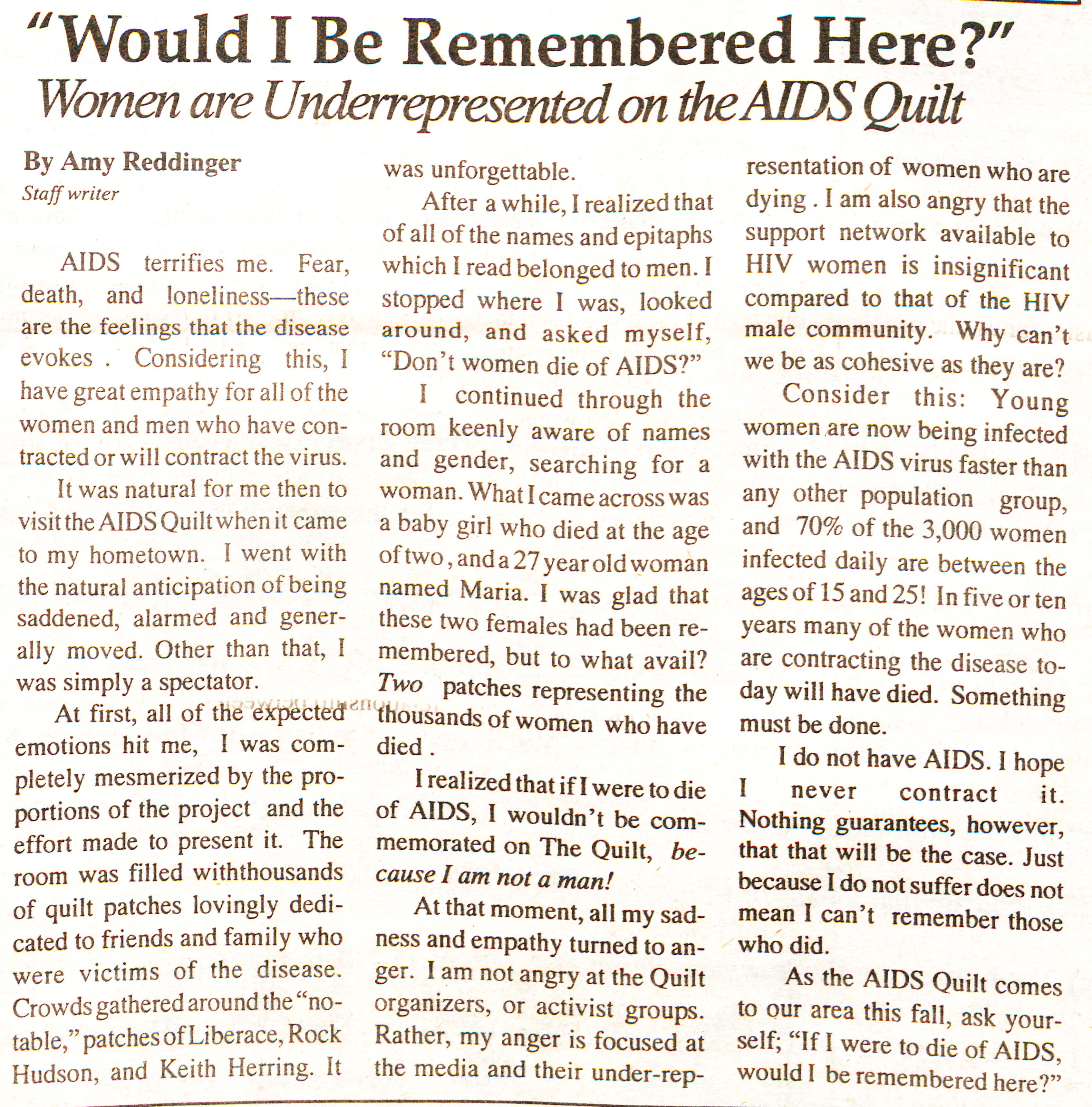 Article about the underrepresentation of women on the AIDS quilt.