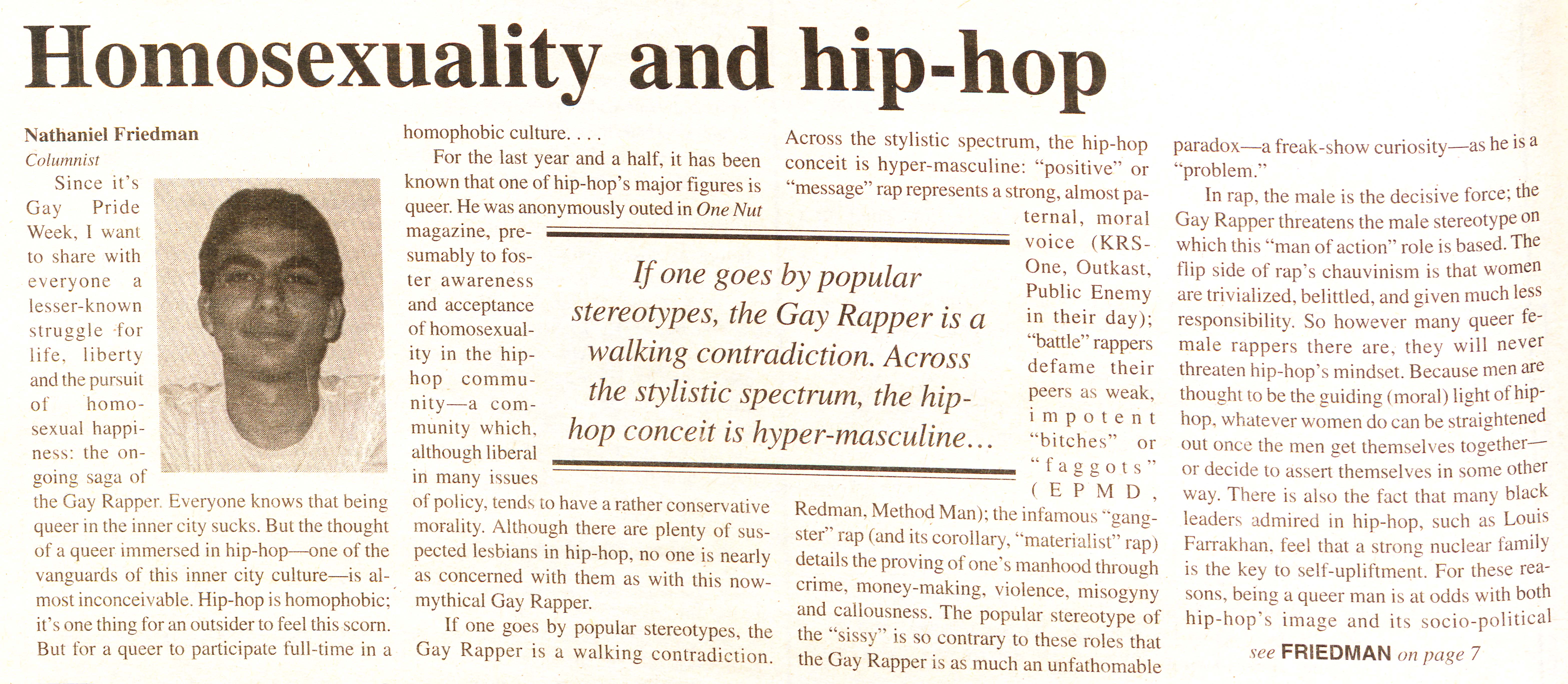 “Homosexuality and hip-hop ,” That Which is Renamed, but Always Remains: An Archival Representation of Queer History at Haverford College, accessed December 14, 2025, https://ds-omeka.haverford.edu/bechen/items/show/1356.