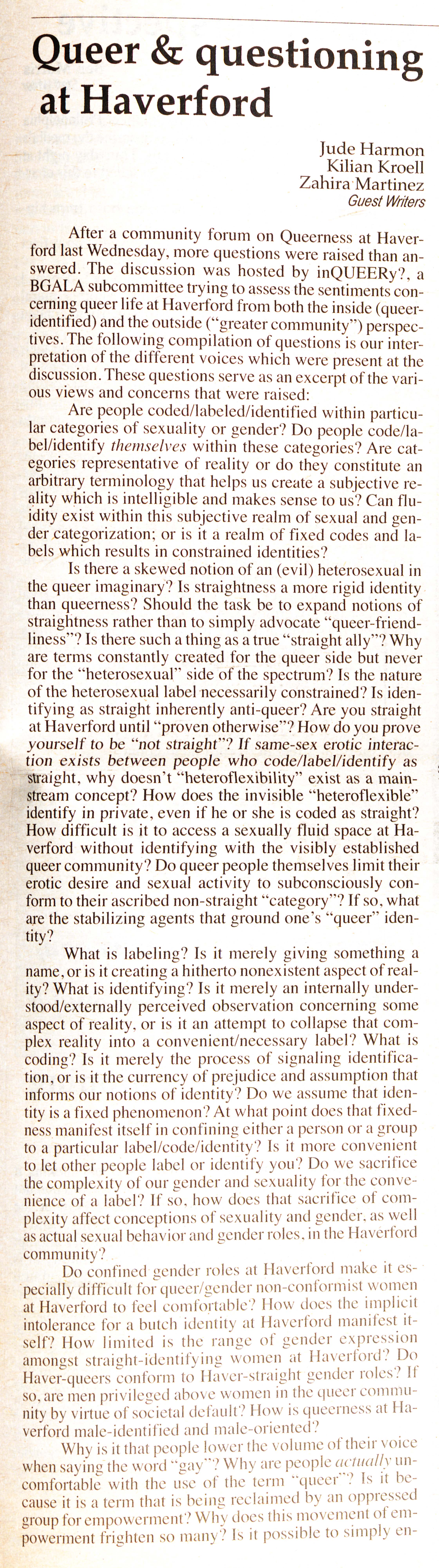 “Queer & questioning at Haverford,” That Which is Renamed, but Always Remains: An Archival Representation of Queer History at Haverford College, accessed December 14, 2025, https://ds-omeka.haverford.edu/bechen/items/show/1396.
