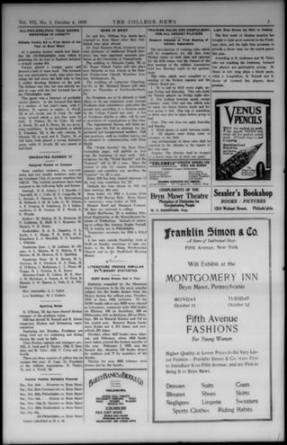 Students of Bryn Mawr College, “College news, October 6, 1920,” LACOL Introduction to Digital Humanities, accessed December 23, 2025, https://ds-omeka.haverford.edu/lacol-dh/items/show/57.