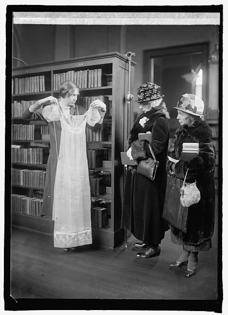 This photograph shows a woman displaying a family heirloom (presumably her own) at a public library to two viewers. She holds the dress up to herself, ‘wearing’ it, a sign of her personal connection to it. It is both a historical object, and one that is of her family, her identity, and her memory. She is transported into the past memory—truth or idealized memory does not matter—by this act. However, the women viewing her do not view the woman-dress, past-present combination as a whole—they look down at the dress, away from her. It is not theirs, and so they view it as materiality solely, as a historical object. They do not glean value from her ‘wearing’ it. It might as well be on a table. This image demonstrates the subjectivity of the memento and how different viewers constitute the object differently.