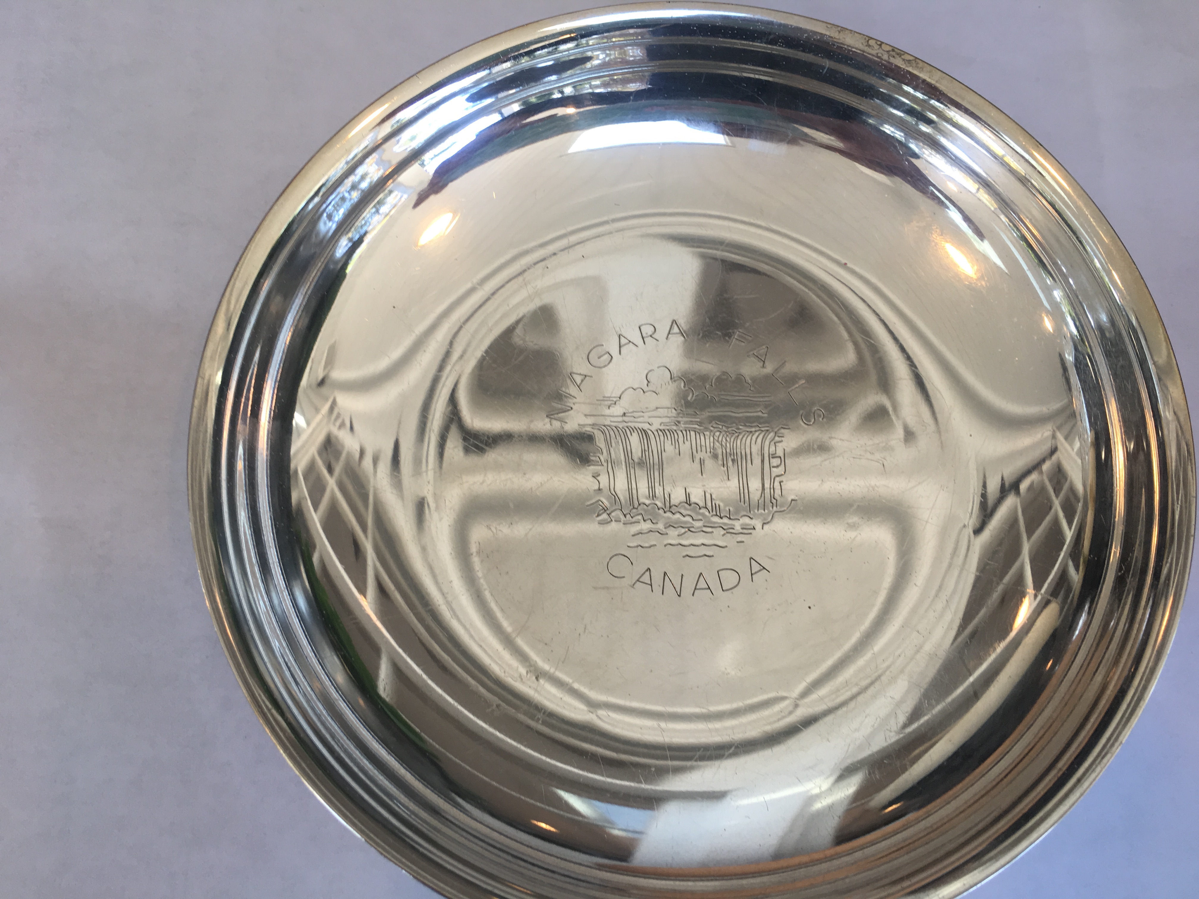 A shallow silver dish purchased by Jim and Marie Palsir during their 1963 honeymoon to Niaraga Falls.