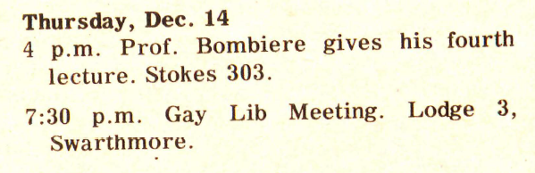 “Gay Liberation Meeting at Swarthmore ,” That Which is Renamed, but Always Remains: An Archival Representation of Queer History at Haverford College, accessed December 13, 2025, https://ds-omeka.haverford.edu/remainhaverford/items/show/1178.
