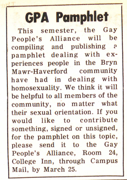 “GPA Pamphlet ,” That Which is Renamed, but Always Remains: An Archival Representation of Queer History at Haverford College, accessed December 13, 2025, https://ds-omeka.haverford.edu/remainhaverford/items/show/1189.