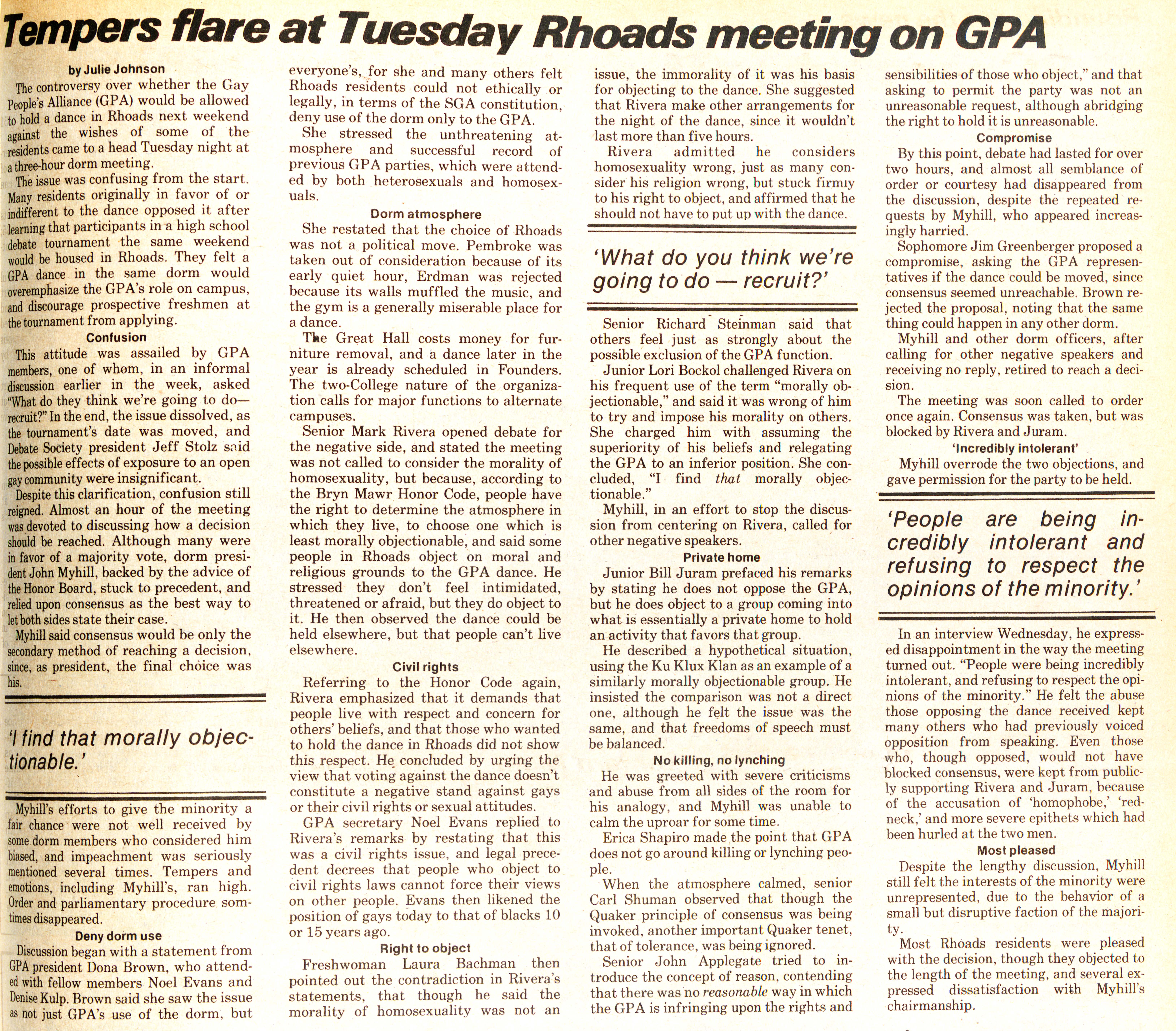 “Tempers flare at Tuesday Rhoades meeting on GPA,” That Which is Renamed, but Always Remains: An Archival Representation of Queer History at Haverford College, accessed December 13, 2025, https://ds-omeka.haverford.edu/remainhaverford/items/show/1199.