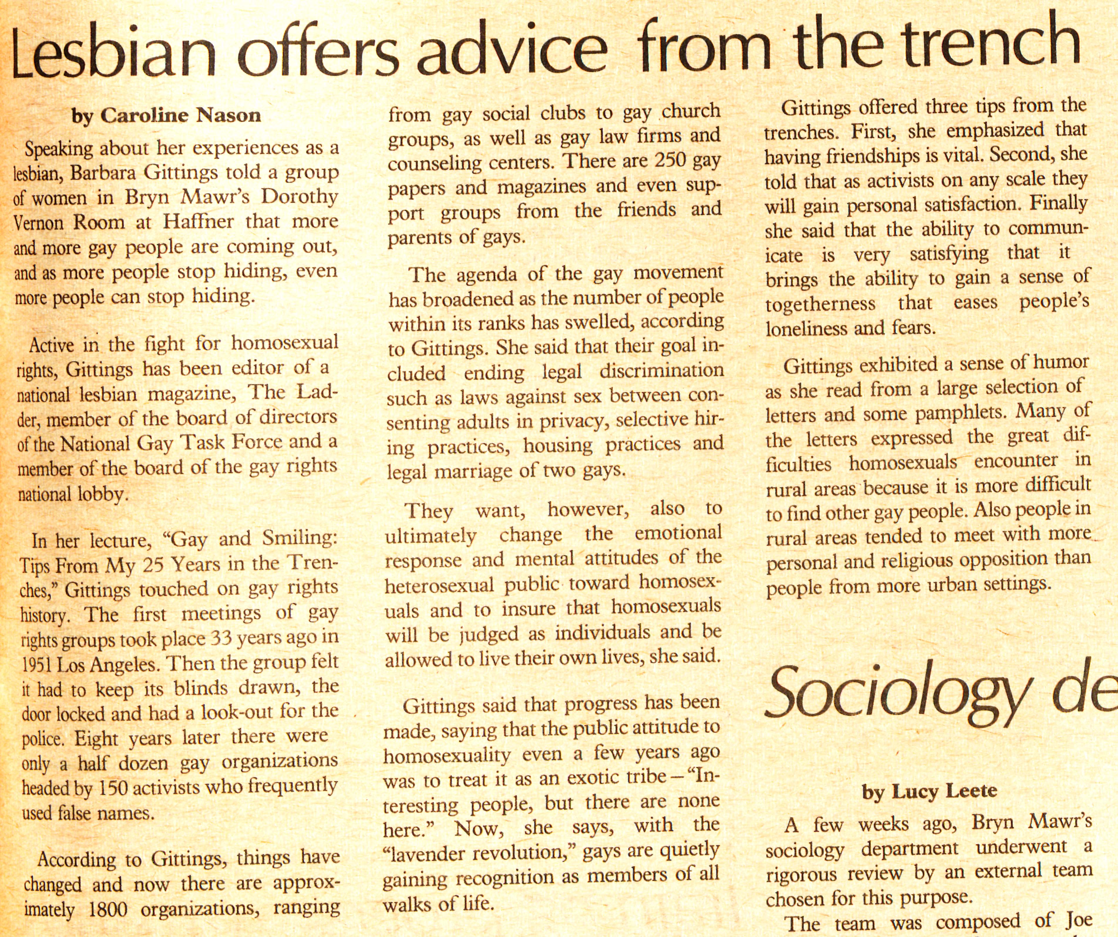 “Lesbian offers advice from the trench ,” That Which is Renamed, but Always Remains: An Archival Representation of Queer History at Haverford College, accessed December 13, 2025, https://ds-omeka.haverford.edu/remainhaverford/items/show/1238.