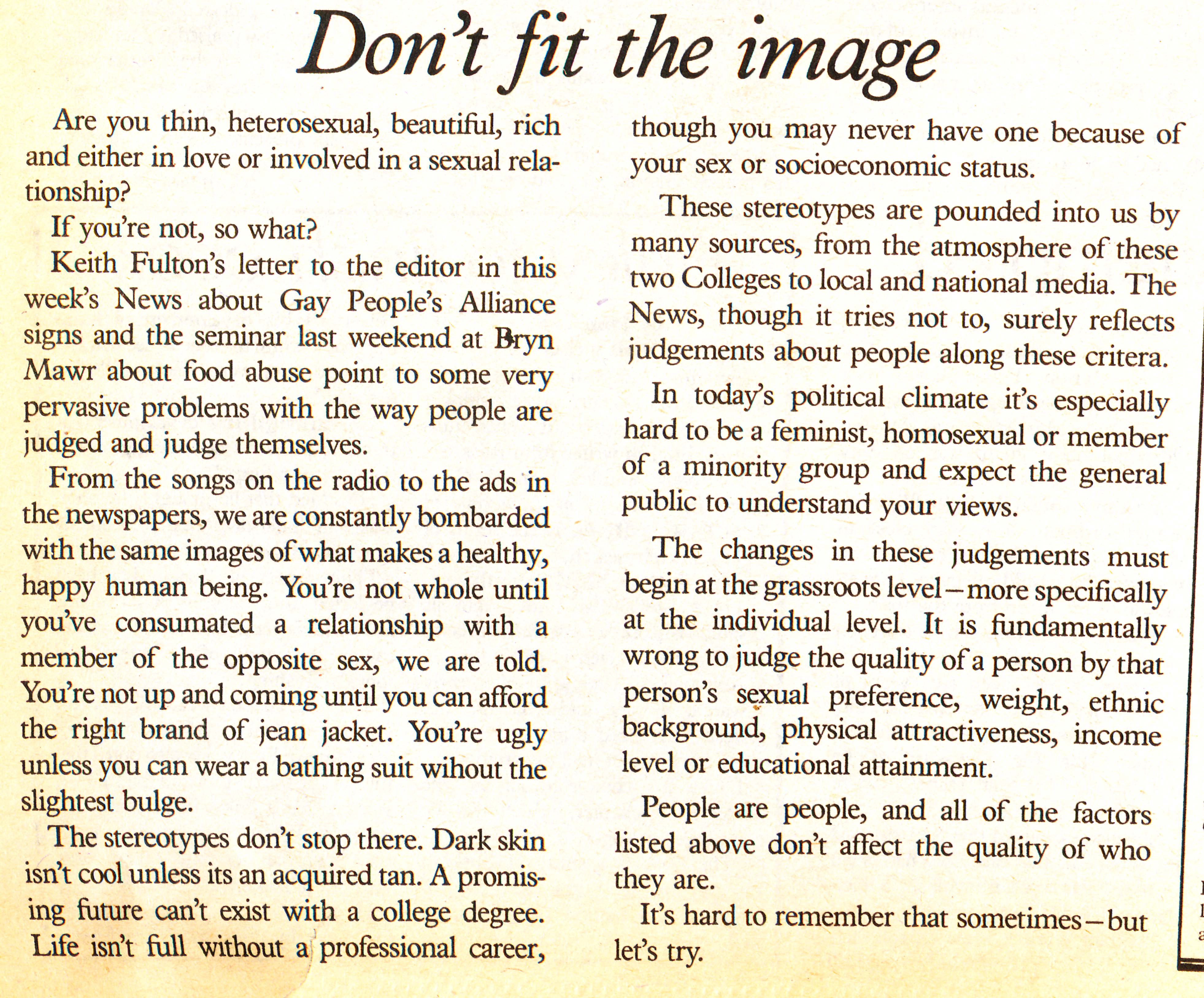 “Don't fit the image,” That Which is Renamed, but Always Remains: An Archival Representation of Queer History at Haverford College, accessed December 14, 2025, https://ds-omeka.haverford.edu/remainhaverford/items/show/1242.