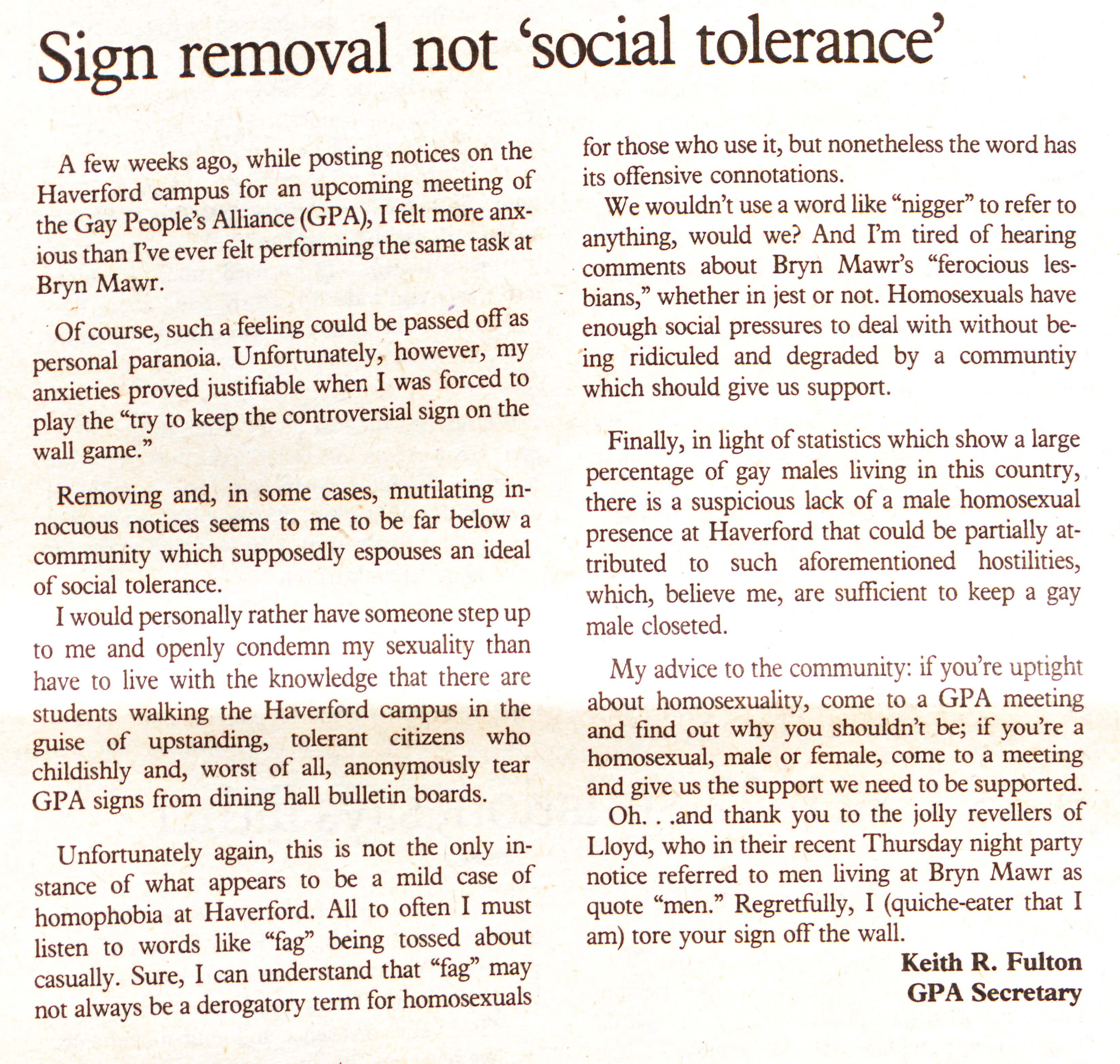 “Sign removal not 'social tolerance',” That Which is Renamed, but Always Remains: An Archival Representation of Queer History at Haverford College, accessed December 14, 2025, https://ds-omeka.haverford.edu/remainhaverford/items/show/1243.