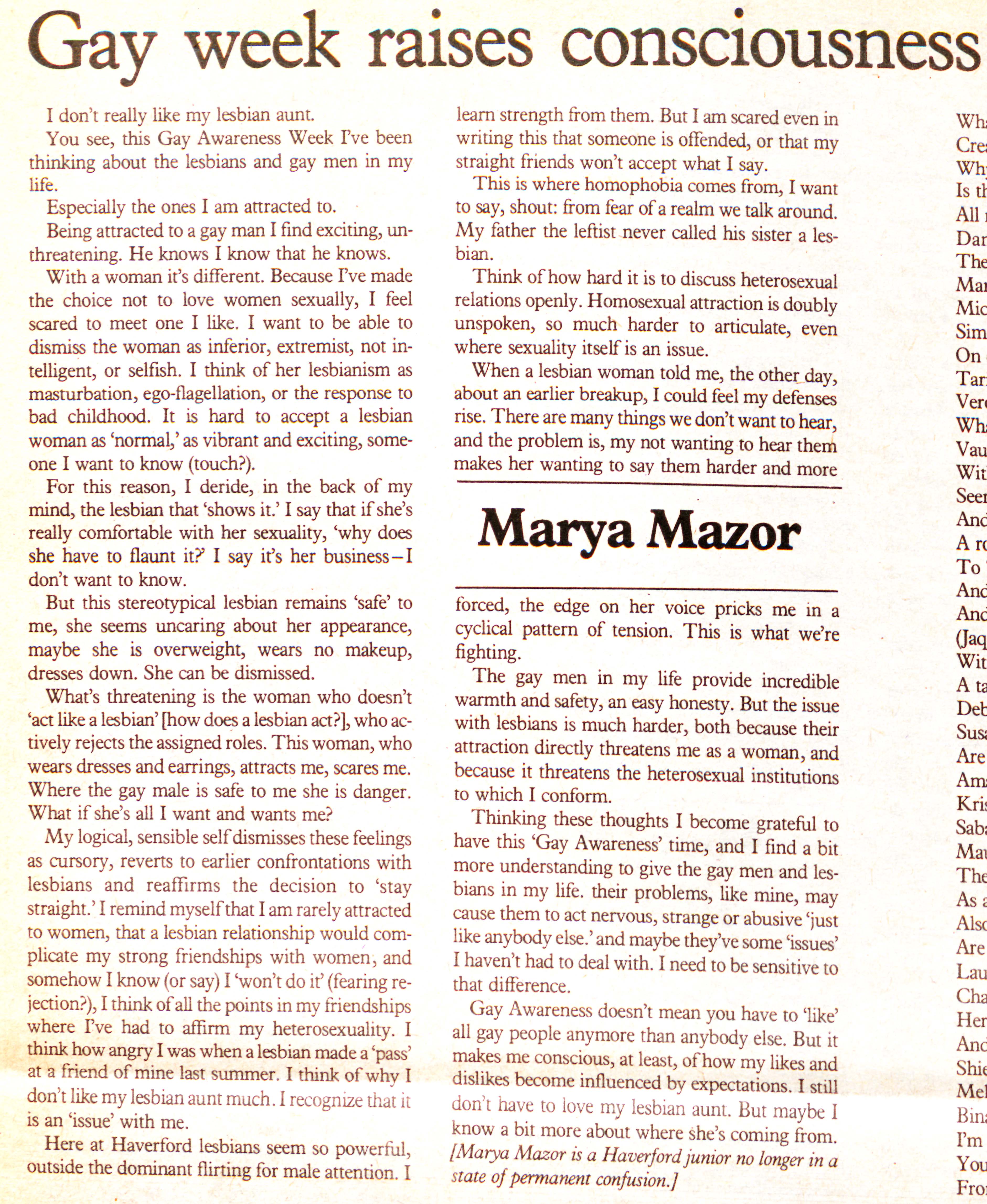 “Gay week raises consciousness ,” That Which is Renamed, but Always Remains: An Archival Representation of Queer History at Haverford College, accessed December 13, 2025, https://ds-omeka.haverford.edu/remainhaverford/items/show/1256.