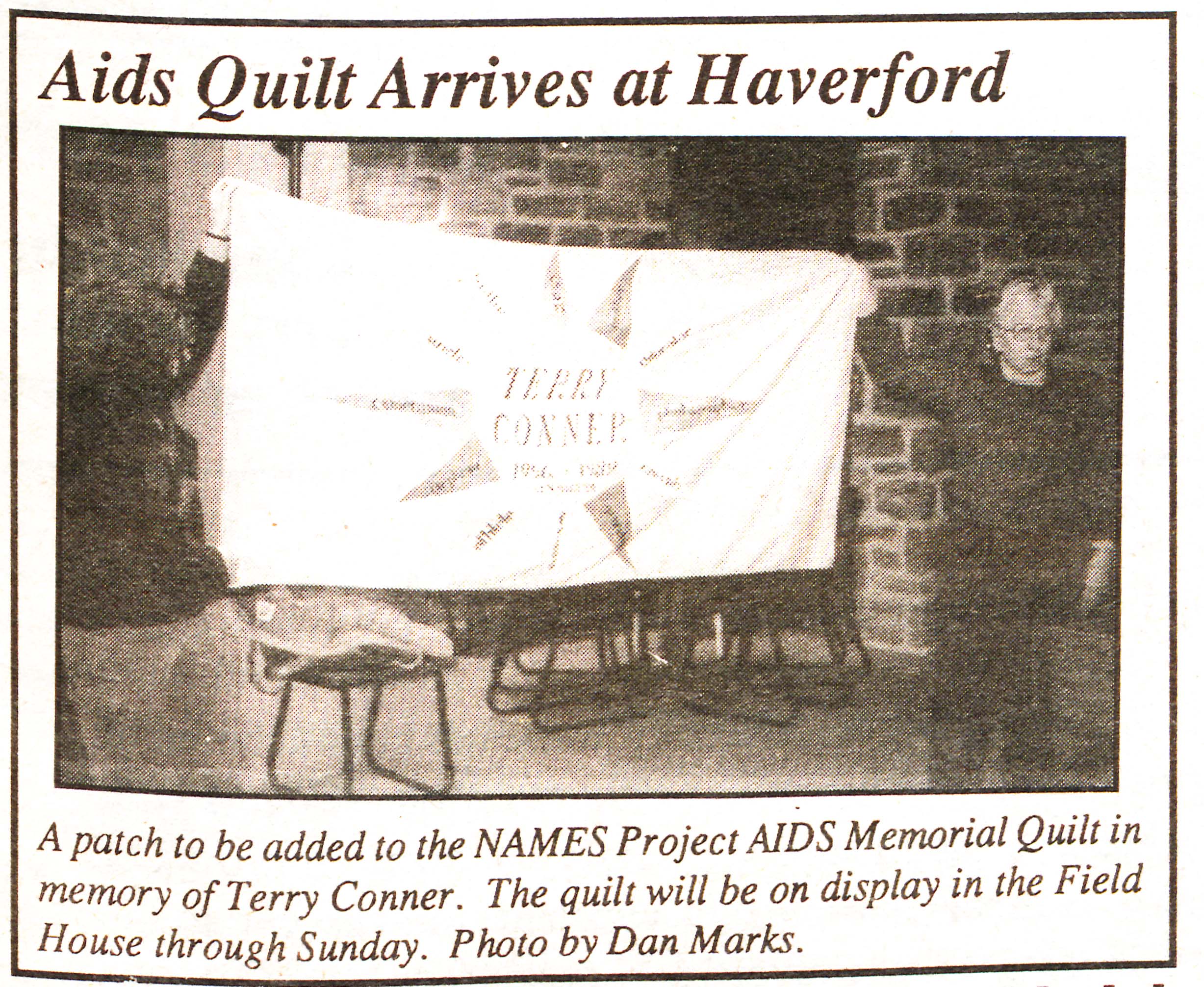 “AIDS Quilt Arrives at Haverford ,” That Which is Renamed, but Always Remains: An Archival Representation of Queer History at Haverford College, accessed December 13, 2025, https://ds-omeka.haverford.edu/remainhaverford/items/show/1306.